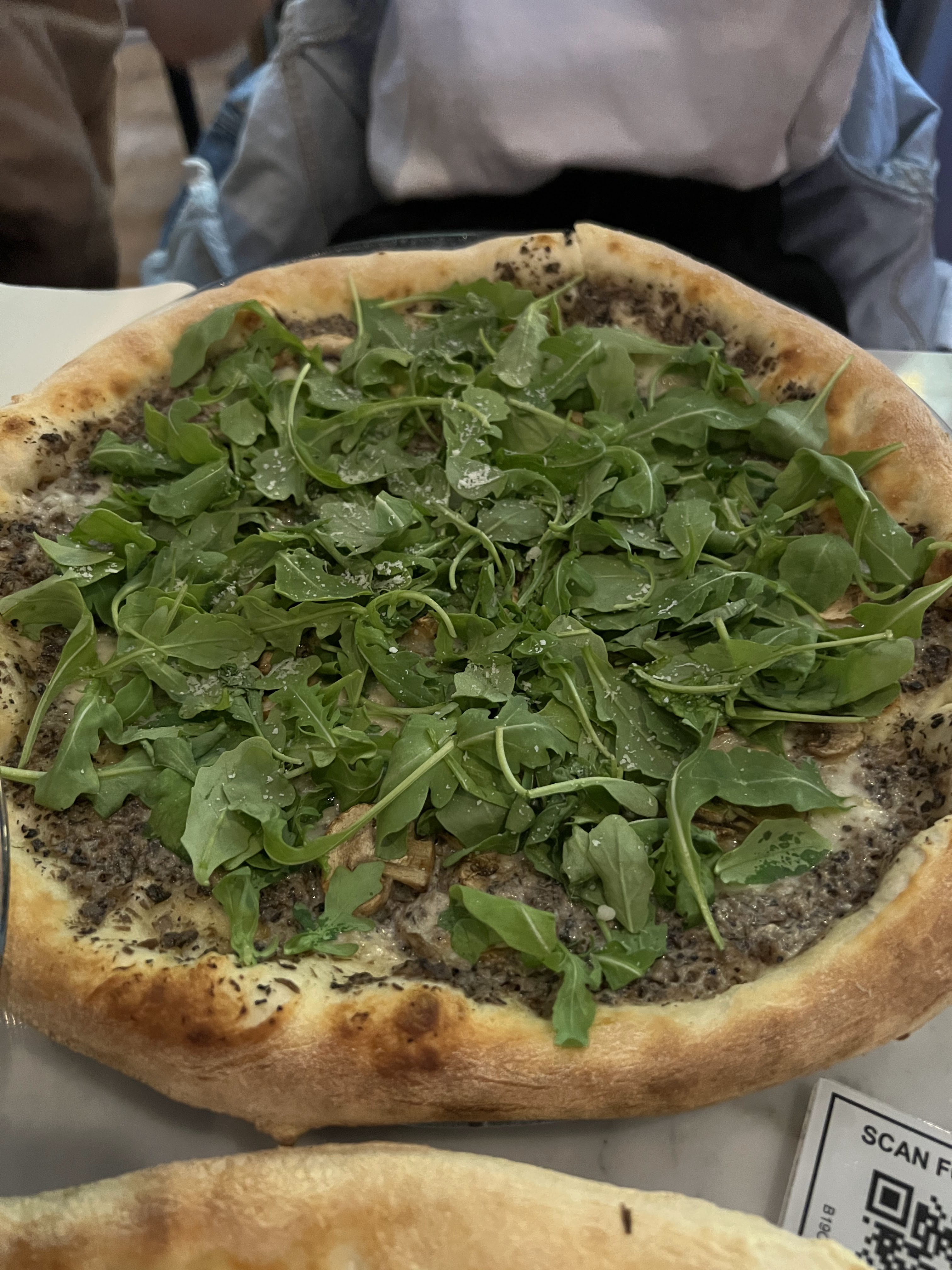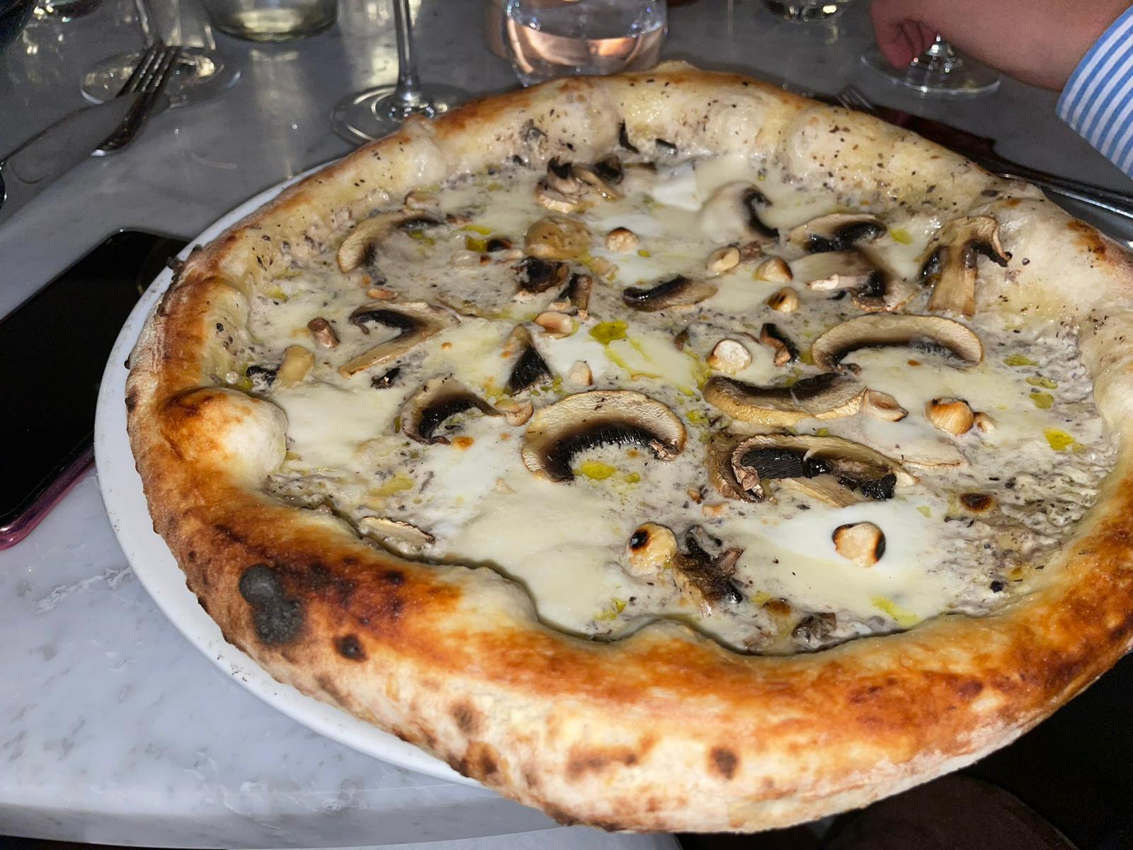Une explosion de saveurs ! Les pâtes à la truffe flambées dans la meule de parmesan sont un délice, et la pizza burrata était exquise aussi !