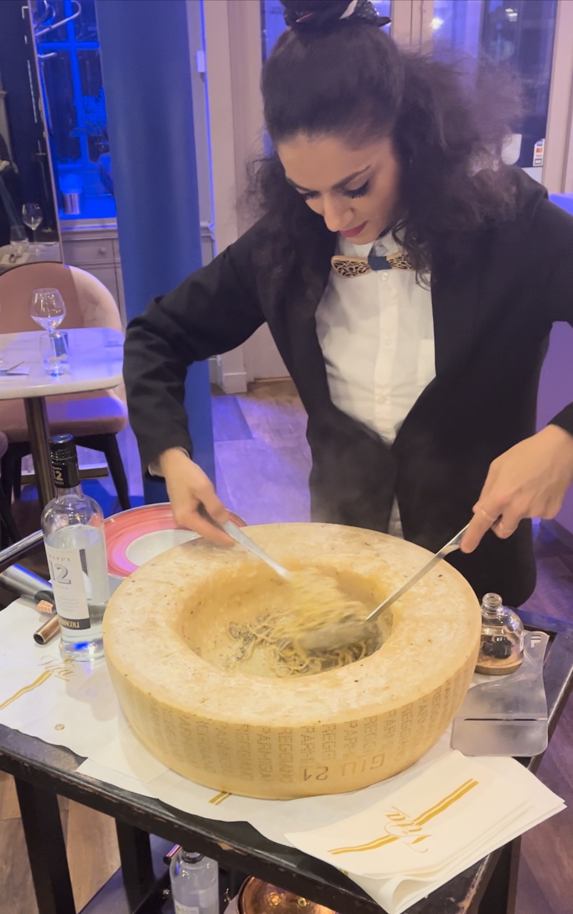 Très bonne expérience de ce lieu ! La décoration intérieure est très belle sans parler des plats à tomber par terre. Les pâtes servies dans la meule étaient excellentes et mention spéciale pour le cheesecake aux pistaches et pour les cocktails. Le prix est plus élevé que d’autres restaurants mais ça vaut clairement le coup au vu de la qualité du repas et du service.