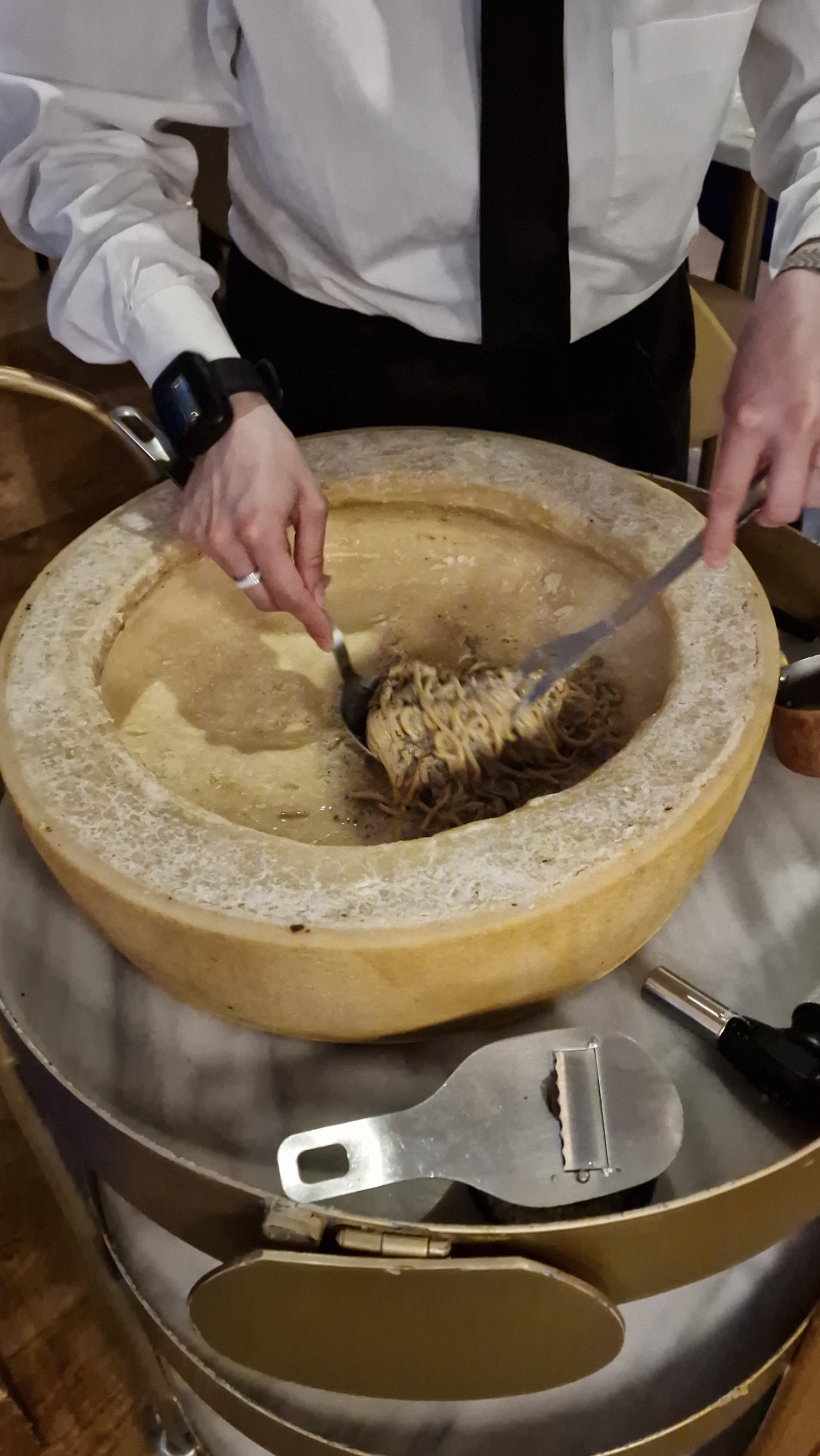 Le personnel est très professionnel, les assiettes bien garnies et délicieuses. Les pâtes au truffes préparées dans la meule de parmesan flambée à la grapa sont un incontournable !