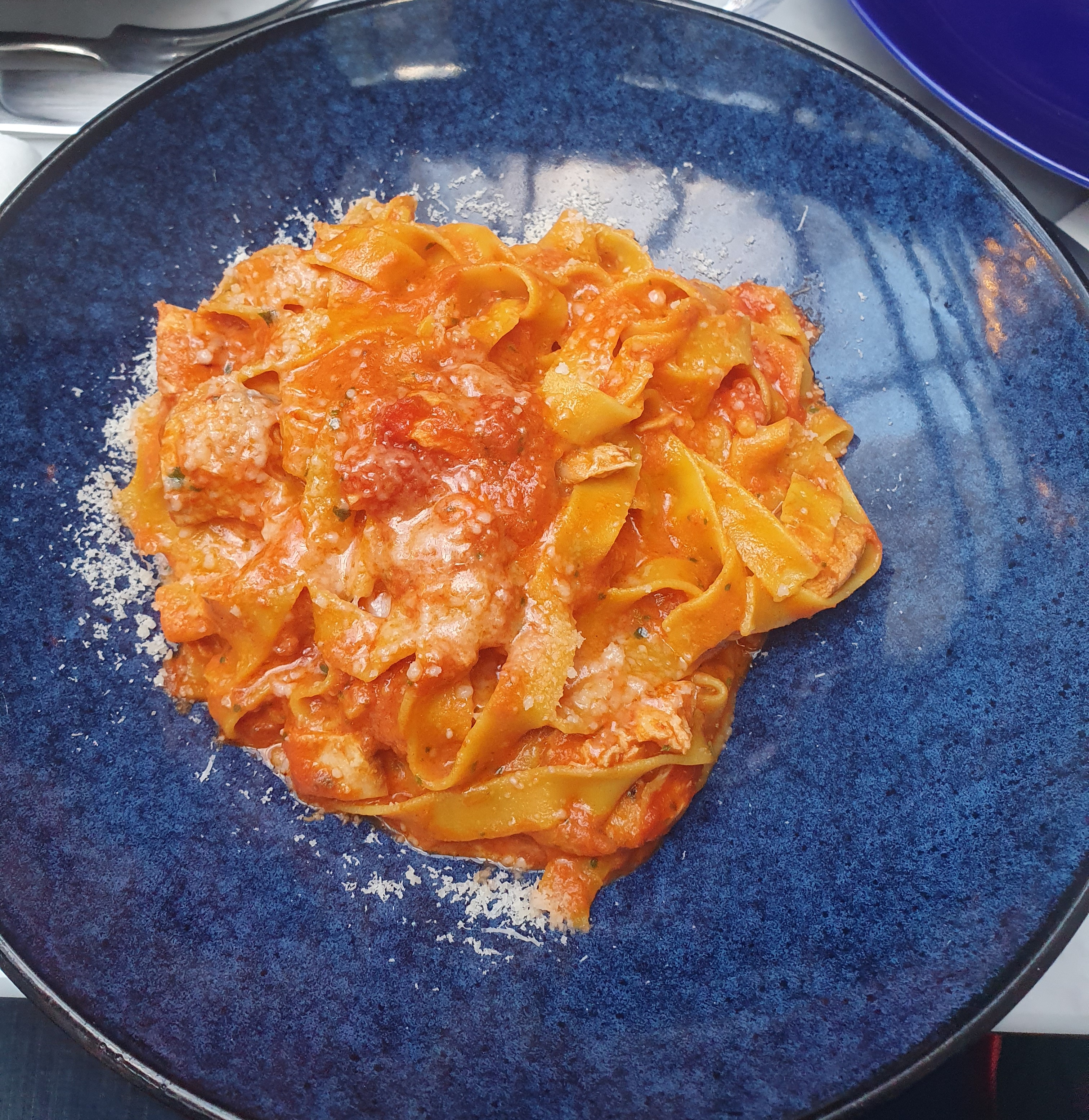 J'ai beaucoup aimé ce restaurant à la décoration classe et très bleue. Les plats étaient délicieux et je n'ai même pas eu besoin de rajouter une tonne de parmesan pour donner du goût, c'était parfait !