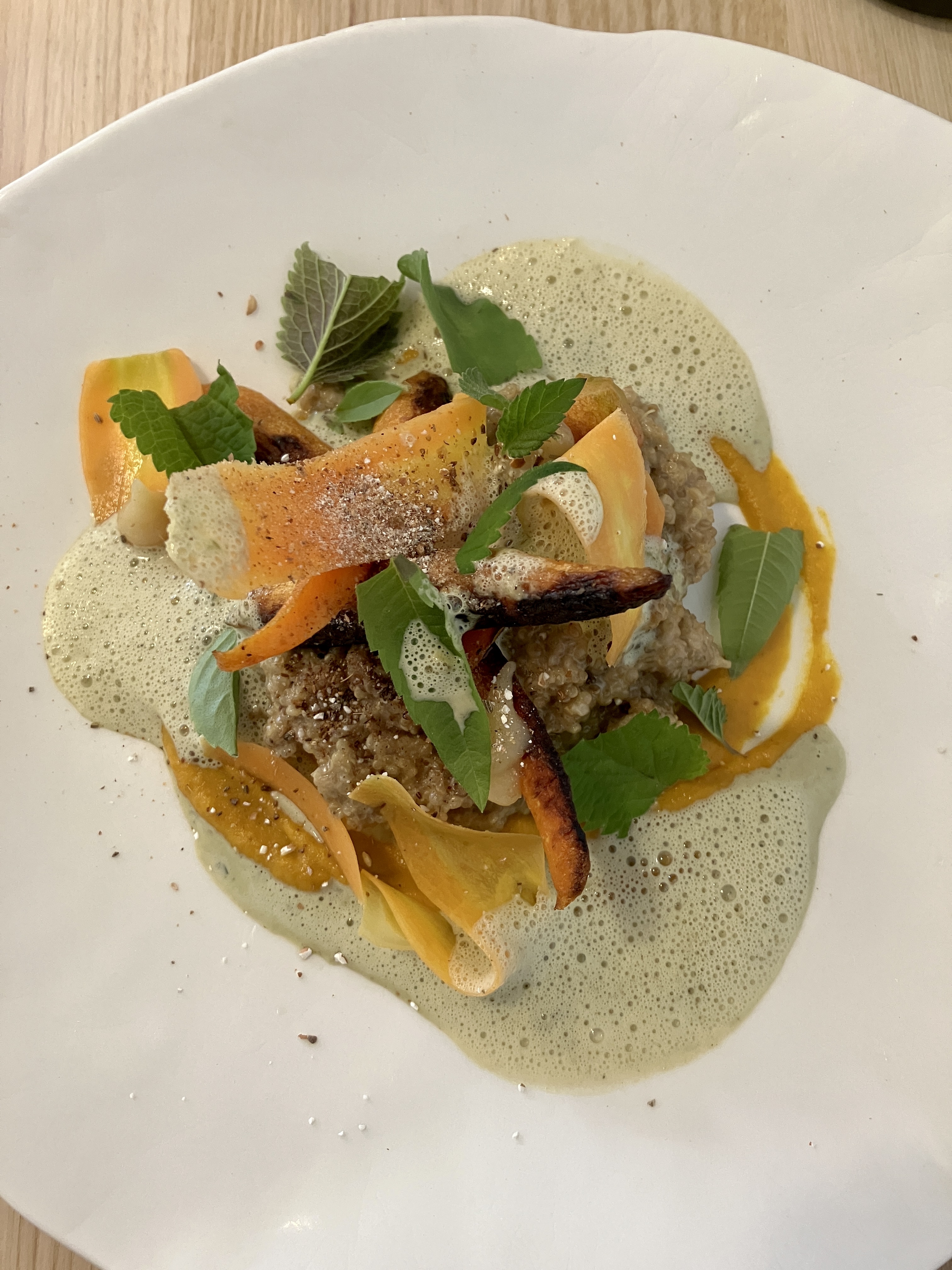 Tout était parfait ! C'était un régal du début à la fin. Les légumes sont cuits à la perfection, les portions sont bien dosées pour arriver au bout du menu dégustation. La déco est belle (la vaisselle !) et en plus le service est vraiment sympa !