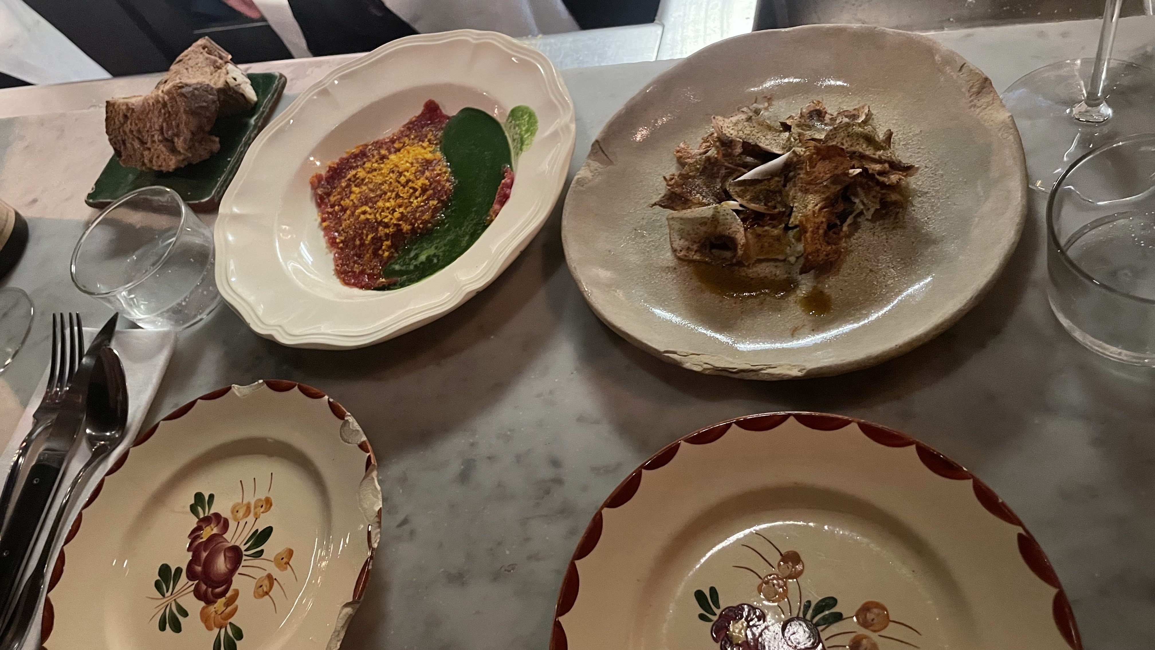 Cuisine hipster superficielle. Le lieu est bien trop petit mais les serveurs ne rangent pas les verres une fois que nous avons fini. Le temps servi entre les plats est éternel, 2 heures avant le plat principal, nous étions affamés même si le restaurant n'est pas occupé. Les serveurs étaient trop occupés à ne rien faire, à ne pas vous surveiller. En ce qui concerne la nourriture, les portions sont incroyablement petites, les ingrédients sont bon marché, le goût n’a rien de spécial, il n’est pas à la hauteur du prix que nous avons payé. Dans l’ensemble, vous quitterez probablement le restaurant sans sourire et vous vous sentirez très prétentieux d’y être. Le restaurant essaie d'être quelque chose mais la nourriture et le service ne sont pas là.