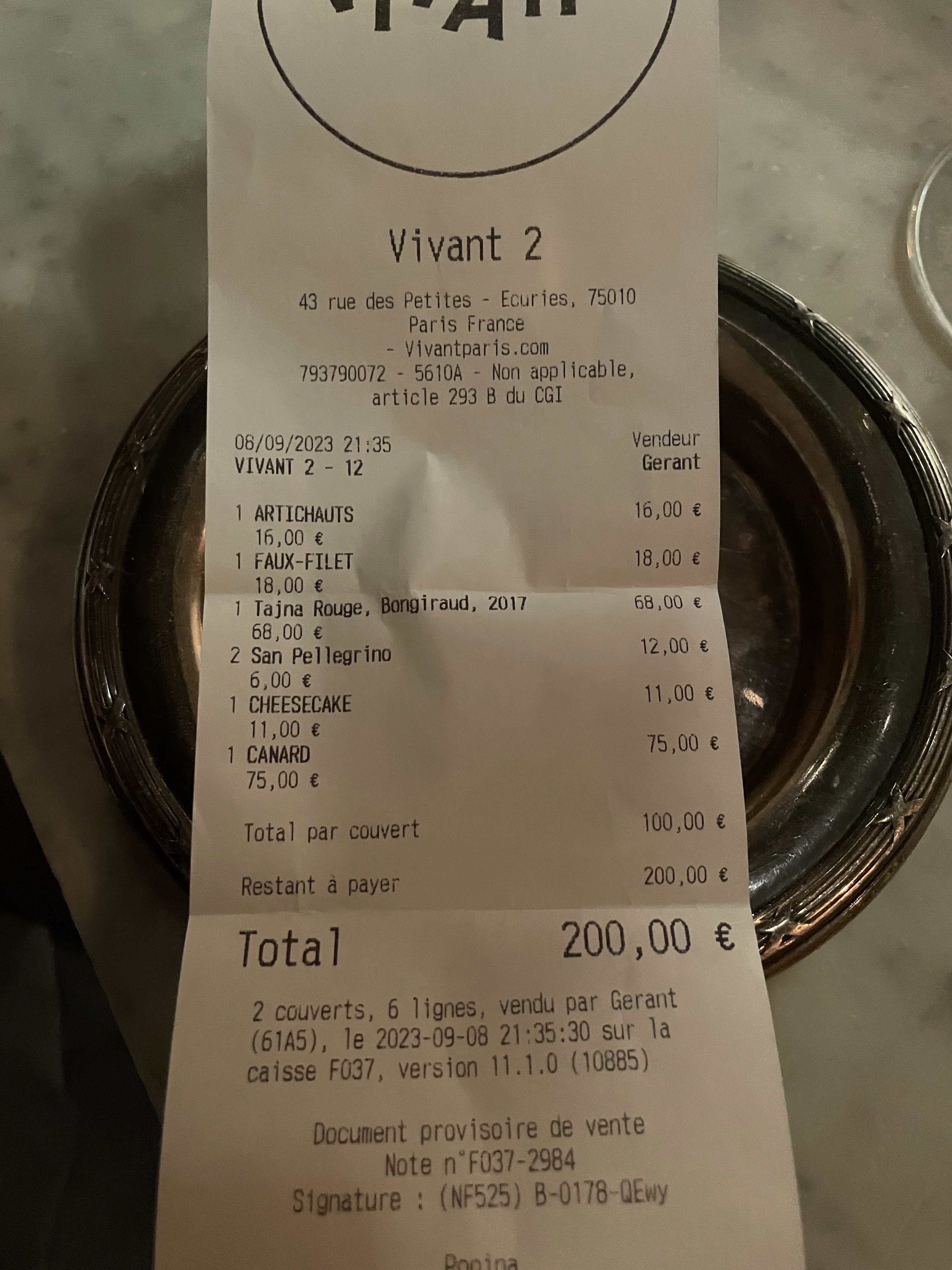 Vivant 2, un ovni culinaire du 10e arrondissement depuis plus de 8 ans. J'ai vu passer plusieurs chefs et équipes au fil des années. En janvier, je suis retourné avec ma douce pour découvrir la nouvelle carte du talentueux Léo Dauvergne, et nous avons été ravis, je dirais même enchantés. Nous avons opté pour la carte complète, et chaque plat était absolument délicieux, une véritable master class, le tout accompagné des conseils du sommelier señor Pietro ! Il dispose d'une des caves les plus exclusives et qualitatives de Paris. Le prix du dîner est à la hauteur de l'excellence de l'établissement ! Merci encore pour cette magnifique soirée ❤️❤️