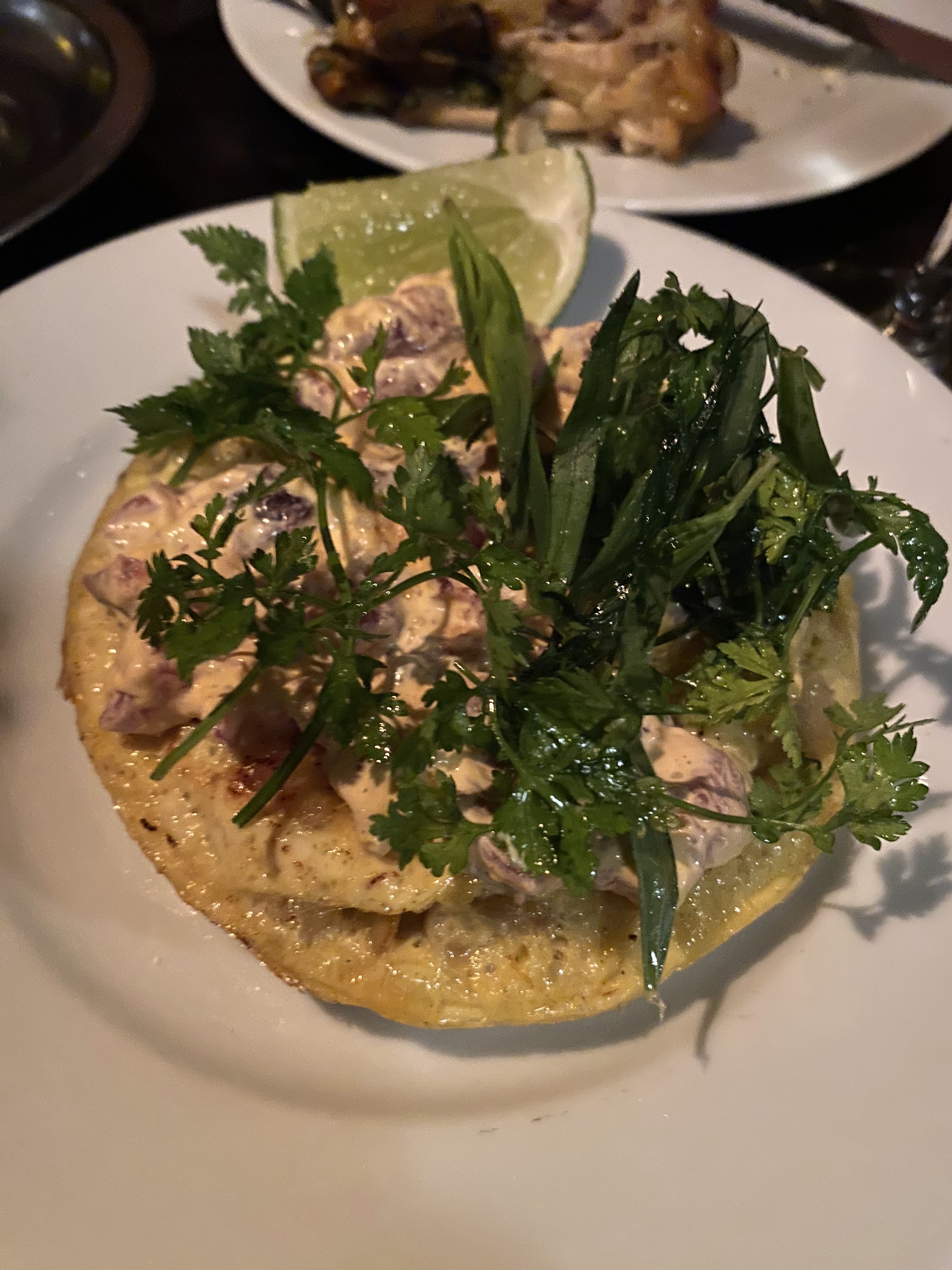 Une ambiance vraiment sympa et les entrées étaient incroyables. Cependant, je me suis senti un peu sous la pression d'un serveur qui nous obligeait à commander plus que ce qui était requis/voulu. Le plat principal que nous avions était également bon (tacos au porc), mais très peu assaisonné et je me sentais presque intimidé de demander plus de sel car le serveur était très opiniâtre. Le dessert était également au-dessus de la moyenne mais ne valait pas son prix. J'ai vraiment aimé l'ambiance et le concept, j'exhorte donc le restaurant à offrir un service plus poli et à rehausser les saveurs pour que cela vaille les prix que vous payez.