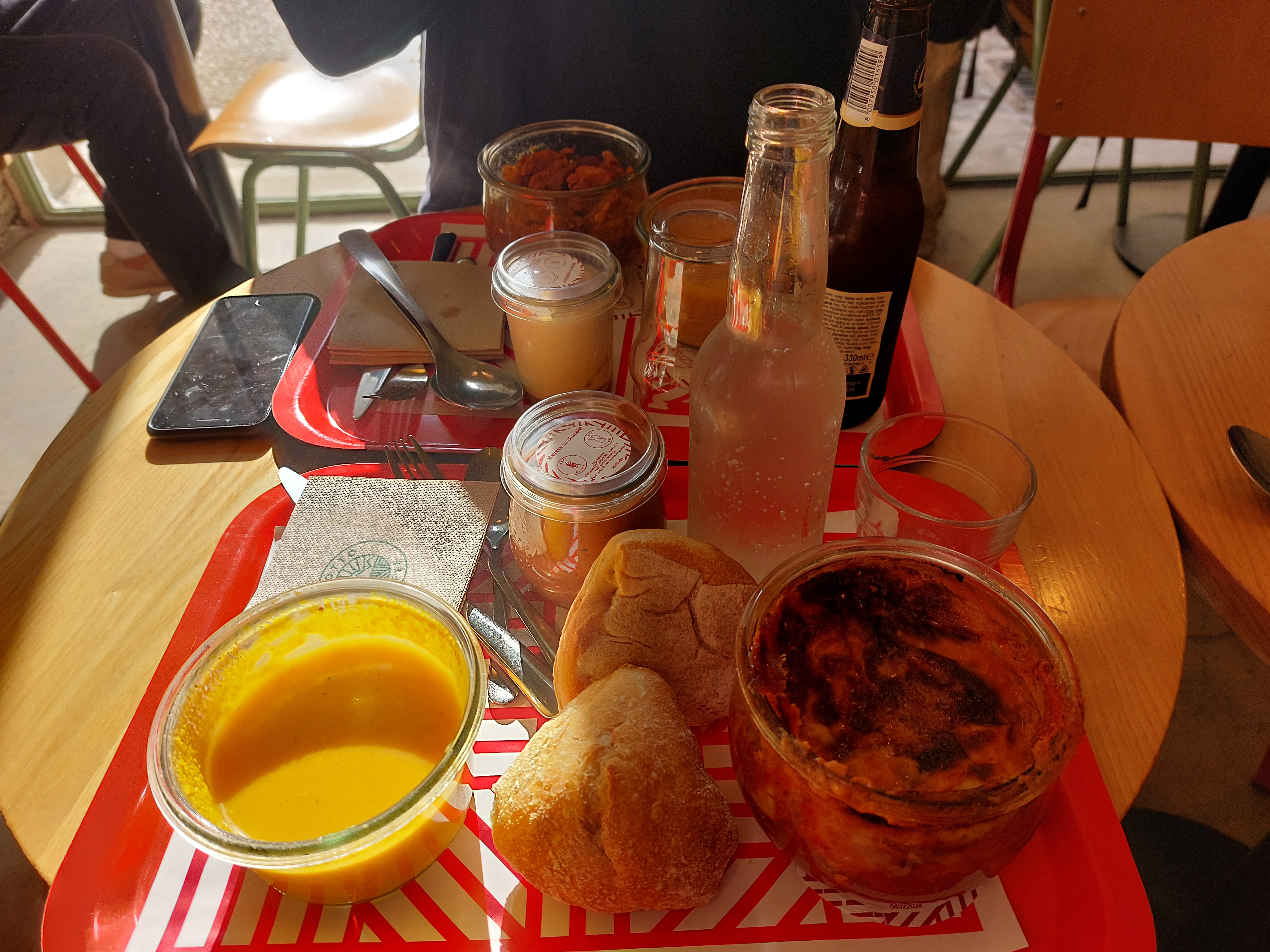 Super idée ! Cuisine italienne fraîche et délicieuse dans les wecks. Des prix incroyablement bas pour la France. J'ai mangé une soupe de carottes et de gingembre - ce genre de plat qui vous apporte un grand réconfort s'il est bien préparé. Et c’est fait :) Je vais essayer de copier celui-là dans ma cuisine. Choix intéressant de thé à feuilles et de bon café non plus.