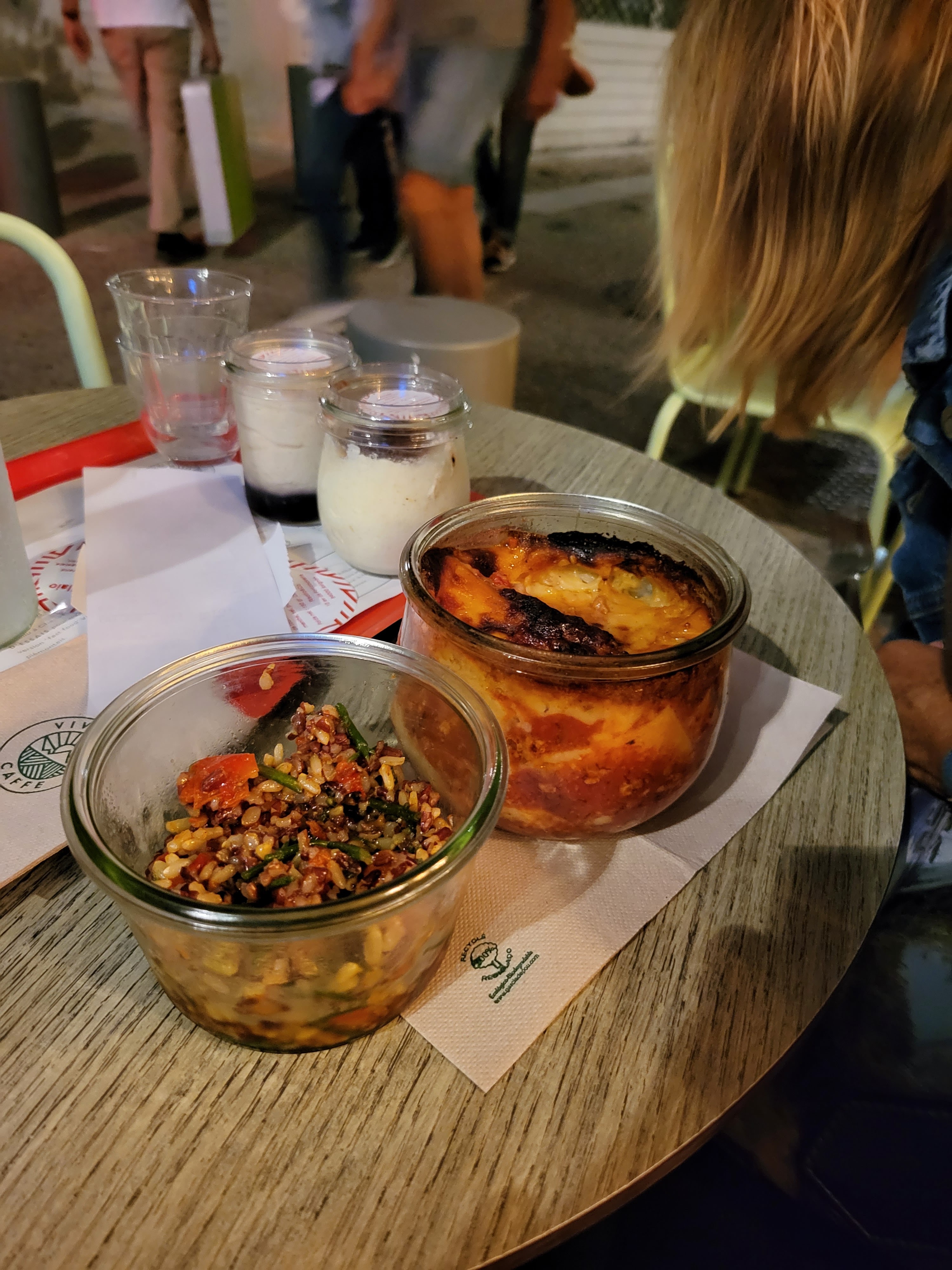 Lors de notre dernière nuit à Avignon, nous n'avons pas eu l'impression d'assister à un dîner complet et formel. Nous avons donc choisi de prendre de la nourriture décontractée à Vivotto, qui présentait une belle exposition d'articles dans des bocaux en verre. Il s’agit d’un type de lieu de restauration en libre-service, ce qui était parfait pour ce dont nous avions envie. La dame qui travaillait là-bas parlait bien anglais et était très sympathique et serviable. Elle a patiemment expliqué les différentes options de restauration et donné des recommandations. La sélection comprenait également de nombreuses options sans gluten, végétaliennes et sans produits laitiers, ce serait donc un endroit idéal pour ceux qui ont des restrictions alimentaires.
