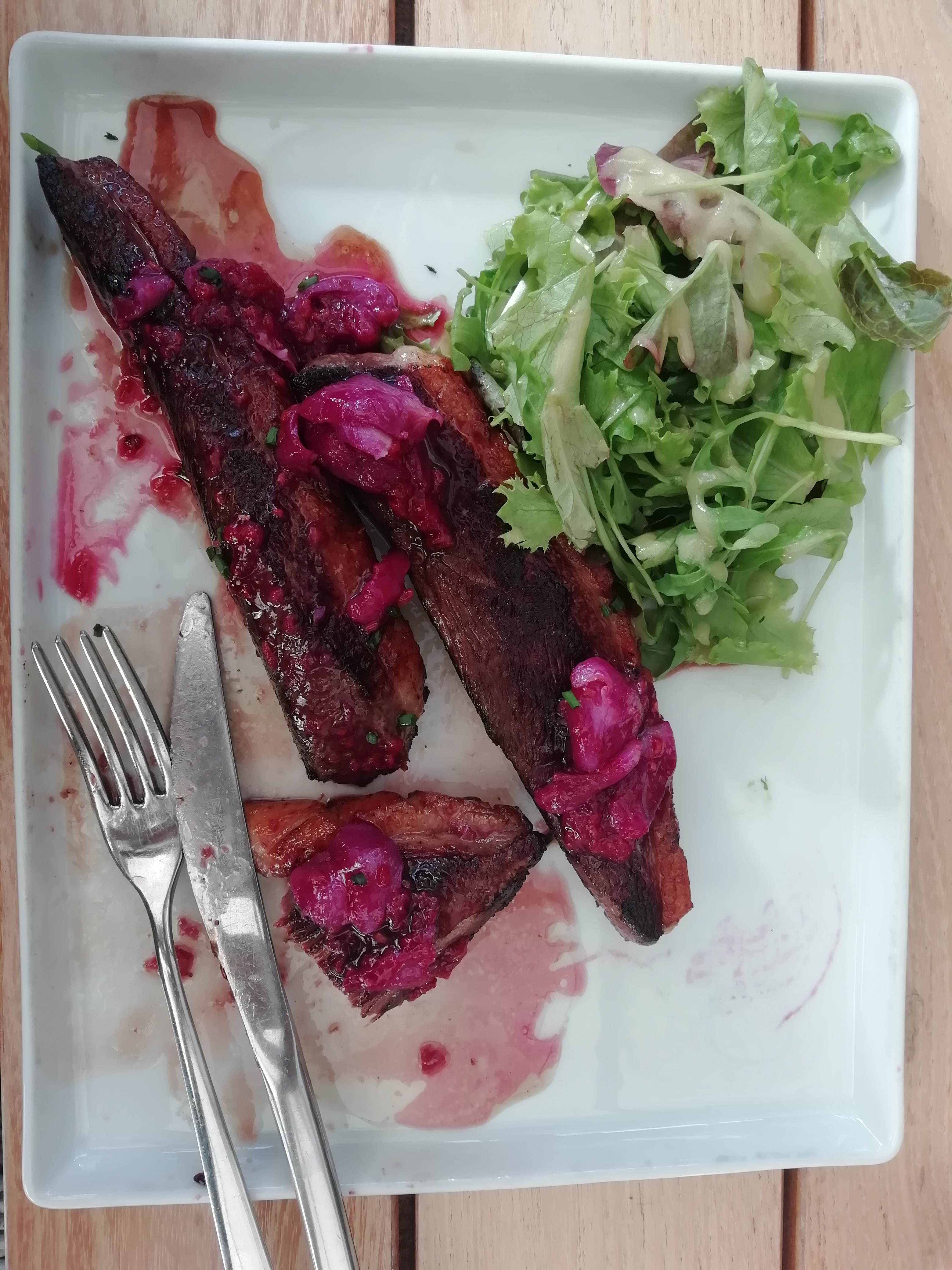 Un magret de canard très intéressant en prix vu la quantité de viande présente dans l'assiette. Il fut tellement bon que j'avais déjà mangé les frites et une bonne partie du premier morceau de magret de canard avant de prendre une photo. Un délice !!!