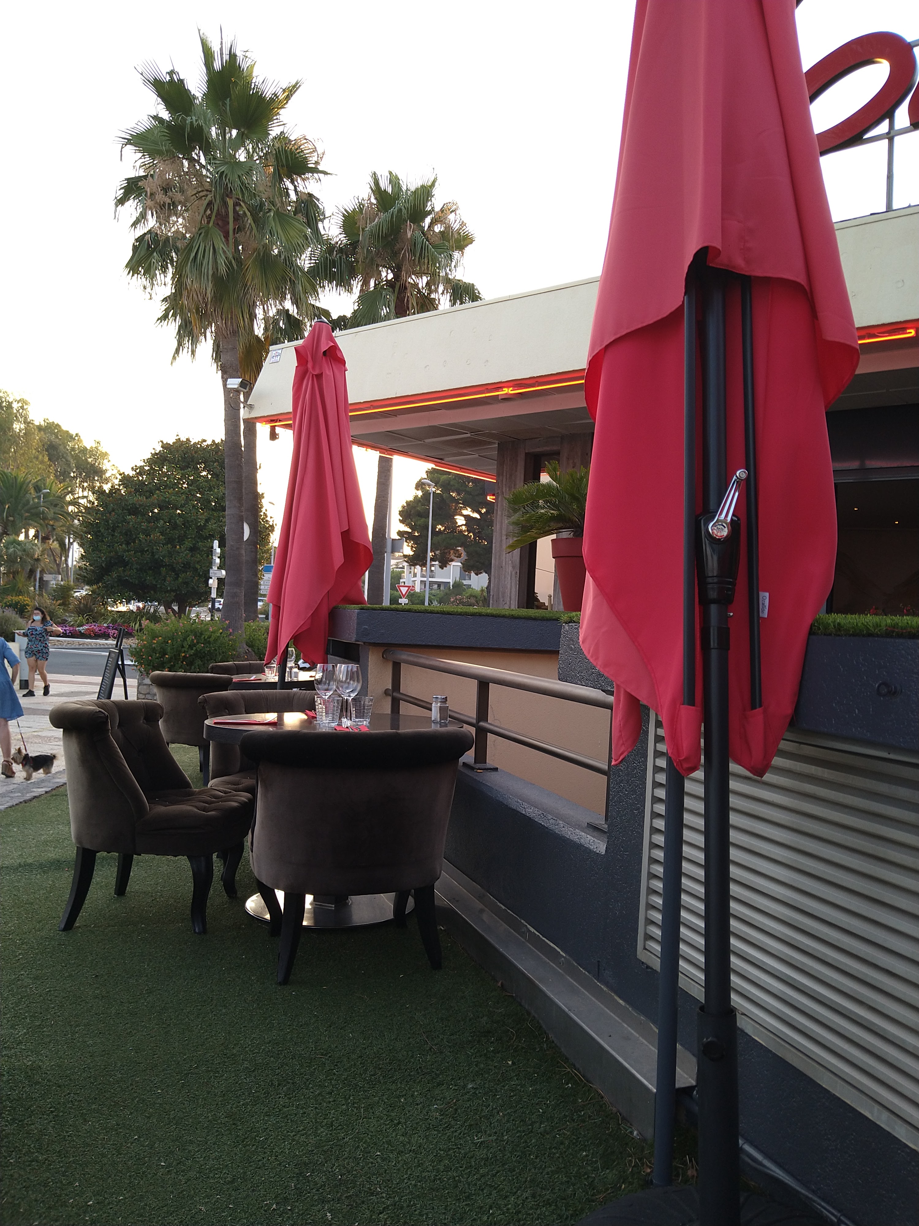 Si vous aimez observer les avions et prendre un bon repas, cet endroit est fait pour vous car vous êtes assis le long du sentier d'approche de l'aéroport de Nice. Nous avons eu les calamars en entrée, frais et croustillants, mais ici je dois déduire un point. Il y avait plus de tentacules que d'anneaux et le bol était à moitié rempli de salade. J'ai eu le poke bowl qui était bien, mais trop de tomates crues (pas un légume qui va avec le style oriental), mon partenaire a pris le burger qui m'a assuré qu'il était très bon. Service sympathique et rapide donc je recommande.