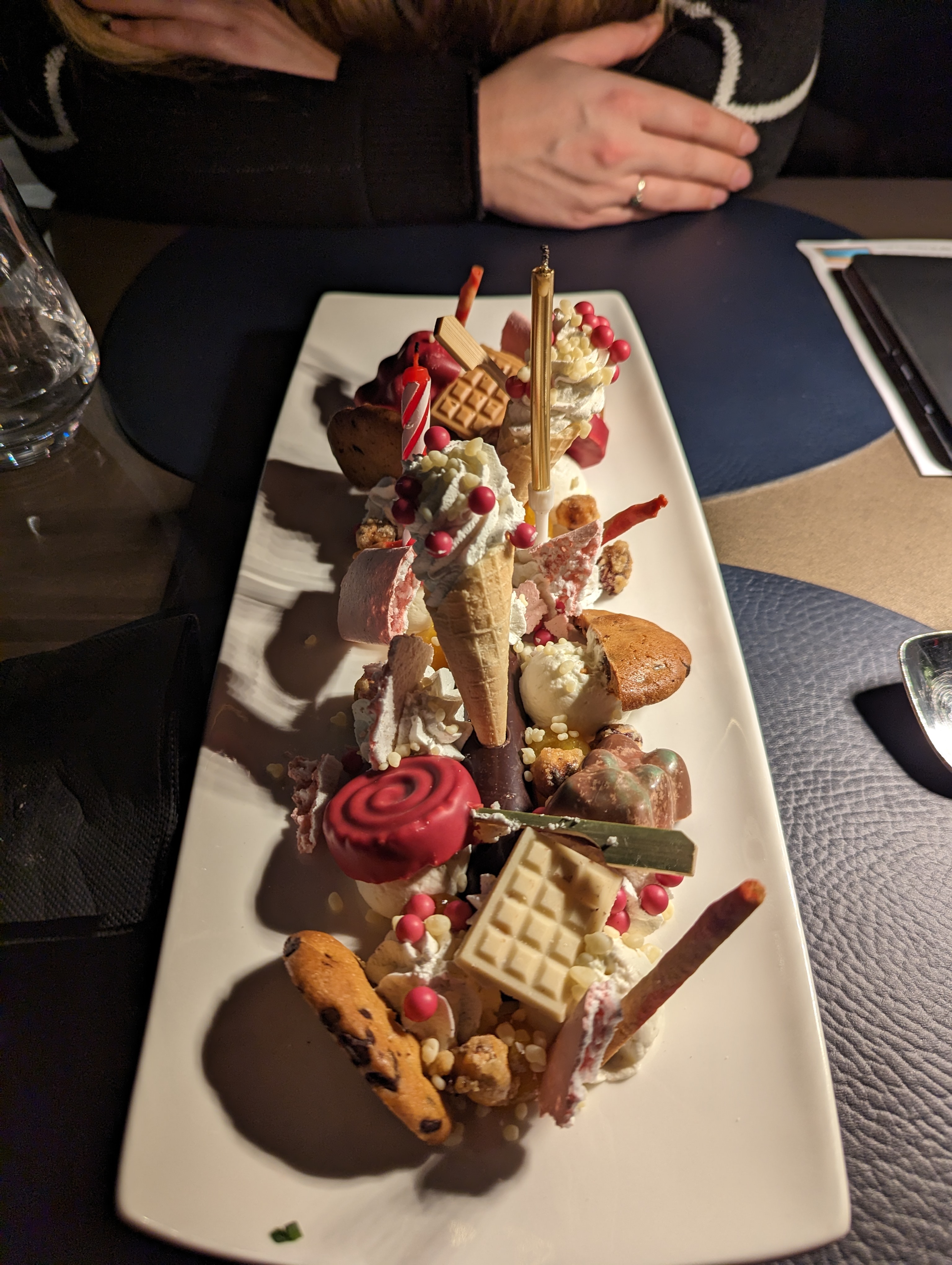 Très déçu et vraiment pas terrible pour un restaurant qui se veut plutôt chic. Premièrement, l'ambiance de Noël kitch et too much qui remplace l'immersion vol alors que c'est l'atout principal du restaurant. Aucunes informations sur ce remplacement et une pseudo excuse du serveur qui explique que c'est une décision du patron. À la limite, on comprends presque, c'est Noël. Mais prévenez vos potentiels clients! Deuxièmement, les plats n'étaient vraiment pas extraordinaires, pas mauvais mais pas du tout en adéquation avec le prix. L'entrée était plutôt bonne. Les plats principaux inondés d'émulsions pour cacher les maigres quantités (une viande/un morceau de carotte/un morceau de navet/sauce), ça ne fonctionne pas. Le dessert, beaucoup trop sucré, dressage de caféteria, poser sur un biscuit industriel, digne d'un dessert de chez Picard (voir photo). Au final, seul le vin blanc de noël a su relever le niveau avec son goût fruité épicé mais encore une fois le prix prohibitif entache le plaisir. Bref, je n'y retournerais pas car le sentiments d'avoir payé trop cher pour ce que s'est reste plus longtemps en bouche que le goût des plats. Mettre le prix n'est, selon moi, pas un problème pour avoir une ambiance particulière et une véritable cuisine de qualité dans son assiette. Il y a vraiment bien mieux ailleurs dans la région.