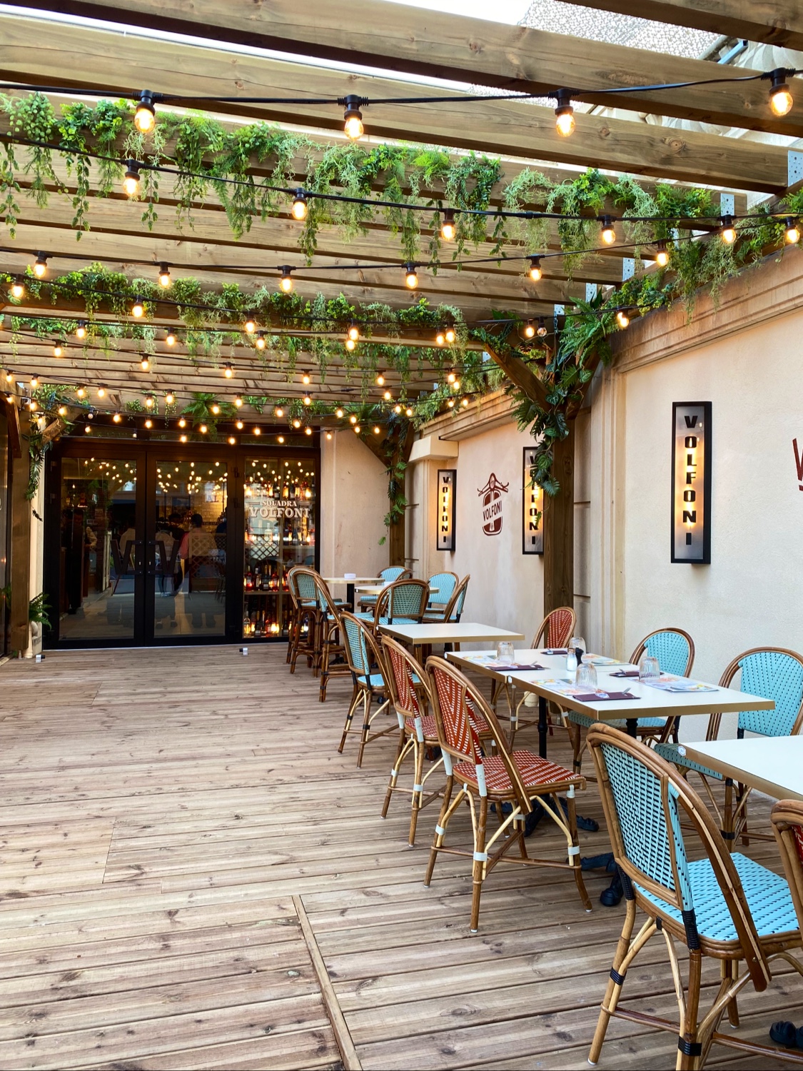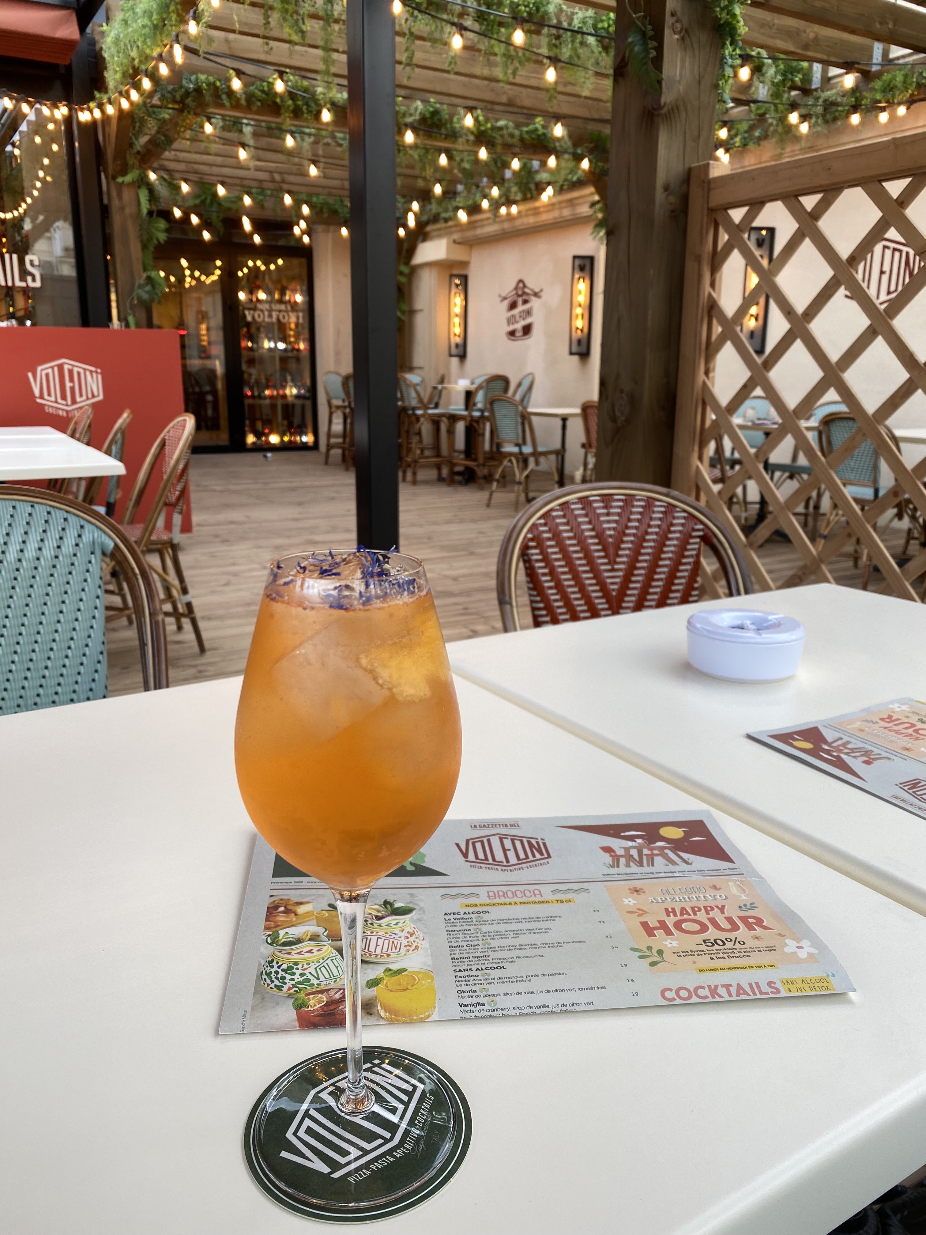 Super accueil dans le restaurant Volfoni! La deco à l’extérieur comme à l’intérieur est magnifique. Ça donne envie de s’installer en terrasse pour boire un verre, ou profiter d’un bon repas à l’intérieur. C’est vraiment cocooning! Les prix de boissons sont très intéressants (surtout pendant le happy hour). Les cocktails sont bons ainsi que les tapas. Personnel très sympa et à l’écoute. On reviendra!!! (Faut qu’on goûte le reste des cocktails 😅)