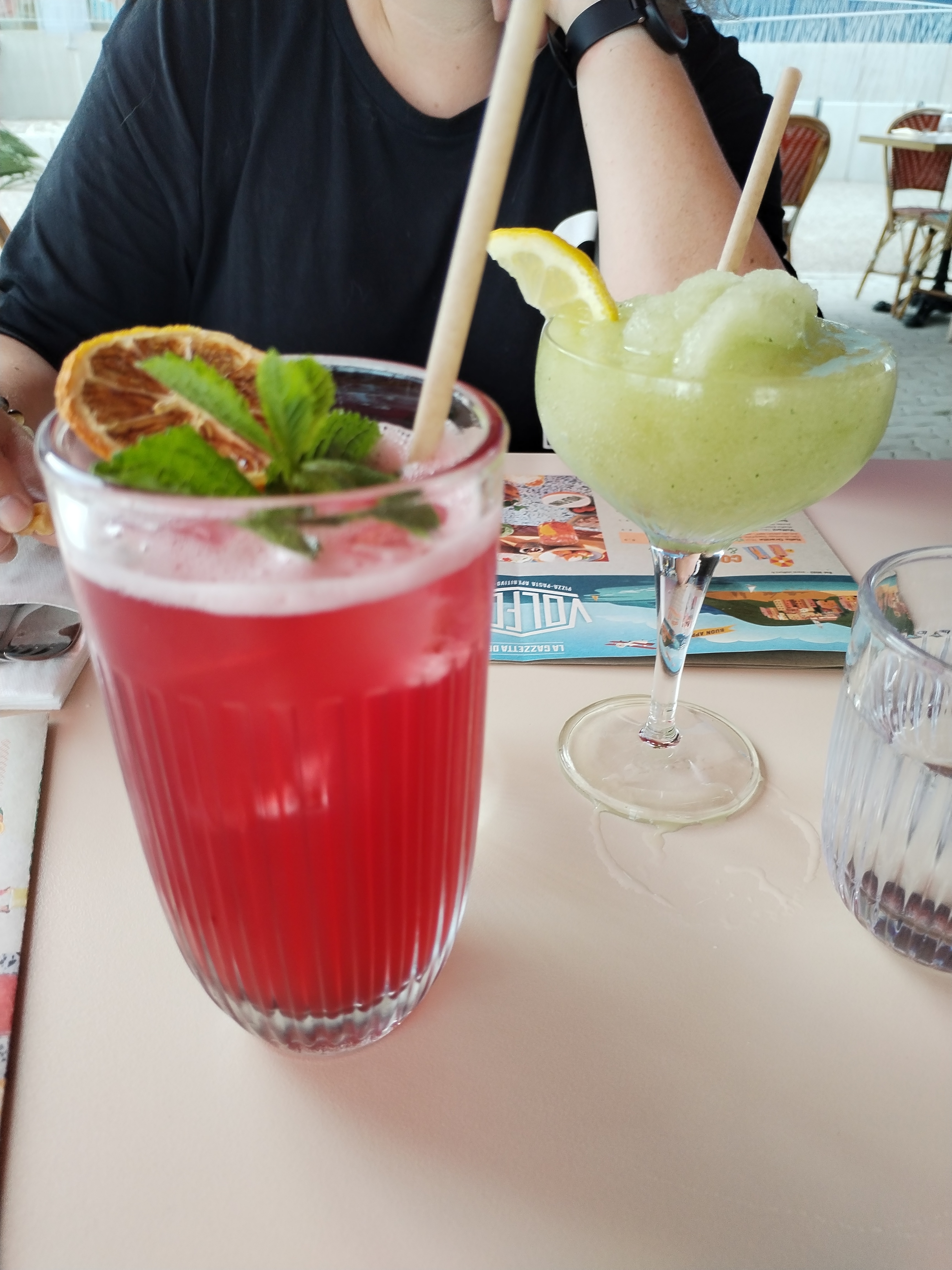 Nous avons pris 2 cocktails : volfoni pour moi (il était bon) et Italian granit (ma femme a été déçue) En plat (j'ai oublié de prendre la photo), nous avons pris 2 salades pêche parma. Elles étaient bonne. Le service a rapide. Serveur agréable.