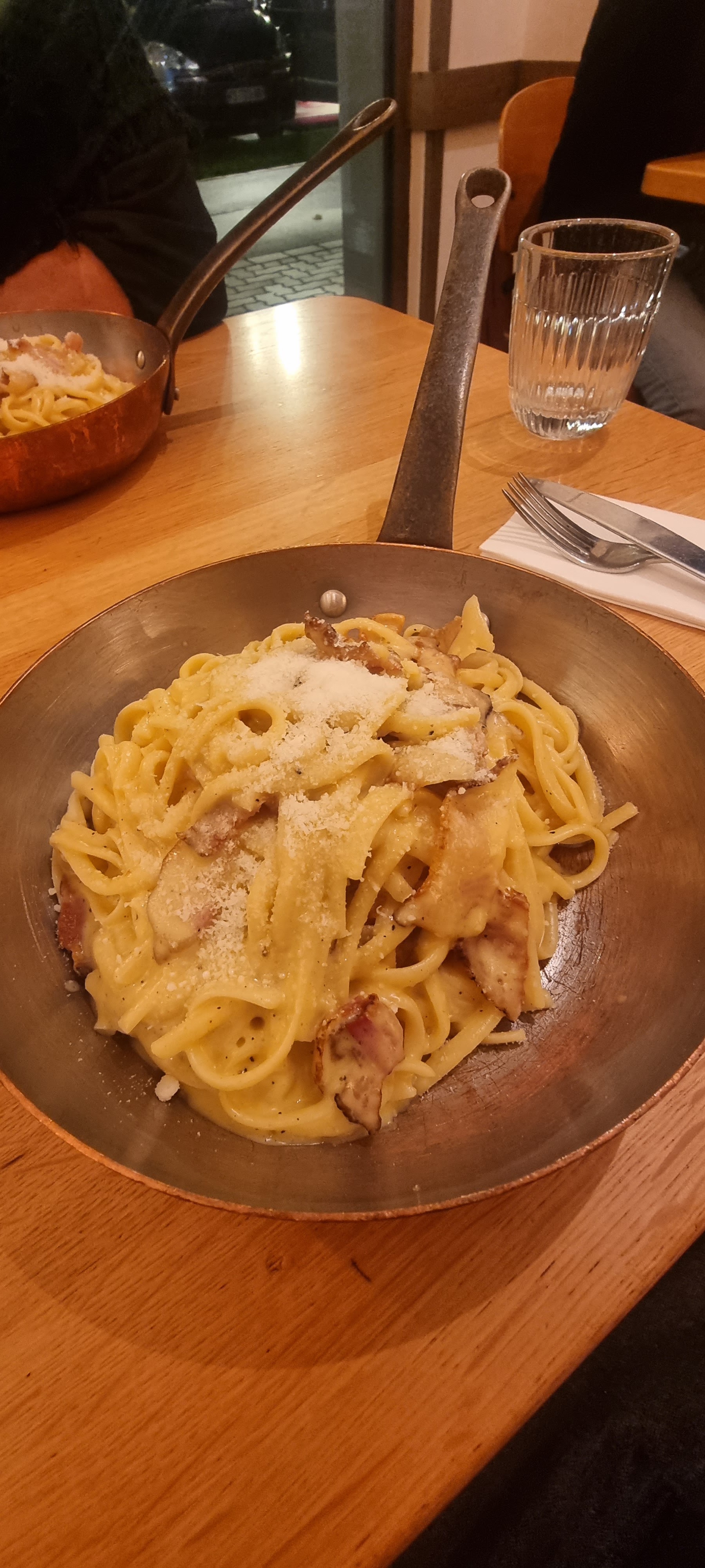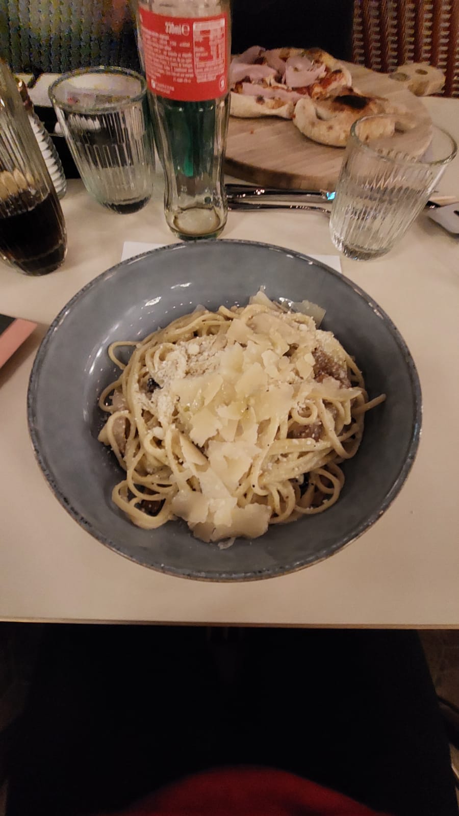 Bonjour les amis très bon restaurant l'accueil et le service était très satisfaisant petit bémol concernant le plats linguine carbonara bon mais un peu froid et aucune présence de poivre en grain écraser les pâtes sont servie dans une poêle qui était froide bref mise à part j'ai passé un bon moment il y plein d'autres bonne choses sur la carte pizza salades et bien d'autres