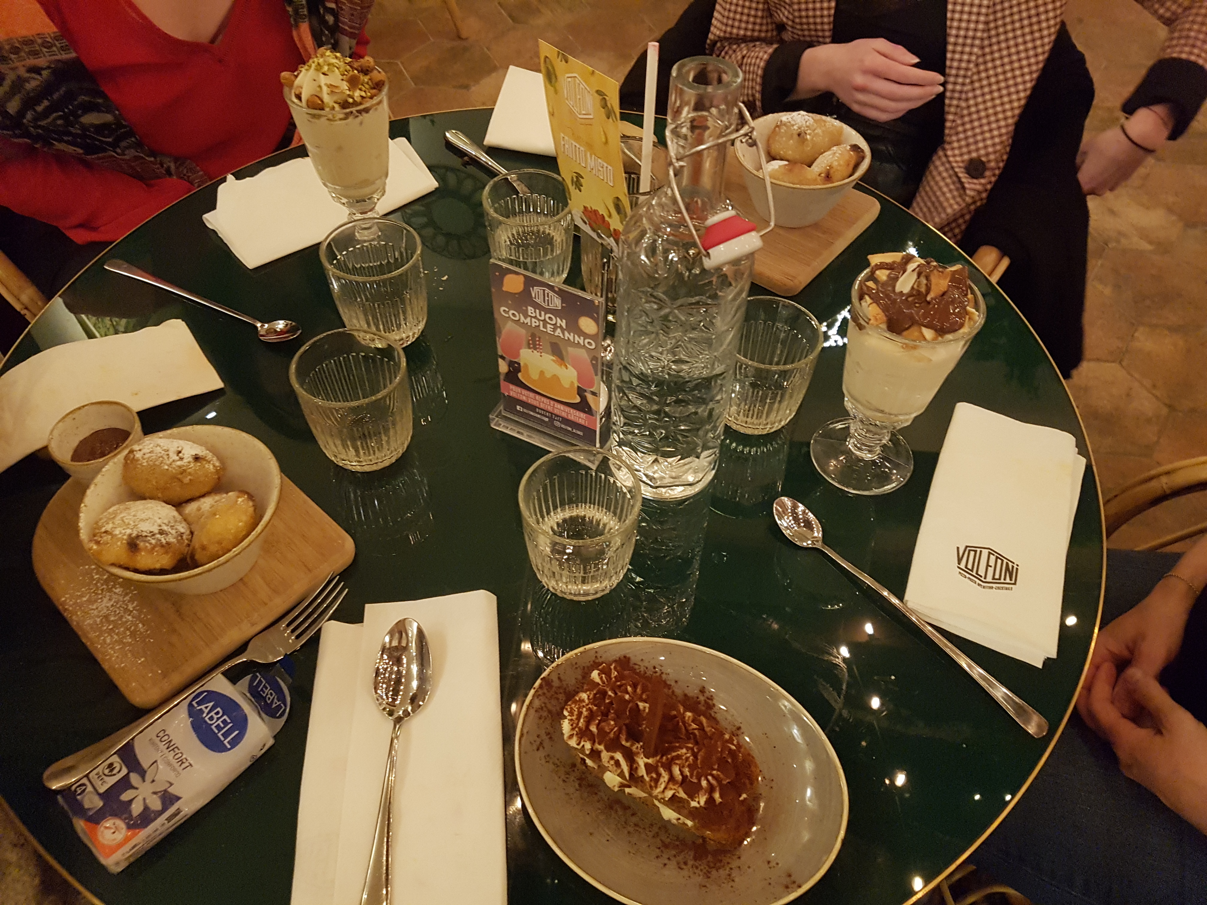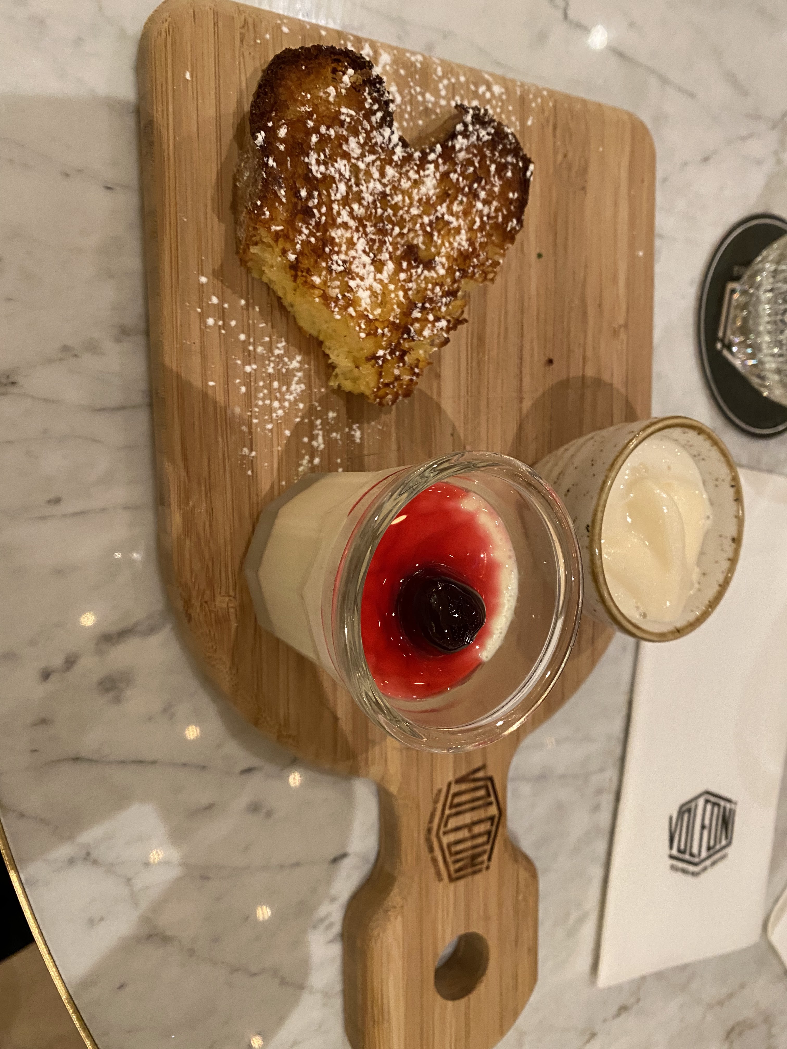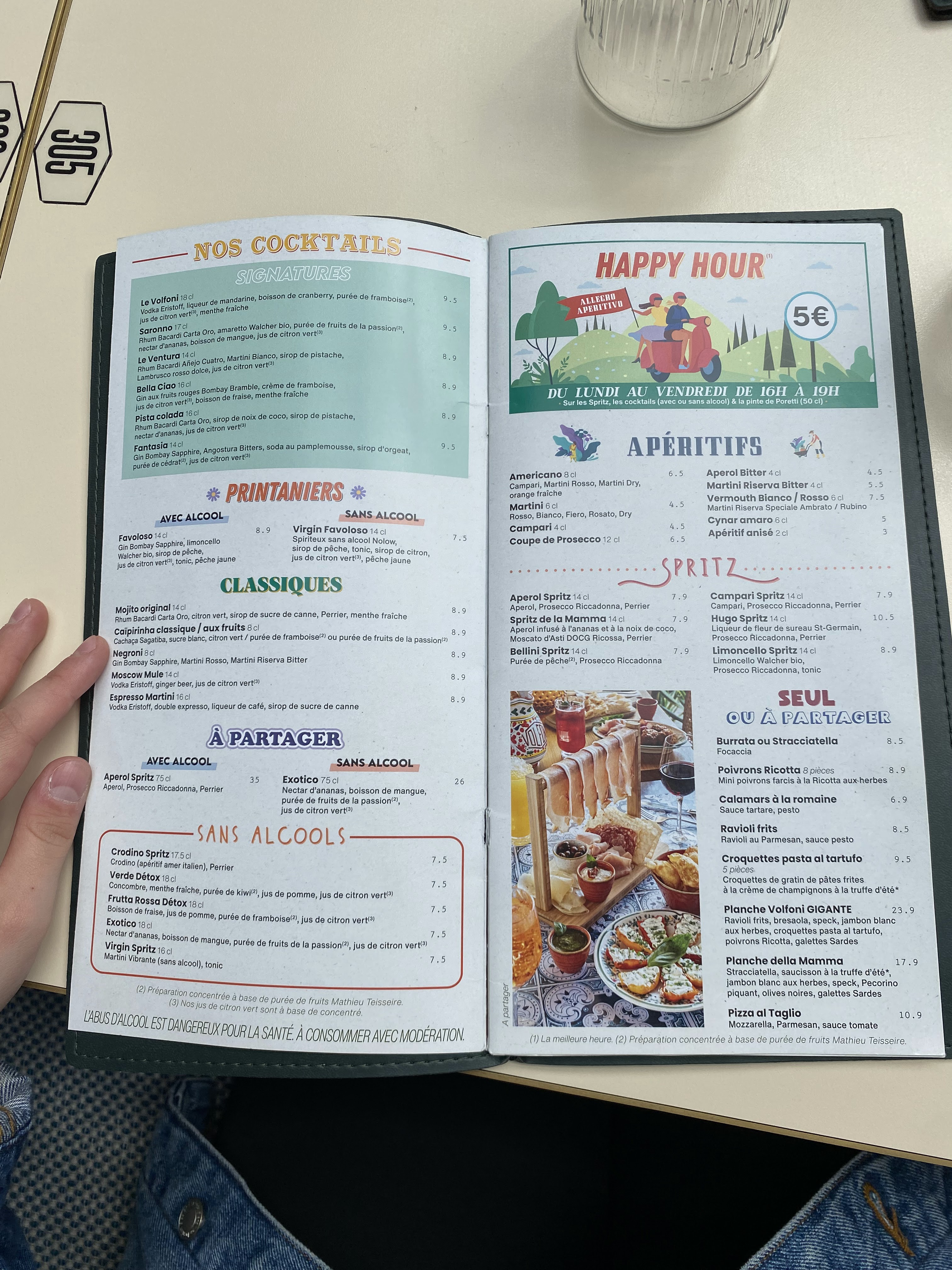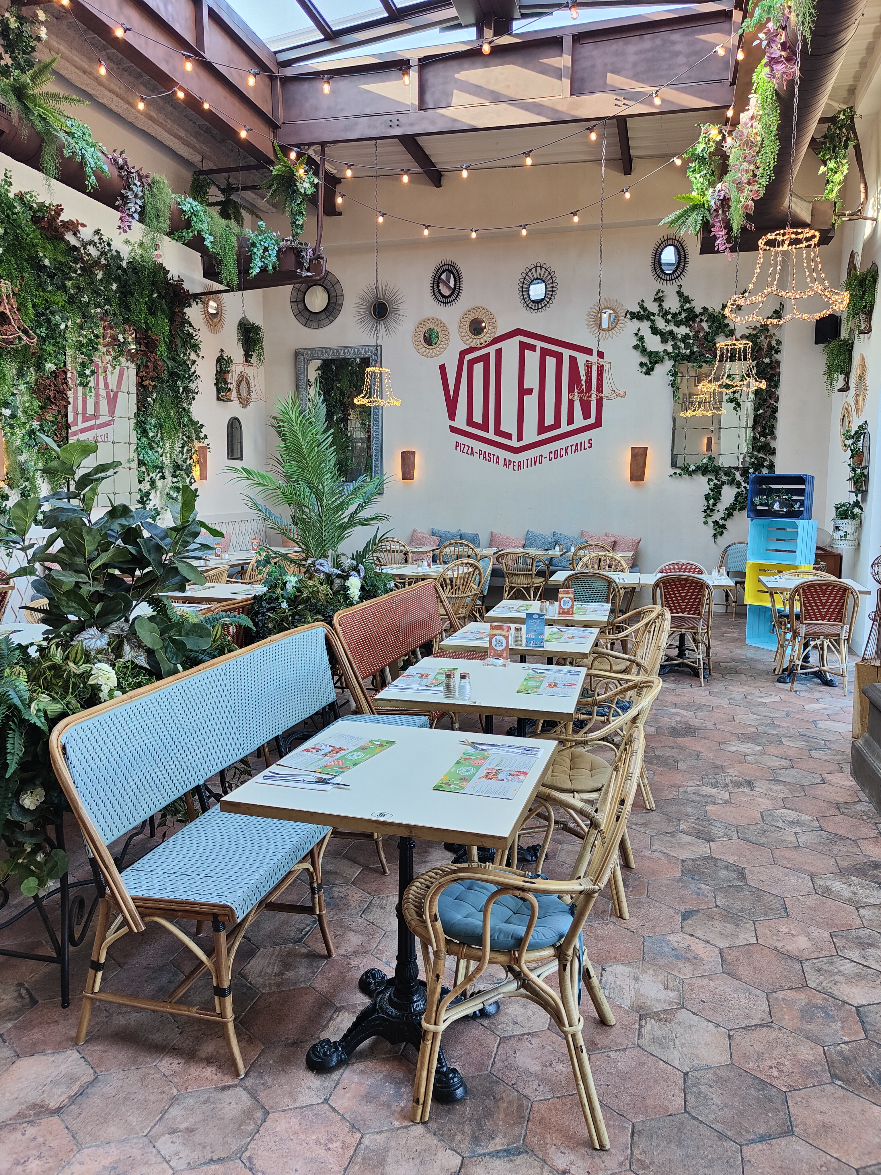 Étant de passage avec 3 amis nous entamons notre démarche gustative vers ce lieu nommée volfoni….. Tout d’abord je tiens à félicité l’ambiance et la décoration très charmante. Cependant le rapport prix quantité laisse à désirer … Effectivement , un plat de pâte pesto burata a 18€ nous a été servis et qu’elle surprise celui ci étais peu garnis , assez mal présenter malgré que ce soit servis dans une poêle en cuivre et de plus culinairement parlant ça n’étais pas non à la hauteur du prix …. Les serveuses avaient l’aire dépasser par les évènement et de nombreuses erreurs ont survenu lors de nos commande , demande et autre présentation de base …. J’espère qu’une amélioration rapide (surtout sur la quantité) va être engager ….