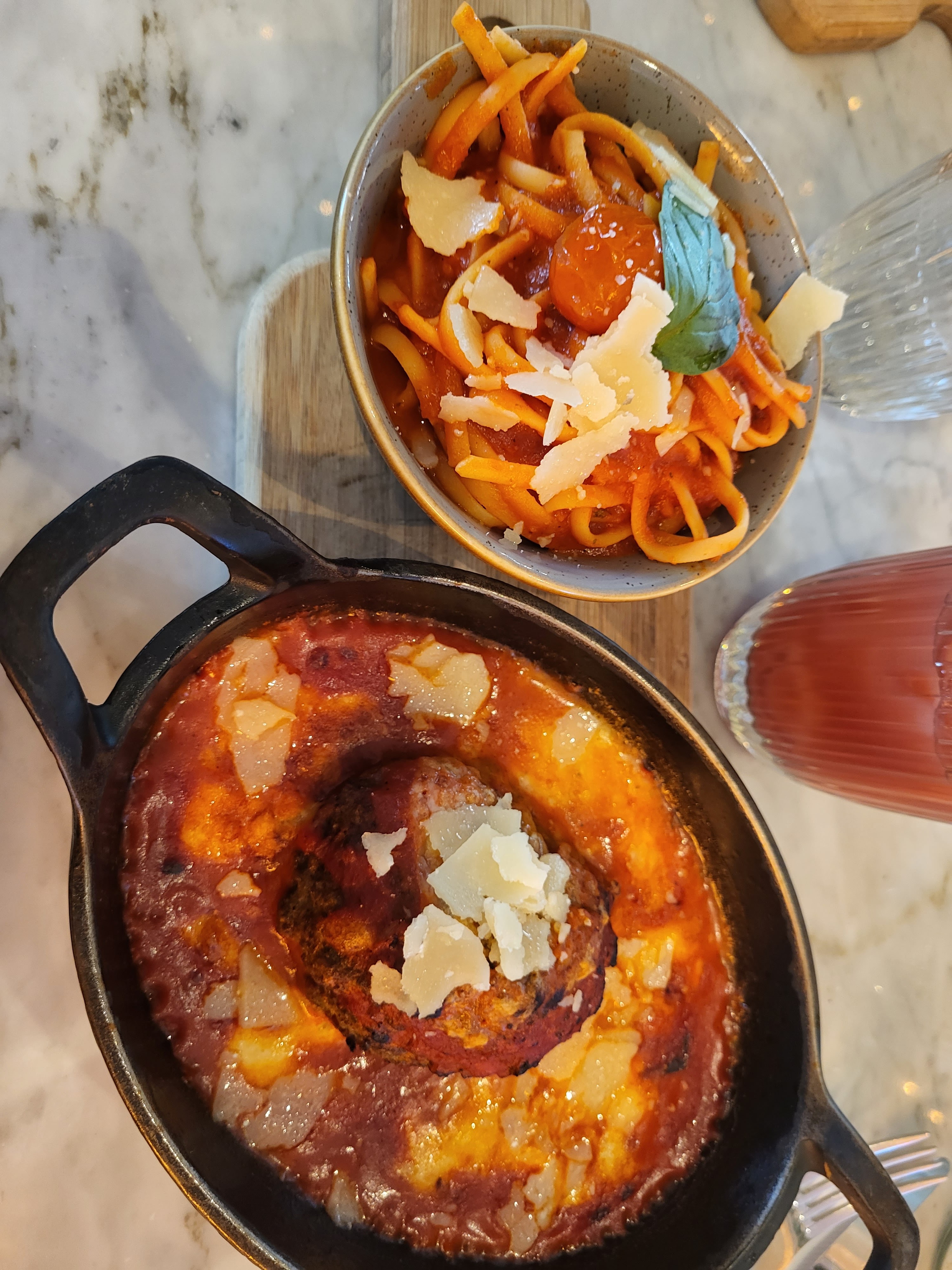 Restaurant plutôt joli mais les tables sont très voir trop proche les unes des autres.... les plats sont bons mais attention aux intitulés, j'ai pris des pâtes epinards et buratta , il y avait très peu d'épinards et le plat était pas très chaud, donc très vite froid! Et chéri a pris une pizza et pareil. Le personnel a fait comme il a pu pour suivre le rythme, mais clairement ça ne suffisait pas, dommage
