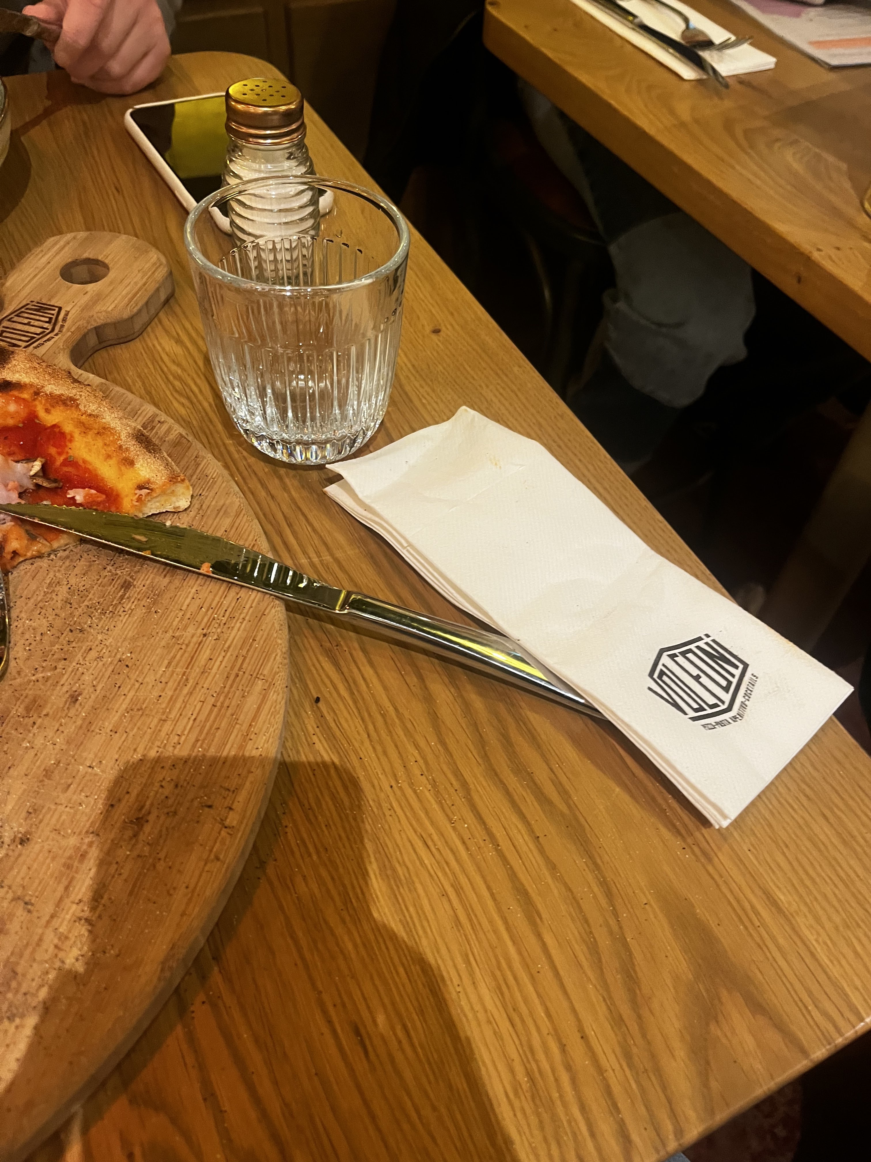 Le tables sont toutes très serrées, on était pas à l’aise. Très bonne pizza. Le plat de monsieur était presque froid à l’arrivée, et il a attendu le parmesan toute la soirée, qui n’est jamais arrivé lol. Le dessert très bon.