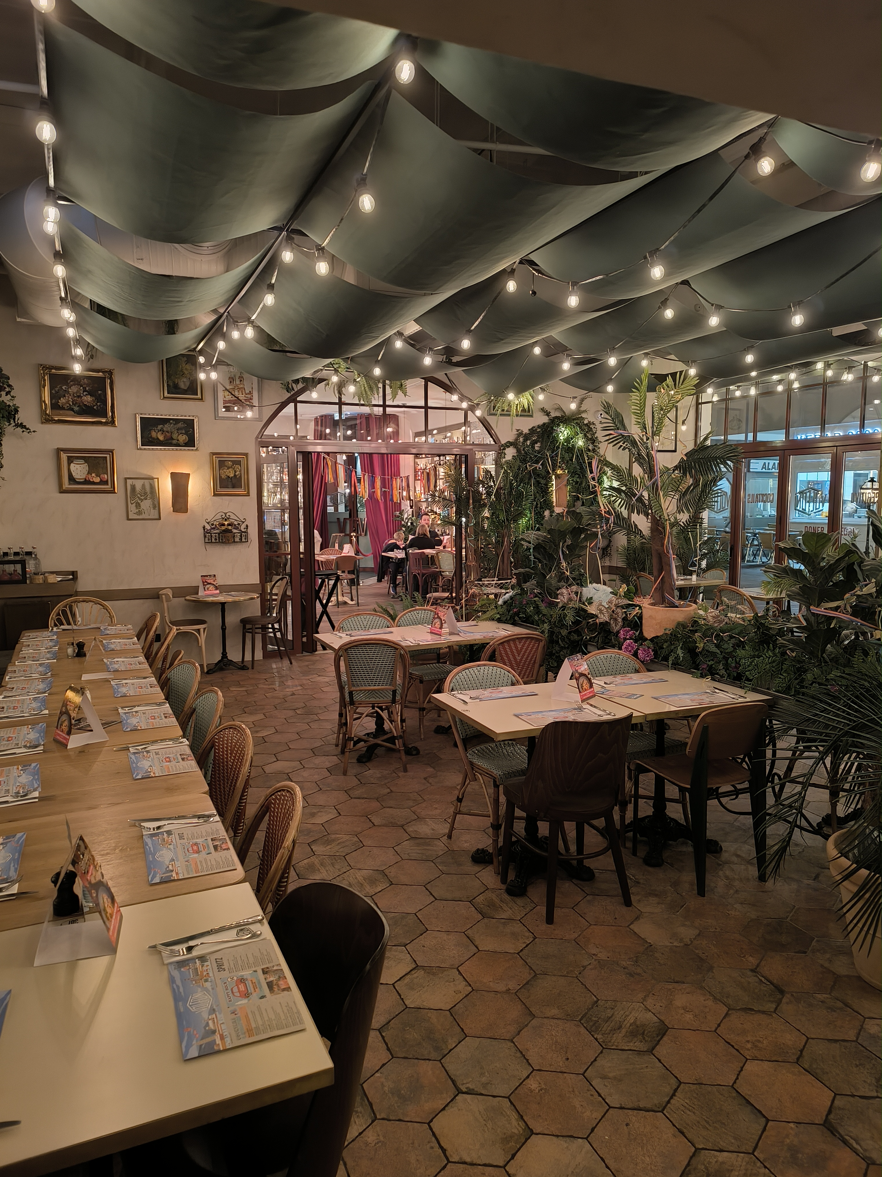L'endroit est vraiment super la décoration est magnifique surtout en soirée avec les petites lumières ont ce croirait vraiment en Italie le service est super et le personnel très sympa avec la clientèle les plats sont assez bon il y a aussi de bon cocktail