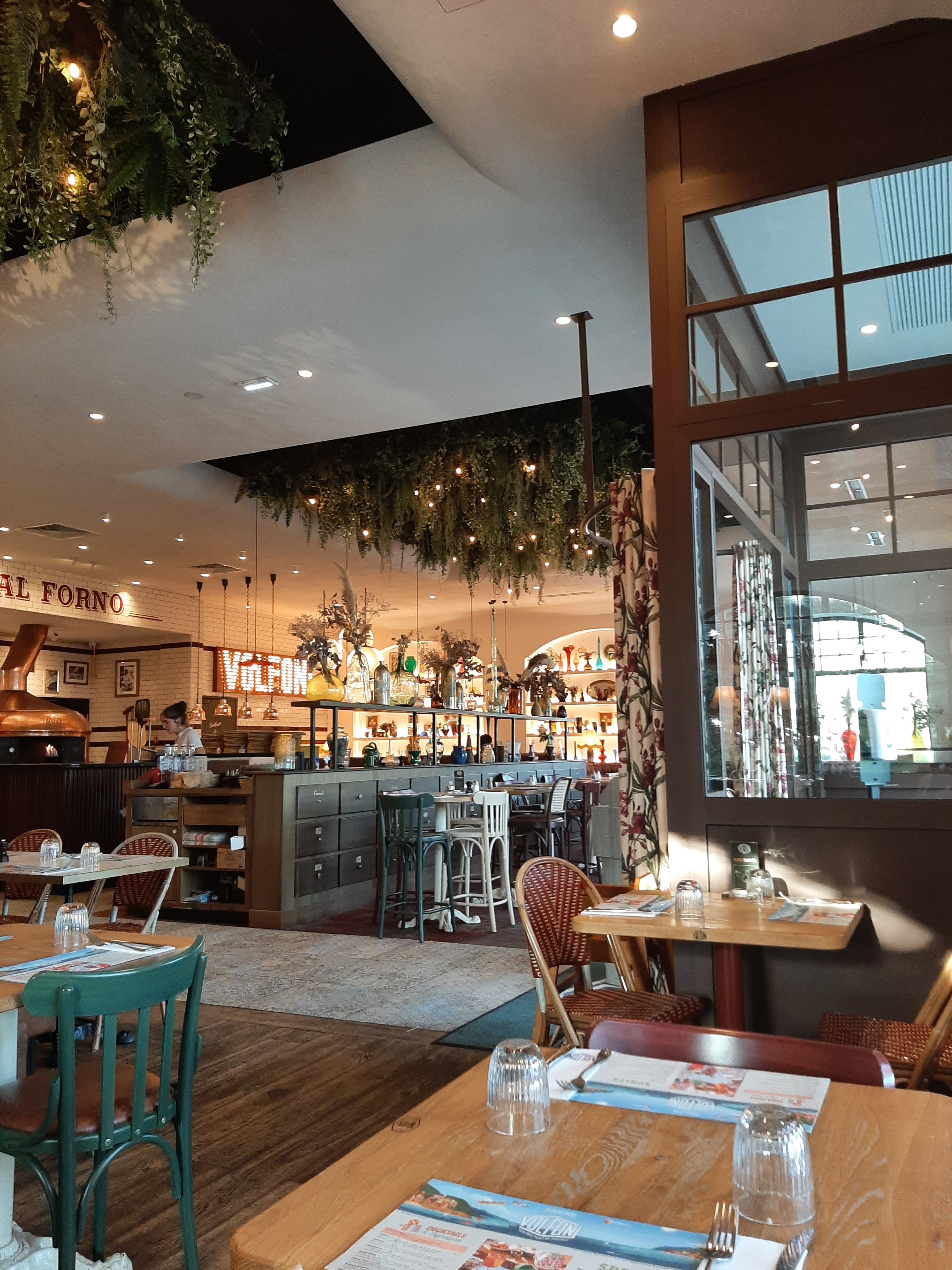 Très belle découverte en ce samedi soir chez Volfoni. Ce restaurant a décidément tout pour plaire: - un personnel attentif et très aimable (bonjour/bon appétit/merci sont de rigueur) - une salle magnifiquement décorée et bien arrangée - une nourriture excellente, faite à partir de produits frais! Un bon point pour leurs pizzas (la meilleure quatre fromages que j’ai mangé). A noter que leurs pizzas ont une pâte très très fine. Très bons desserts qui vont bien au delà de la classique glace ou de la panna cotta proposées par tous les restaurant italiens. - des cocktails délicieux et originaux qui en font un mieux propice aux afterwork/apéritifs Bref, nous avons passé un TRÈS bon moment. Bien mieux que ce que nous aurions pensé! S’il fallait faire quelques remarques pour rendre l’expérience parfaite (en dépit des 5 étoiles), voici quelques commentaires pour la direction: 1. La ventilation un peu forte sur les côtés peut être une nuisance pour certains clients 2. L’huile piquante mériterait de l’être plus