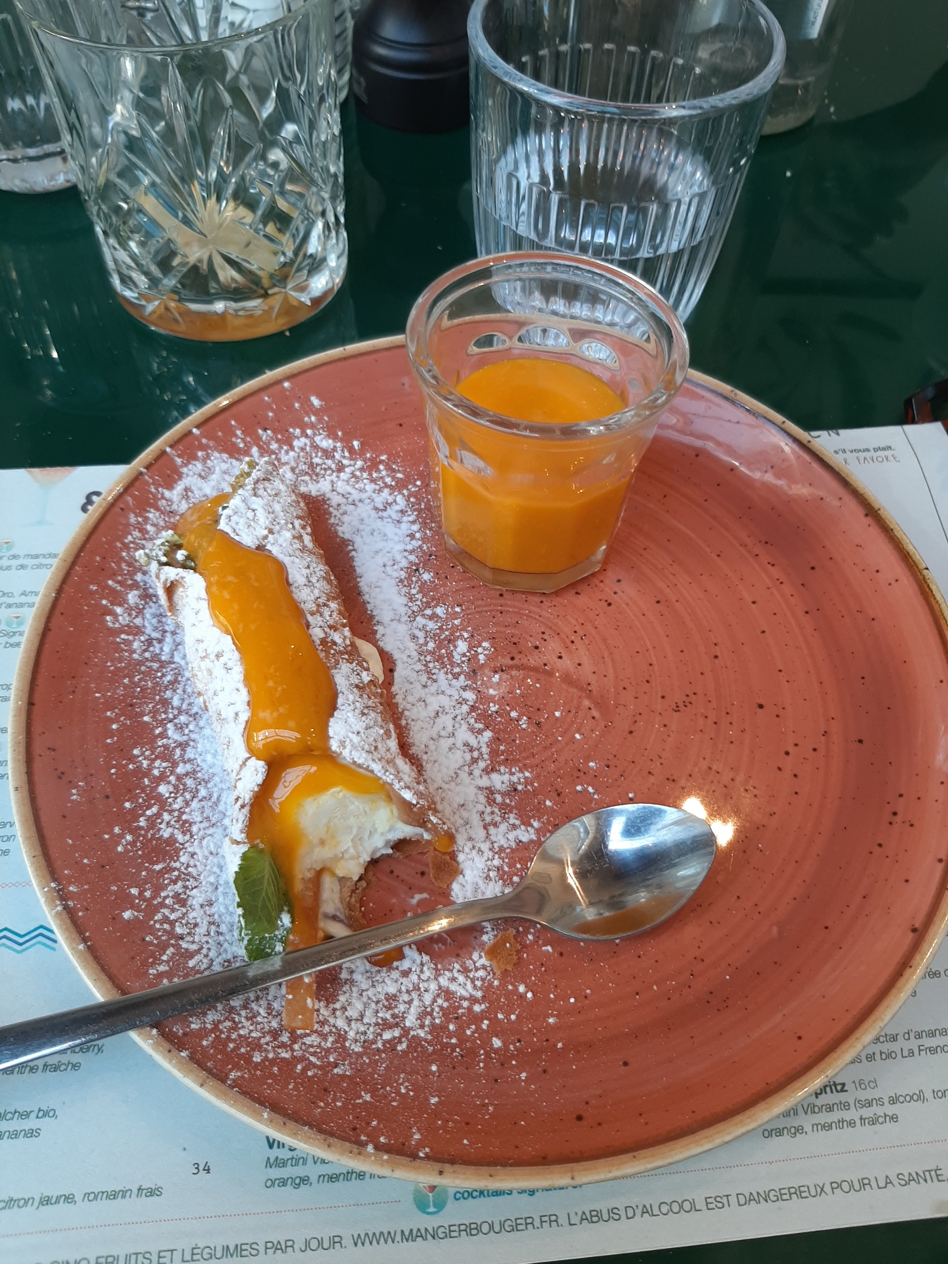 Le cadre du restaurant est super, la terrasse est sympas. Le service a été correct. Nous avons prit un dessert. Une glace à l'italienne : j'ai commandé vanille, j'ai eu 🍓. Chimique, Sucré+++, mauvaise. Deux cuillères c'était assez malheureusement je n'ai pas pu manger le reste.