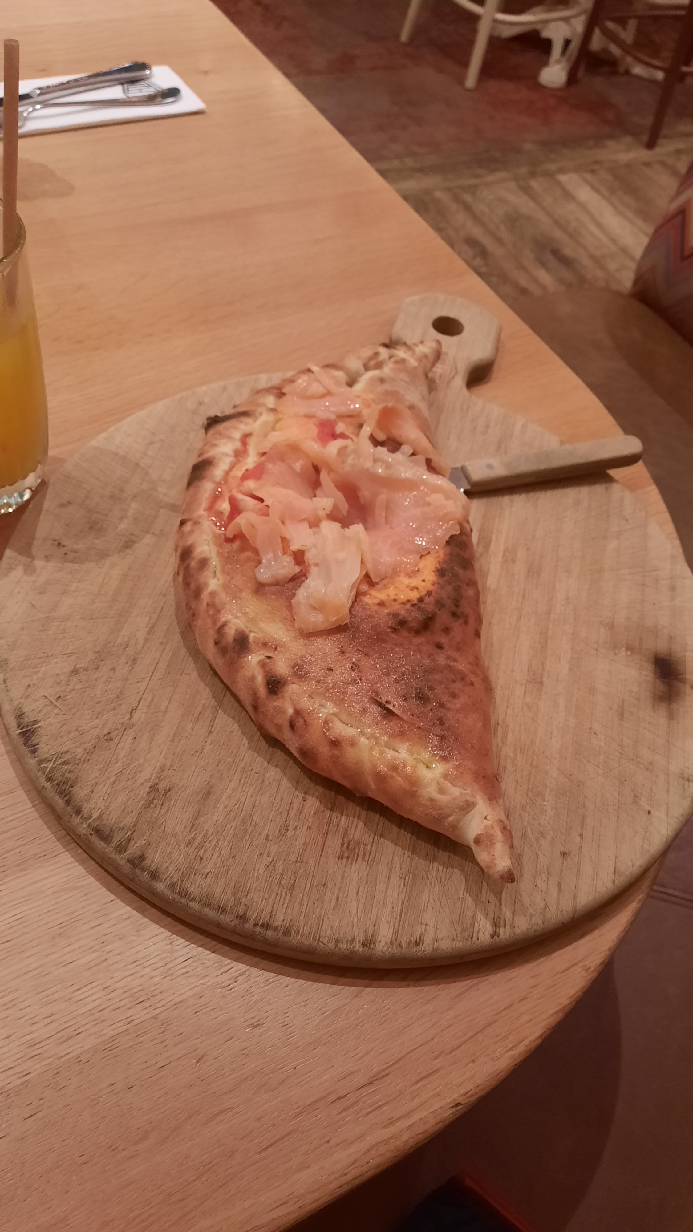 Gros problèmes d'organisation au niveau du service, on a vu des pizzas sorties du four attendre plus de 10 minutes avant d'être emmené à table. Resultat, les pizzas arrivent froides.. C'est malheureusement ce qui nous est aussi arrivé . Le serveur préférerai faire tranquillement sa mise en place pour le lendemain. Néanmoins la pizza avait bon goût. Dommage qu'il y avait très peu d'ingrédients dessus.