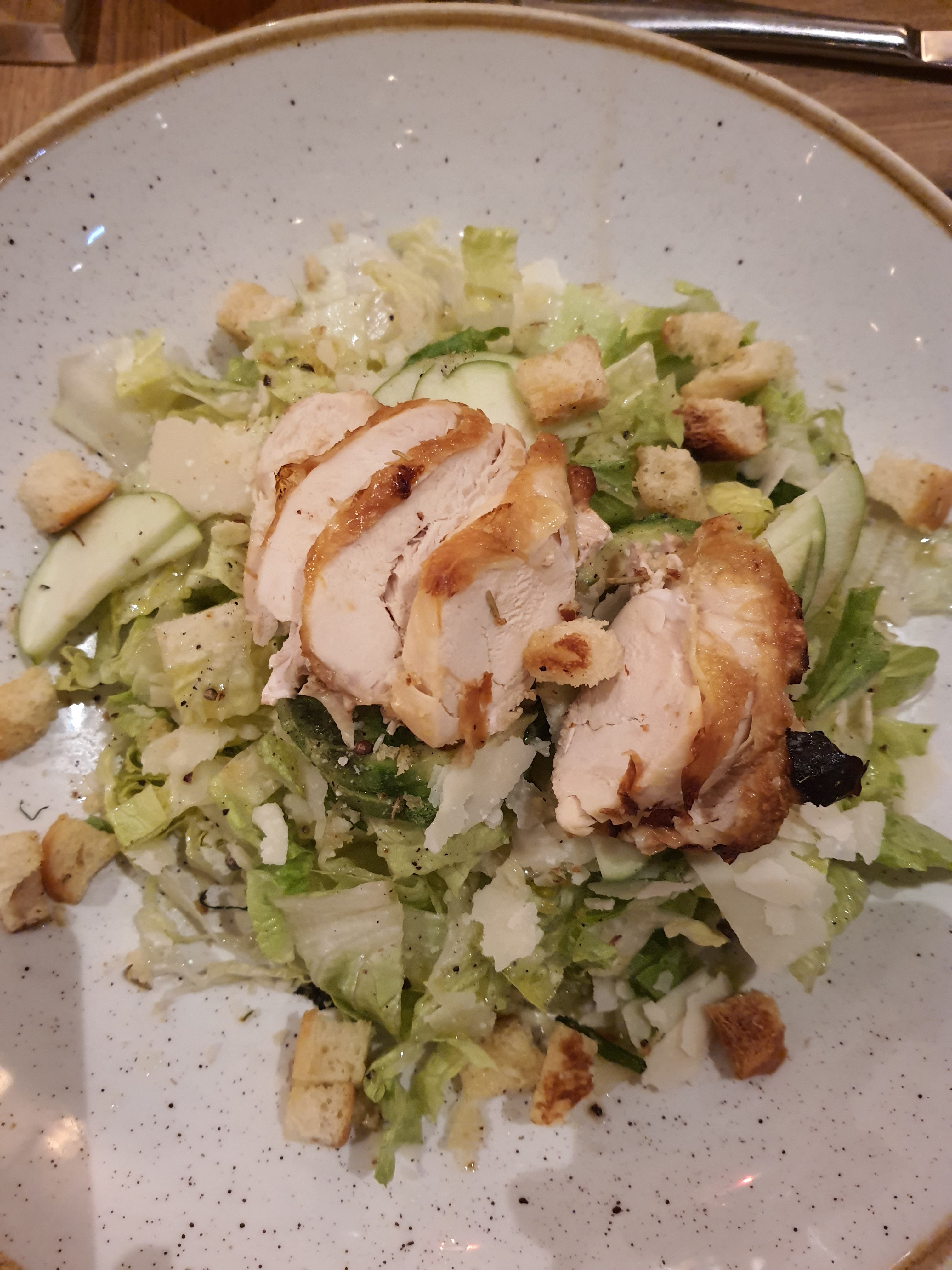 Je suis venu ici une fois auparavant. C'était bien. Nous y sommes allés ce soir et je suis désolé de dire que la nourriture n'était pas bonne. J'ai fait cuire des truffes, mais elle était froide au milieu, comme si elle était chauffée au micro-ondes. Nous n'avons pas pu joindre le personnel pour le réchauffer. Il semble y avoir un manque de personnel en général. Ma fille avait l'option végétarienne et c'était fade. L'autre repas était le veau milanaise, qui n'était pas bon du tout. C'est dommage car la décoration est bonne et nous serions restés pour le dessert mais nous avons été tellement déçus que nous venons de partir.