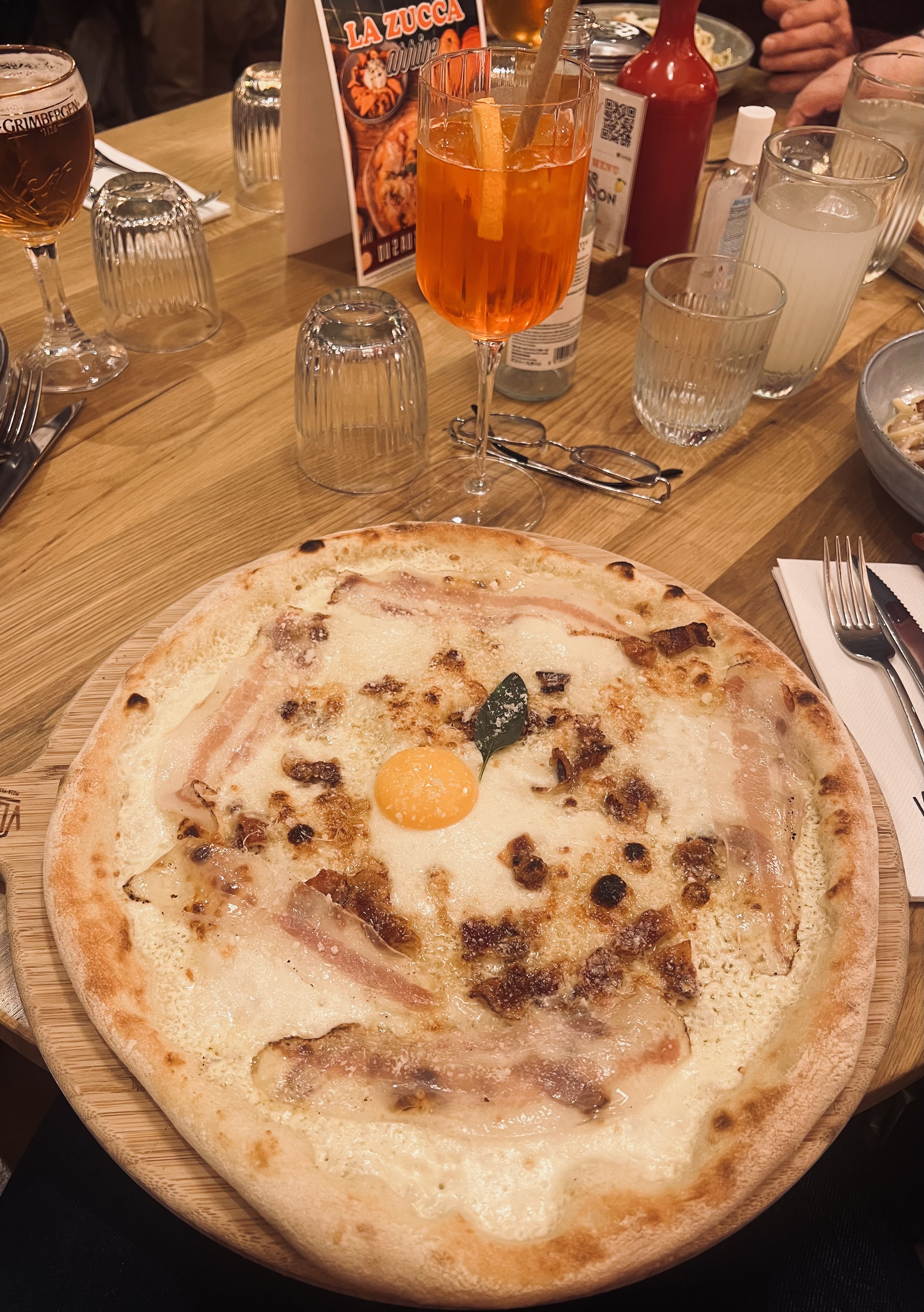 Excellente pizza tartuffo, les carbonara comme en Italie et le service très rapide et agréable. Aperol Spritz un peu léger mais bon. Très bonne première expérience.