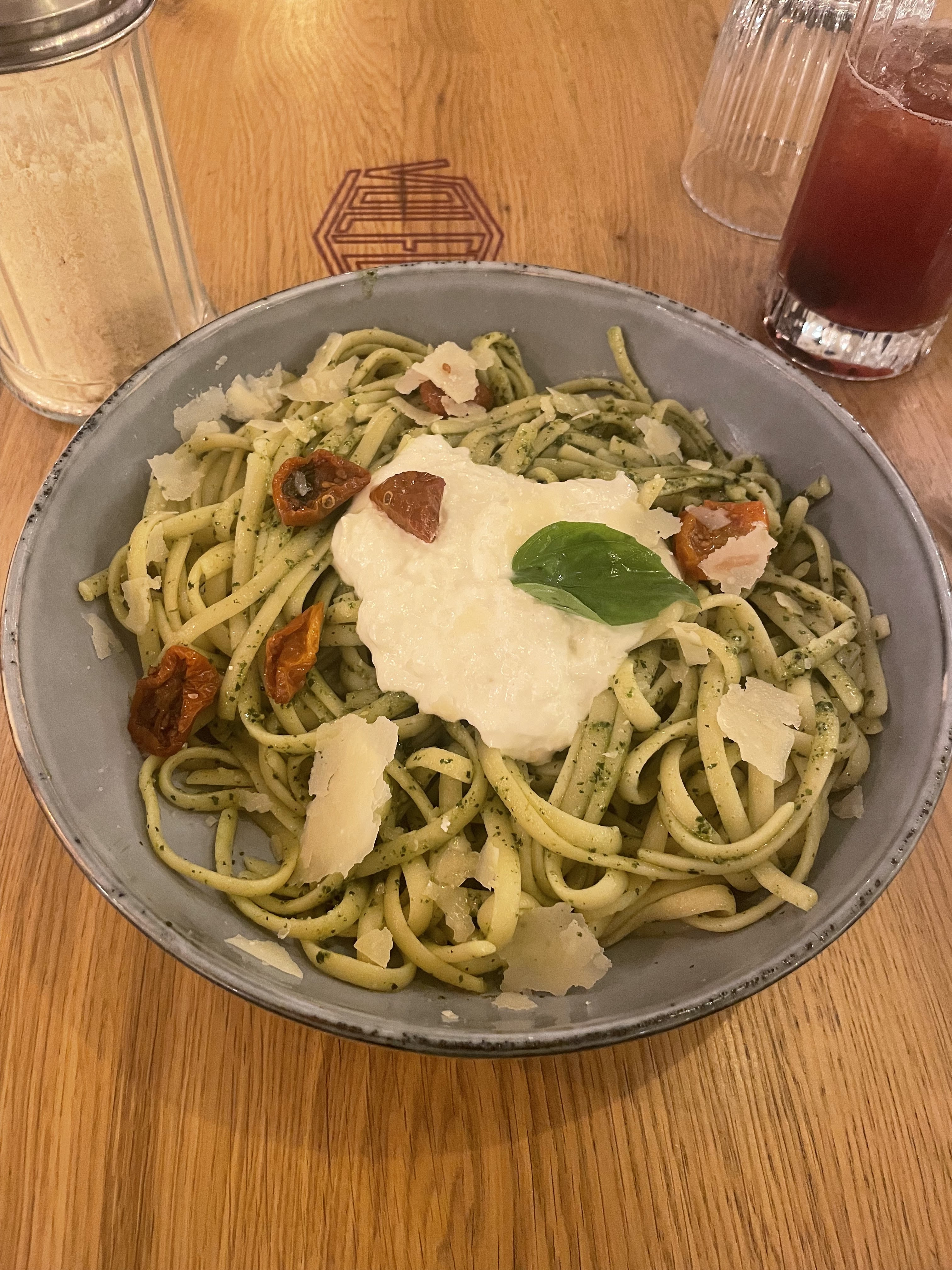 Lieu sympa! Plats de pâtes excellents! Service top 🌞 (un peu moins fan des pizzas)
