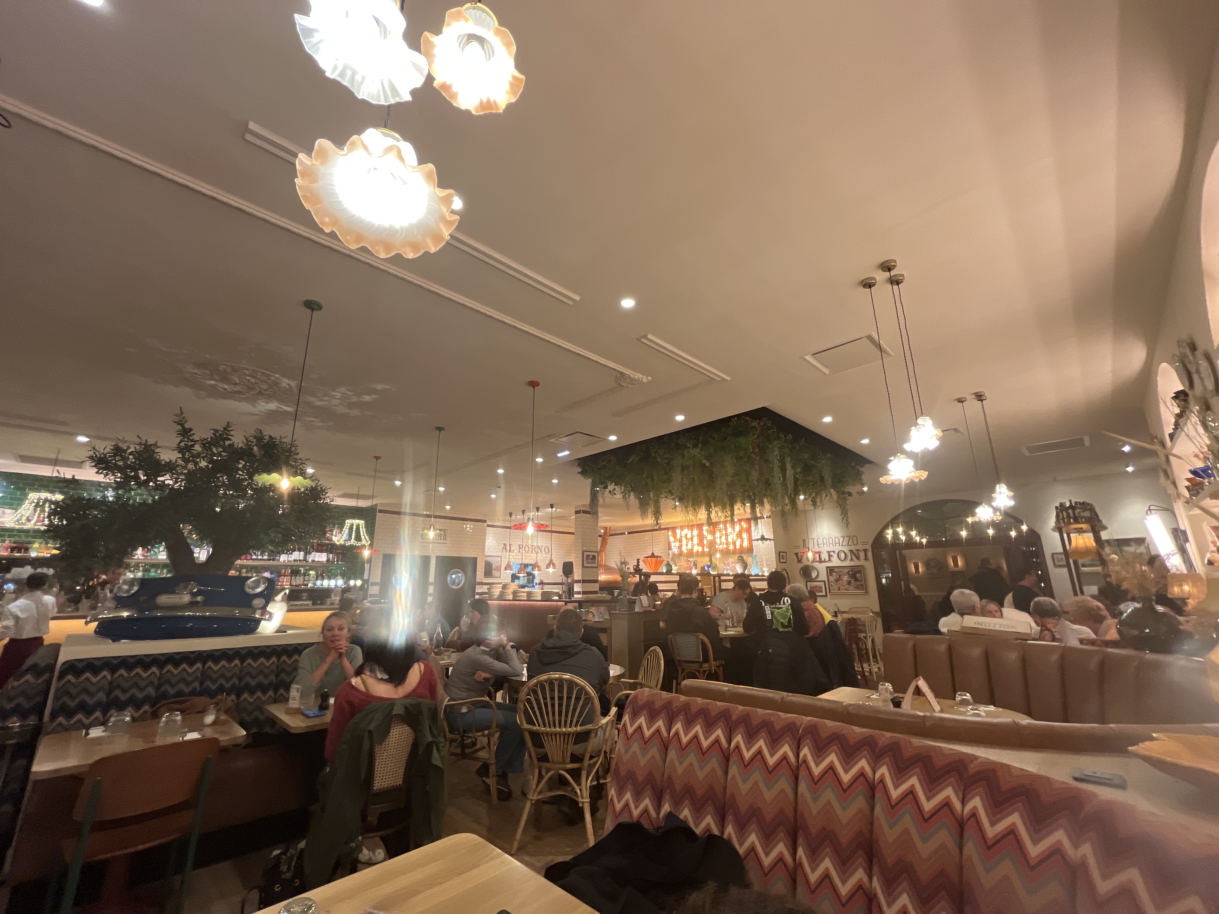Lieu convivial, très bien décoré qui vous fait voyager comme il faut, ambiance italienne garantie ! Les serveurs aux tops parlent italien entre eux et on le sourire en plus d'être efficaces ! La cuisine est parfaite, plats, planche a partager jusqu'aux desserts!! Et les cocktails sont variés et surtout n'hésitez plus l'italian Coffee (ou Irish Coffee - classique) est bien-sûr disponible même si il n'es pas sur la carte!