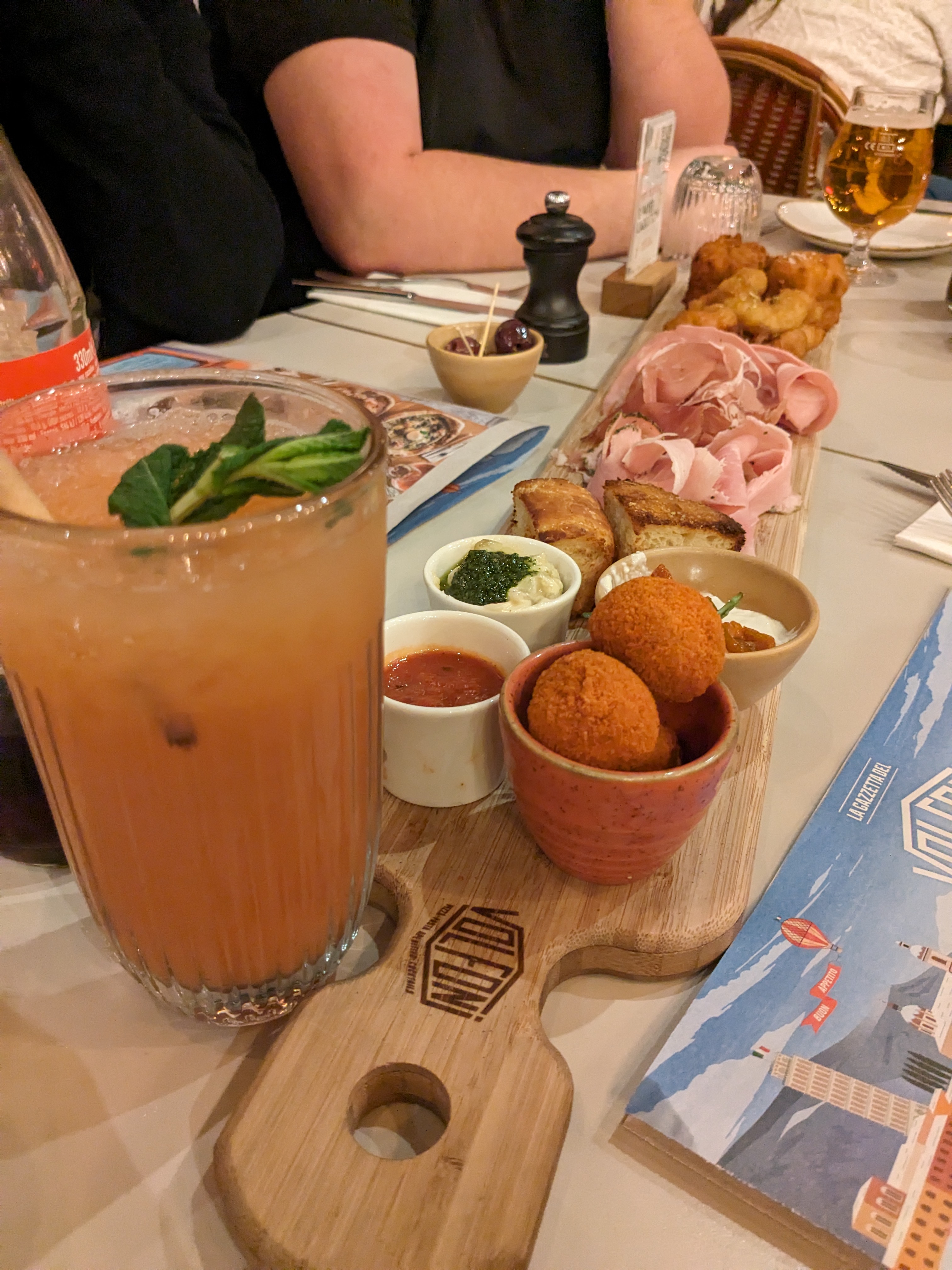 on a découvert ce nouveau resto et on n'a pas été déçus ! Fan de spritz, il y en a 5 différents à la carte. Le décor est original avec des petits coins différents. Les planches et les assiettes sont belles, copieusement garnies de produits de qualité, bien goûtus. Grazie mille aux pizzailos pour l'excellente pizza à la truffe. Ne manque qu'un fond musical et on est en Italie 😊
