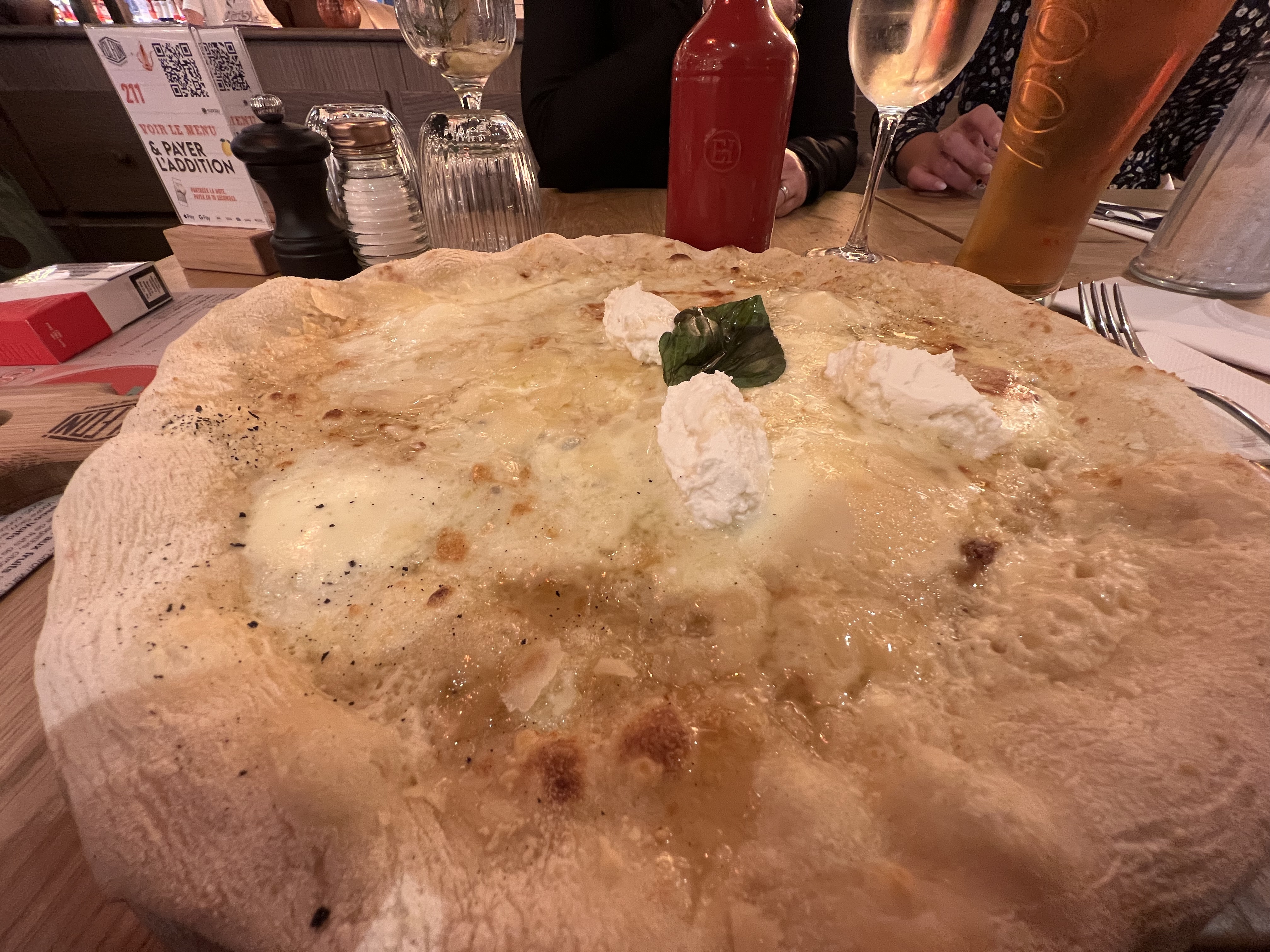 Accueil chaleureux, Serveuse souriante et sympathique qui court partout pour faire au mieux pour les clients Nous avons pris la pizza à la truffe elle était excellente et on sentait bien la truffe (ce qui n'est pas toujours évident avec ce produit 😅)