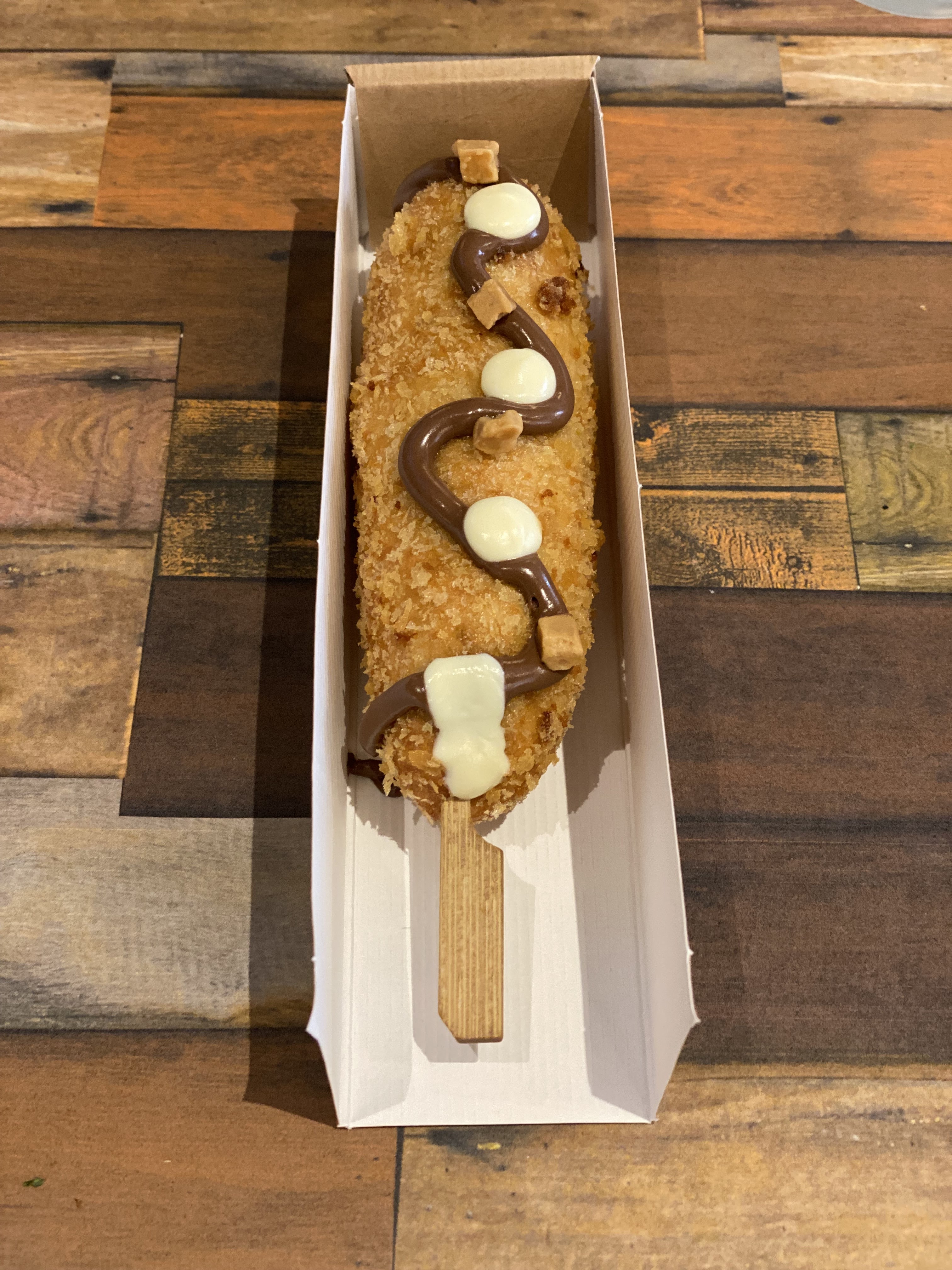 On a testé ce nouveau concept et franchement c’était une bonne découverte ! On a pris à emporter un Bulgogi et un poulet katsu qui étaient succulents (le poulet pané était tellement bon !). Le pomme et matcha cake (gâteau très consistant) a été une bonne surprise, moi qui ne connaissait pas le goût du matcha, le mélange des deux était très bon. On reviendra tester les autres plats sans hésiter. (Update) Nous y sommes revenus tester tous les corn dogs qui sont vraiment très bons, le Reuben (sandwich au pastrami qui était super bon), le Volt (mon préféré) et le Bulgogi (très très bon). C'est tellement bon et on est accueilli chaleureusement à chaque fois ! On a aussi testé pour la première fois le corn dog au chocolat et c'est un pur délice !