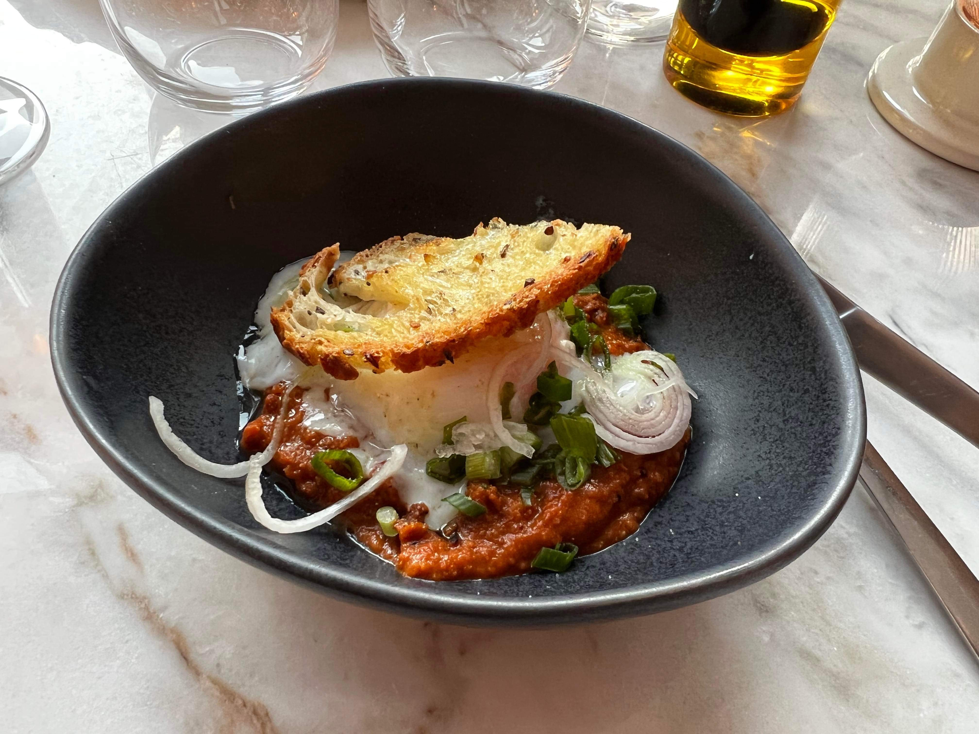 Jeune équipe dynamique , c’est un endroit chaleureux , cuisine goûteuse et beau visuel . L’œuf en entrée est top goûteux , l’agneau fond dans la bouche , les ravioles sont très bonnes , mais relevées au chorizo . Le baba est très bon ainsi que le pain perdu. Belle adresse , attention il faut réserver car quand c’est BON , c’est PLEIN .