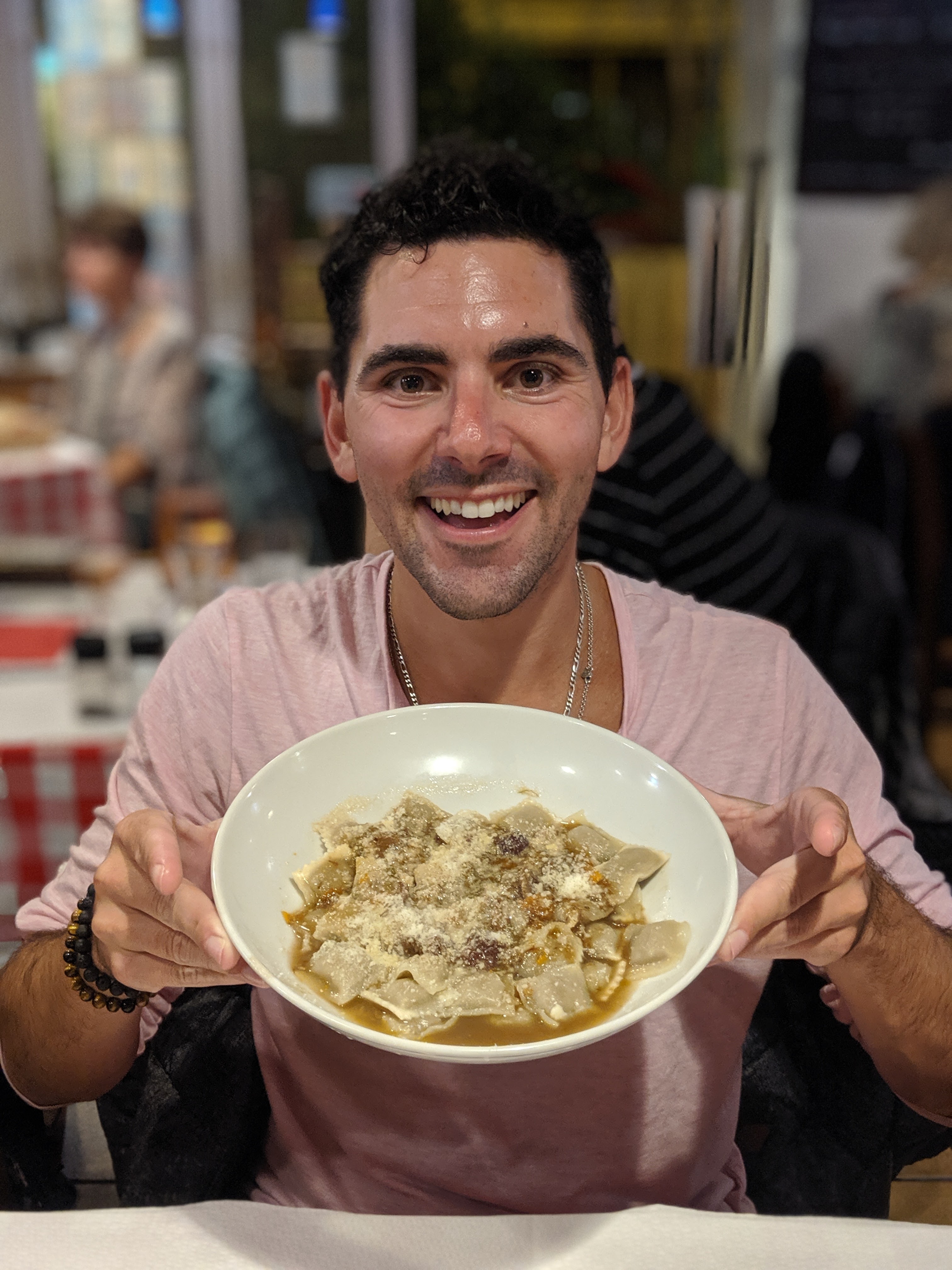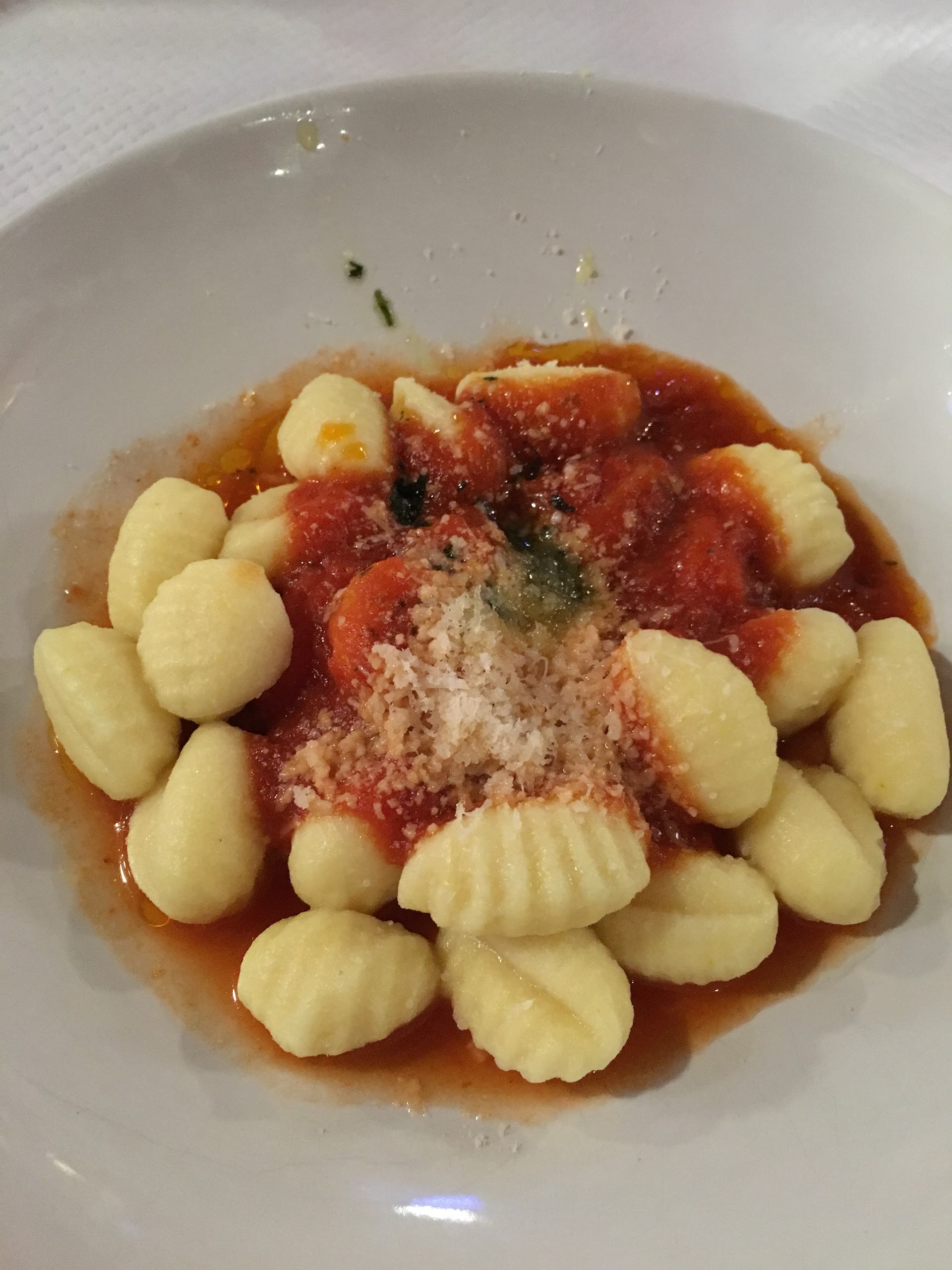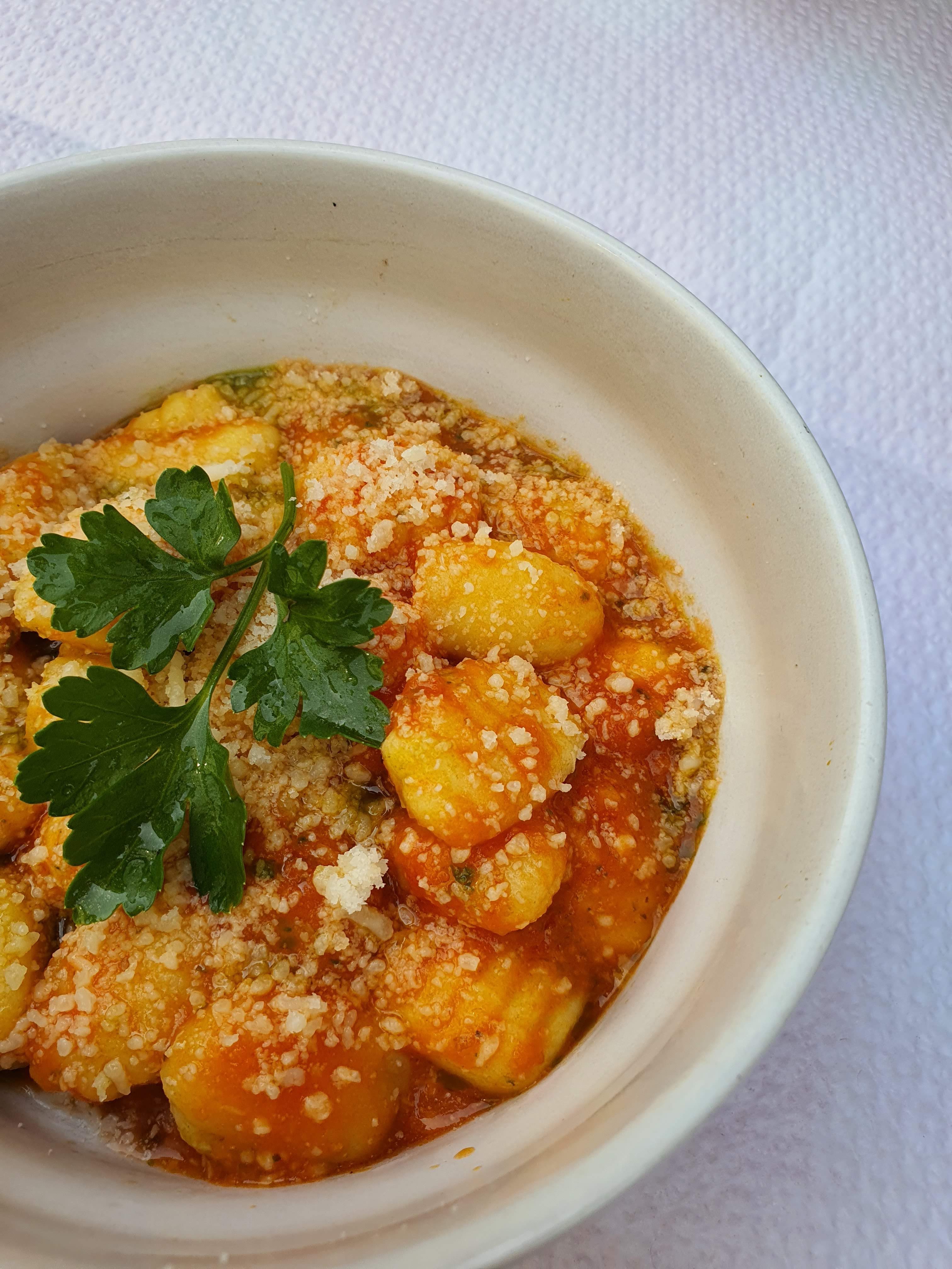 Si vous prévoyez de vous asseoir dehors, mieux vaut réserver. Sinon, vous êtes assis à l'intérieur. Heureusement, cette option ne nous a pas dérangé et avons apprécié nos Gnocchi et Salade Niçoise (servis avec du pain). Ils étaient tous les deux très délicieux. sous les entrées mais nous remplissaient. Le personnel était très gentil et sympathique.