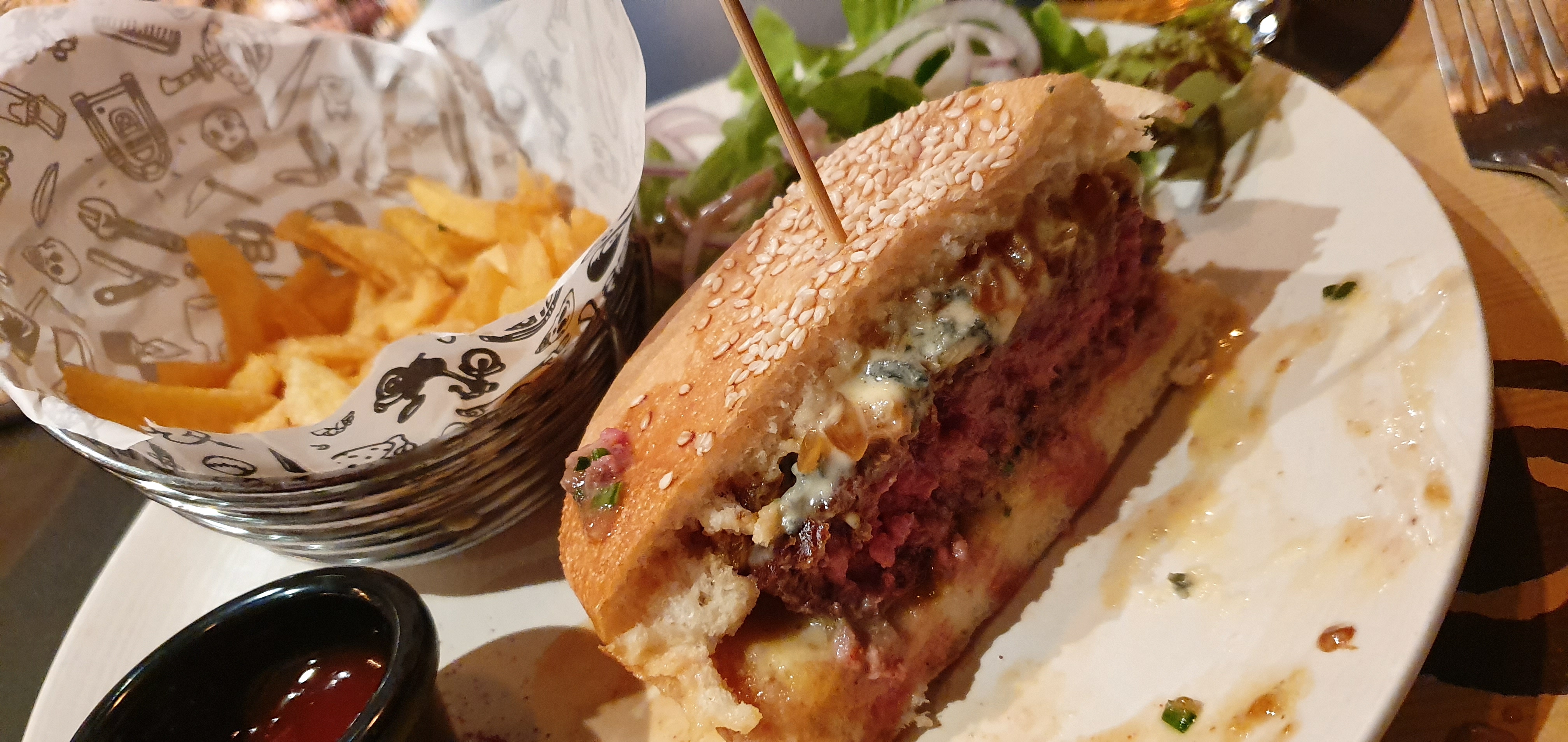 Bon repas très gourmand et copieux, parfait pour les amoureux de bons burgers ! Le cadre est super, l'accueil est très chaleureux c'était parfait !