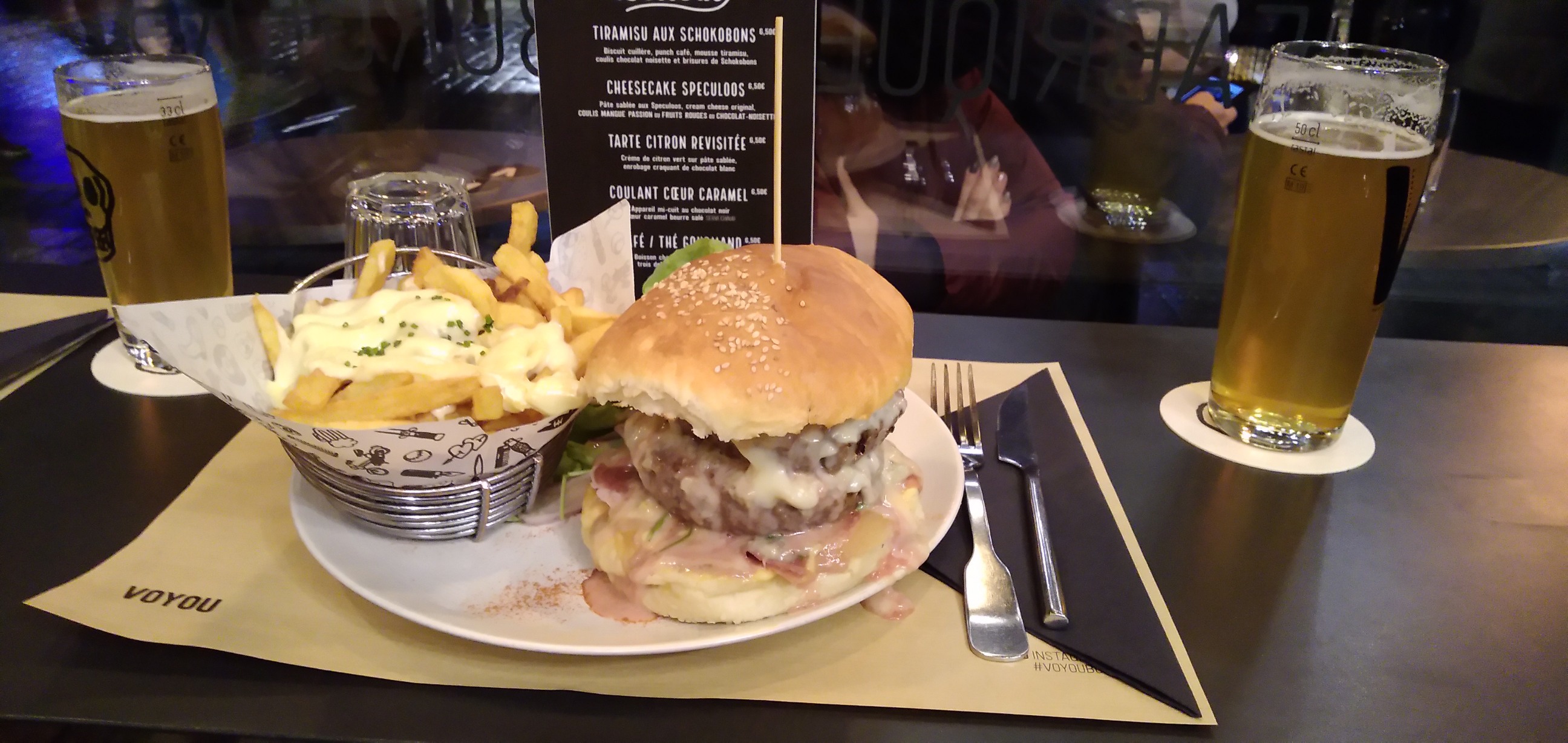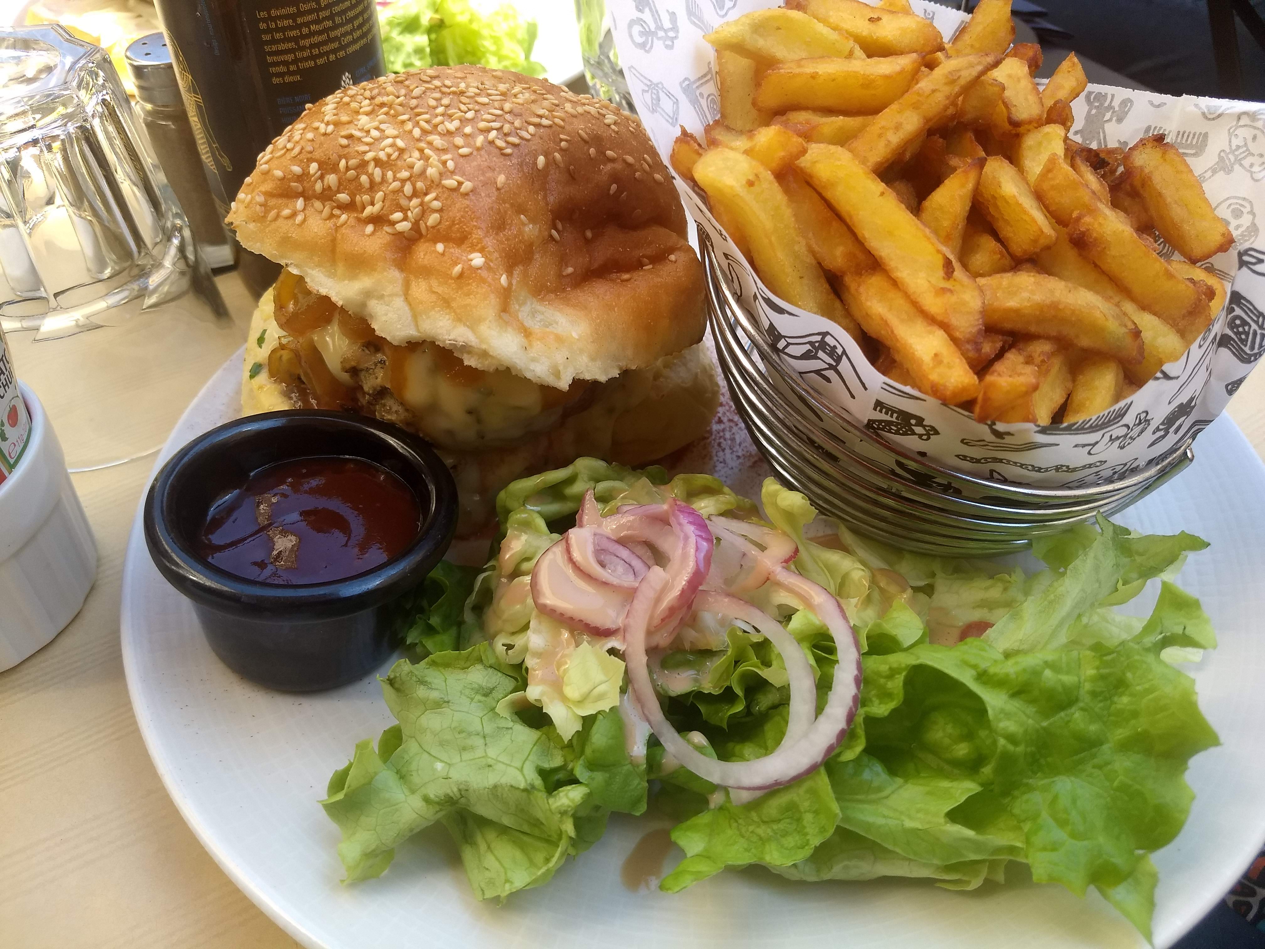 D’excellents burgers, pas suffisamment de cheddar sur les frites à mon goût. Une bonne mousse au chocolat maison. Si vous avez envie d’un bon burger alors foncez !