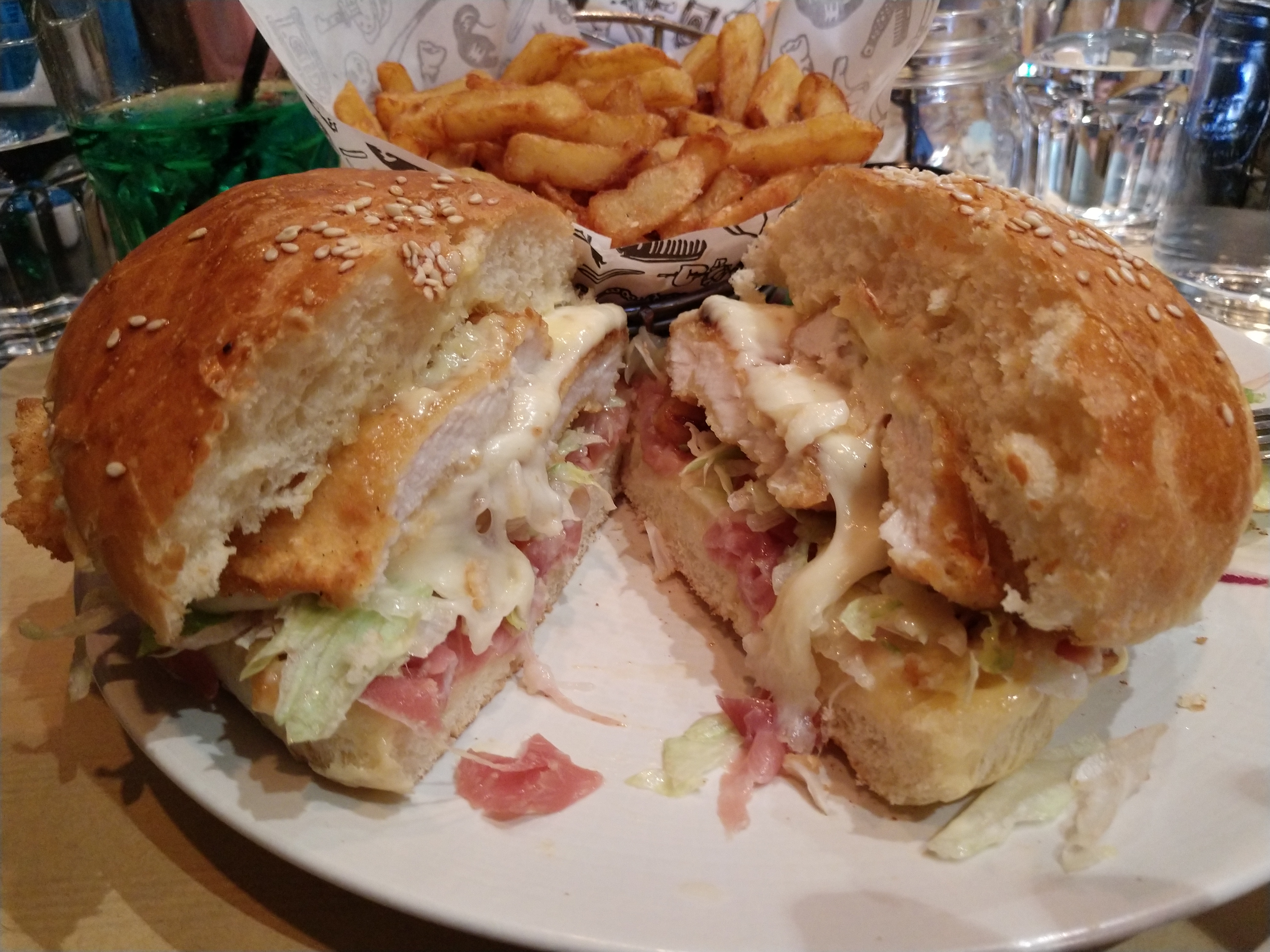 Testé hier soir avec mon compagnon, j'ai adoré mon burger avec la compoté de figue, c'était un délice. Mais celui de mon copain trop sec à cause du poulet. D'ailleurs le pain des burgers est vraiment bon ! Pour ce qui est des frites, je les ai aimées, il y en avait des molles, des croustillantes... Or celles de mon compagnon étaient trop cuites mais ça ne le dérangeait pas. Nous étions en terrasse et nous avons trouvés la table beaucoup trop étroite et les chaises bancales. Pour conclure, je trouve que nous avons payé trop cher (pratiquement 50€) alors que nous n'avons même pas pris de desserts, seulement un Arizona, un cocktail sans alcool et les deux burgers. D'ailleurs les burgers sont tous au même prix de 18,90€ et je trouve cela très dommage car il y en a avec beaucoup de garnitures et d'autres qui en ont beaucoup moins...