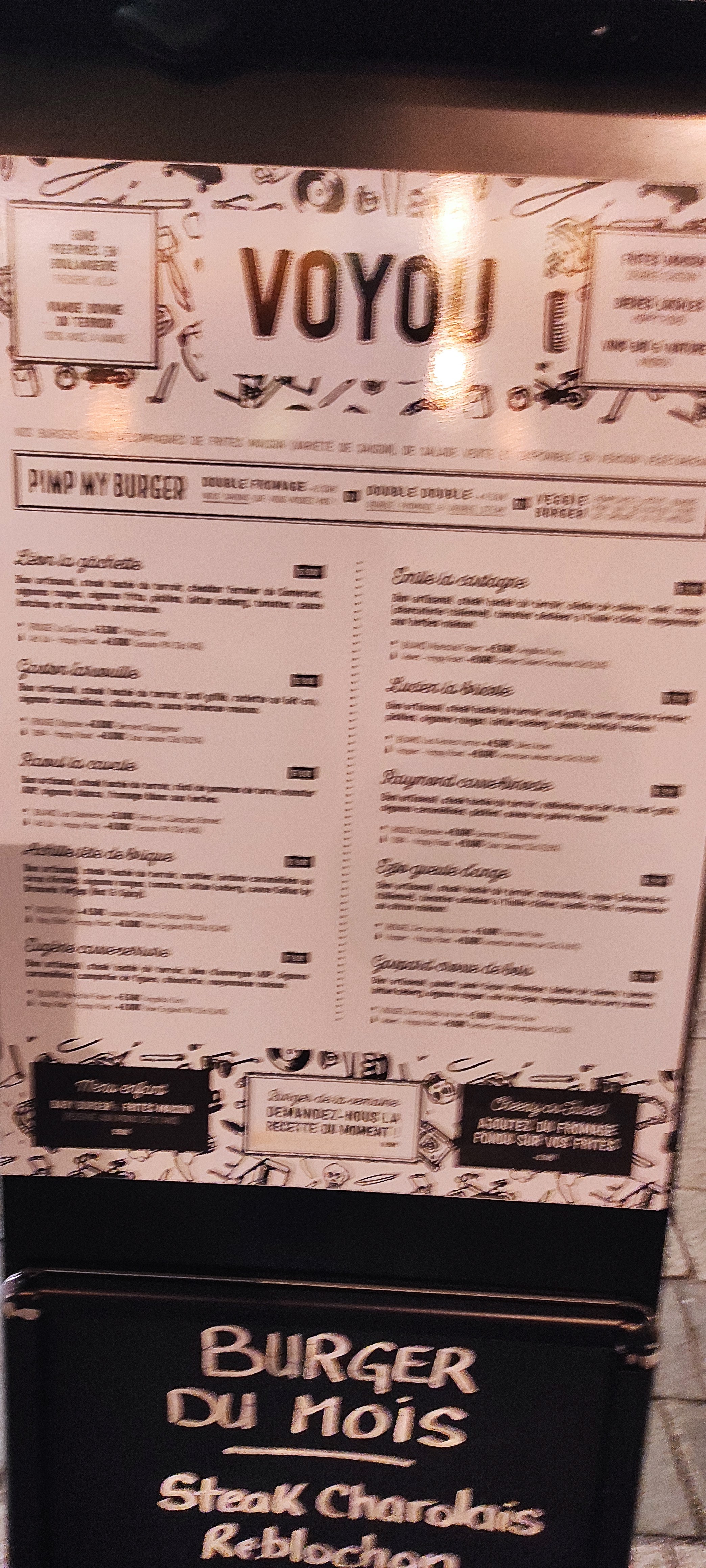 Le Voyou : Un endroit où les burgers sont exceptionnellement bons ! Si vous êtes à la recherche d'un endroit pour déguster des burgers exceptionnellement bons, alors ne cherchez pas plus loin que Le Voyou. Situé au cœur de la ville, cet établissement a acquis une réputation bien méritée pour ses créations savoureuses et uniques. J'ai eu le plaisir de manger au Voyou à de nombreuses reprises, et bien que j'aie été comblé par les saveurs des burgers à chaque visite, il y avait un seul bémol : les frites n'étaient pas à la hauteur de nos habitudes habituelles. Cependant, la serveuse nous a gentiment expliqué le problème qui sera prochainement réglé Mais parlons maintenant des stars du show : les burgers du Voyou. Leur Burger du moment, qui est régulièrement mis à jour, est tout simplement incroyable. Les chefs talentueux du Voyou sont constamment à la recherche de nouvelles combinaisons de saveurs pour surprendre leurs clients. Chaque bouchée est une explosion de goûts et d'arômes, et il est clair que seul des ingrédients de la plus haute qualité sont utilisés. Il est vrai que les prix au Voyou ne sont pas donnés, mais pour la qualité exceptionnelle de chaque burger, cela en vaut vraiment la peine. Chaque élément est soigneusement préparé, des pains moelleux et frais aux garnitures savoureuses, en passant par les viandes juteuses et savoureuses. Chaque bouchée est un véritable plaisir pour les papilles. Je recommande vivement Le Voyou à tous ceux qui recherchent une expérience culinaire unique et mémorable. Cet endroit offre une qualité irréprochable de A à Z. Même si les frites peuvent ne pas être à la hauteur de nos attentes habituelles, cela ne doit pas vous empêcher de vous aventurer dans ce paradis des burgers. Vous serez récompensé par des créations exceptionnelles et des saveurs inoubliables