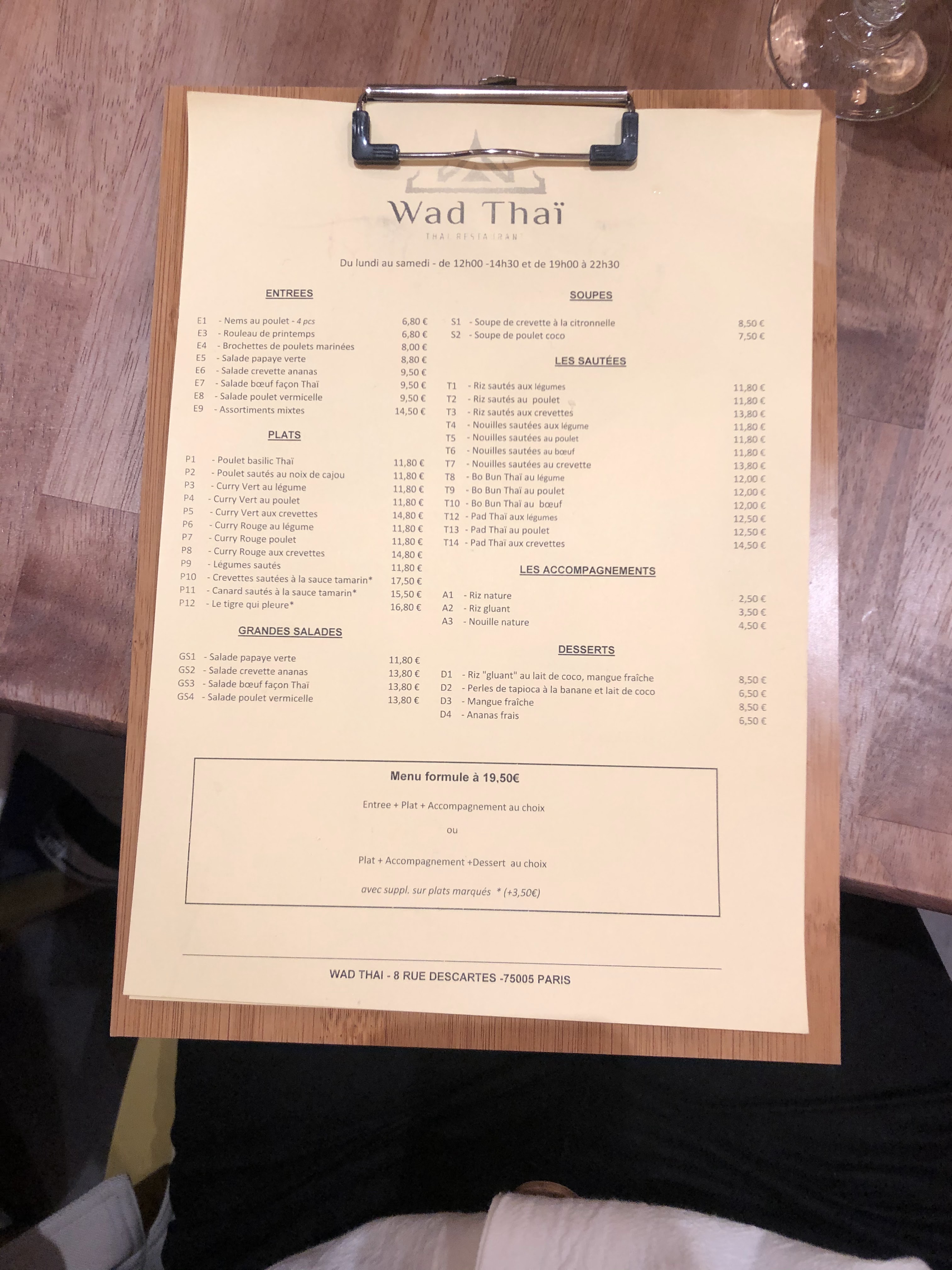 Voici toutes les informations sur le Restaurant thaï Wad Thaï qui ce trouve au 8 Rue Descartes, 75005 Paris (75). Sur cette fiche vous trouverez les photos, l'adresse, les horaires d'ouverture, le numero de téléphone et les avis clients.Vous pouvez églement rédiger un avis si vous le souhaitez en bas de page.