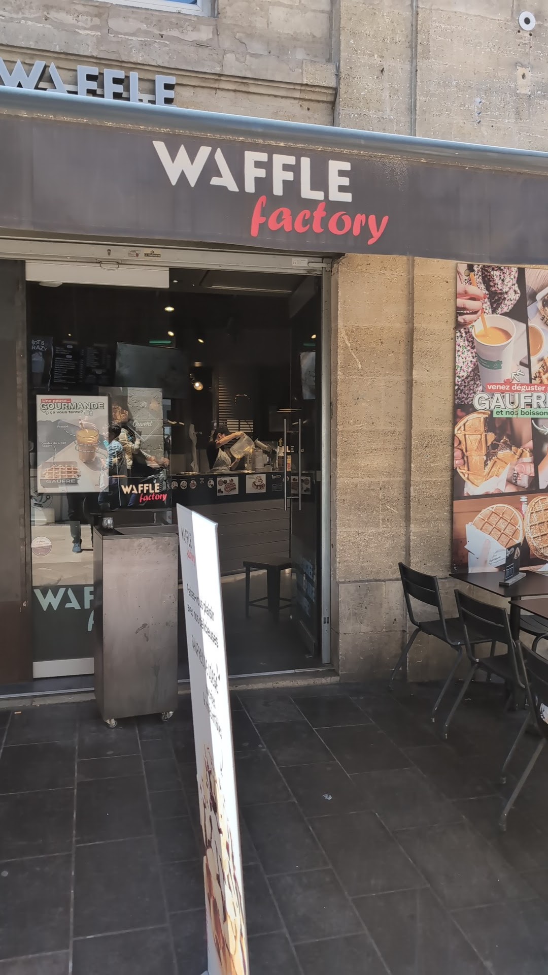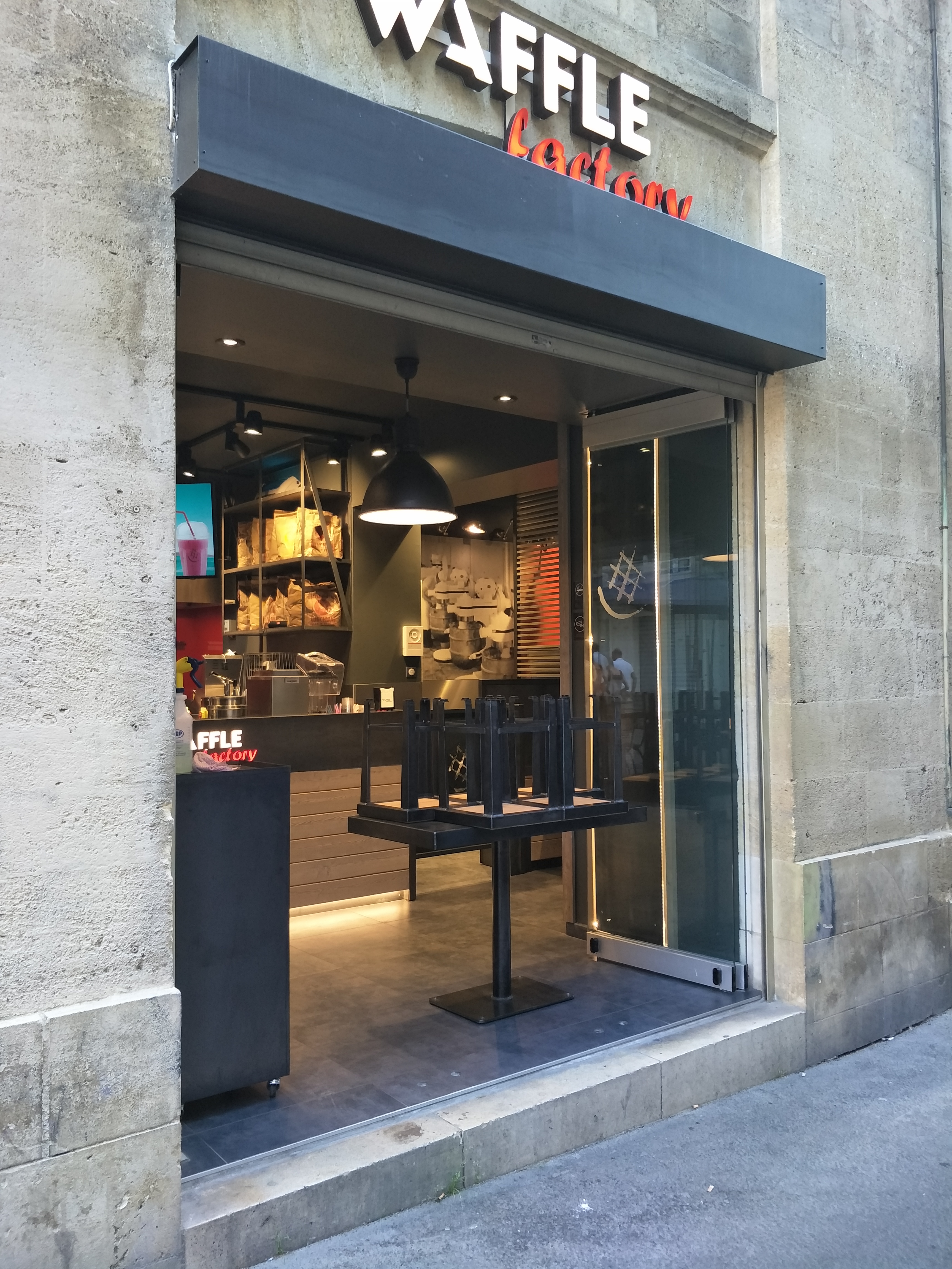 La Waffle Factory à Bordeaux est un restaurant symapthique en plein centre ville. Elle est situé dans une rue piétonne. Elle propose des formules salés ou sucrés avec ou sans boissons. Il est possible de s'installer à l'intérieur ou encore de manger sur la terrasse en extérieur. Elle propose également un service à emporter.