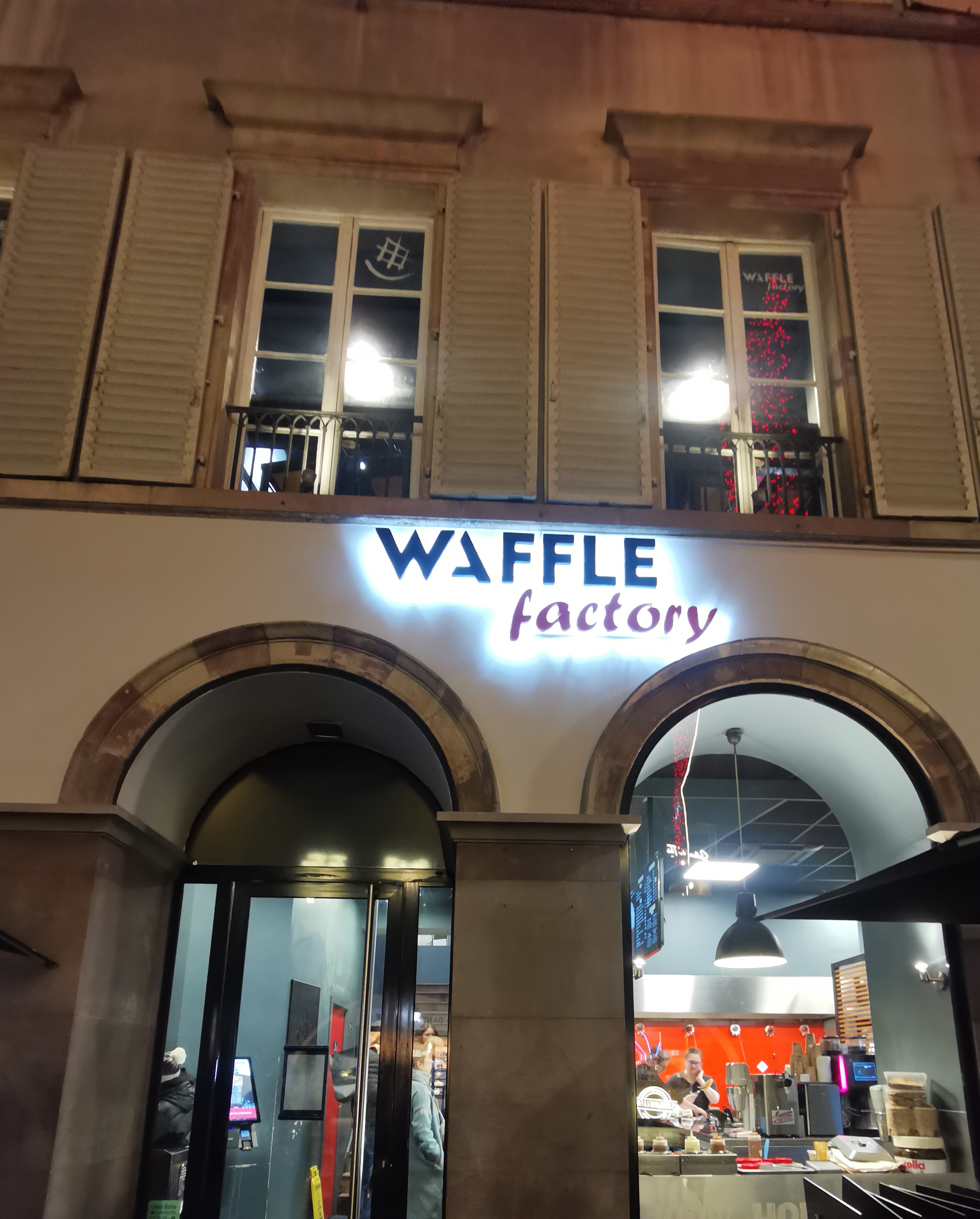 Petit restaurant de restauration rapide original pour moi car inconnu en Île de France. Un fast-food à base de gaufres liégeoises en sucré comme en salé. Très bon 😋. Bien situé en plein centre de Strasbourg, tout près de la cathédrale et de la petite France. Je recommande.