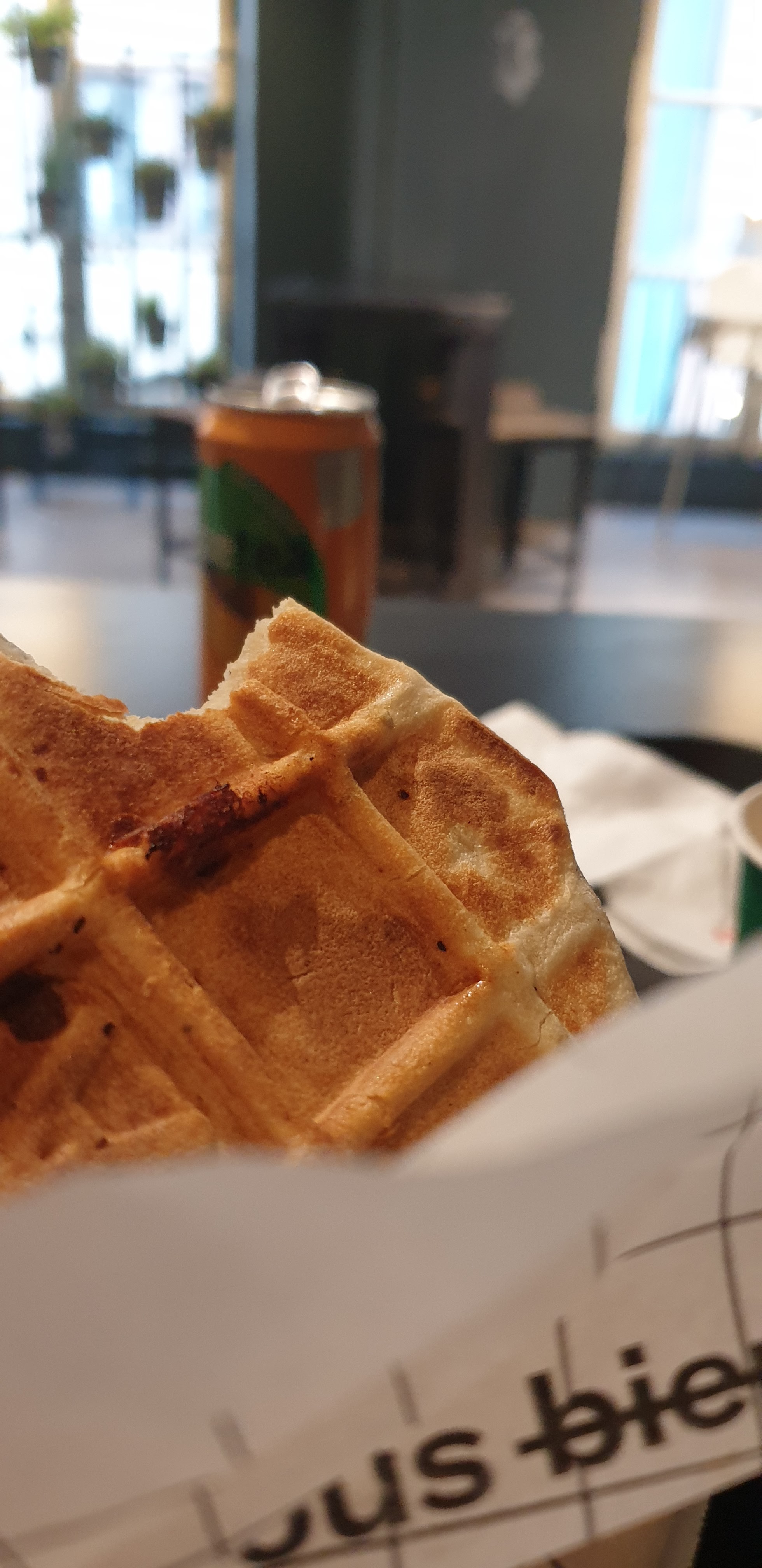 Gaufre graine elisabeth bien assaisonnée, je l'ai trouvé bonne. Par contre, la gaufre sucrée posée directement sur le plateau plastique et le système du boîtier bibip qui passe d'une client à l'autre quand le plat est prêt, j'ai trouvé cela très moyen en période de covid. D'ailleurs, j'ai fini par descendre car il n'a pas sonné.