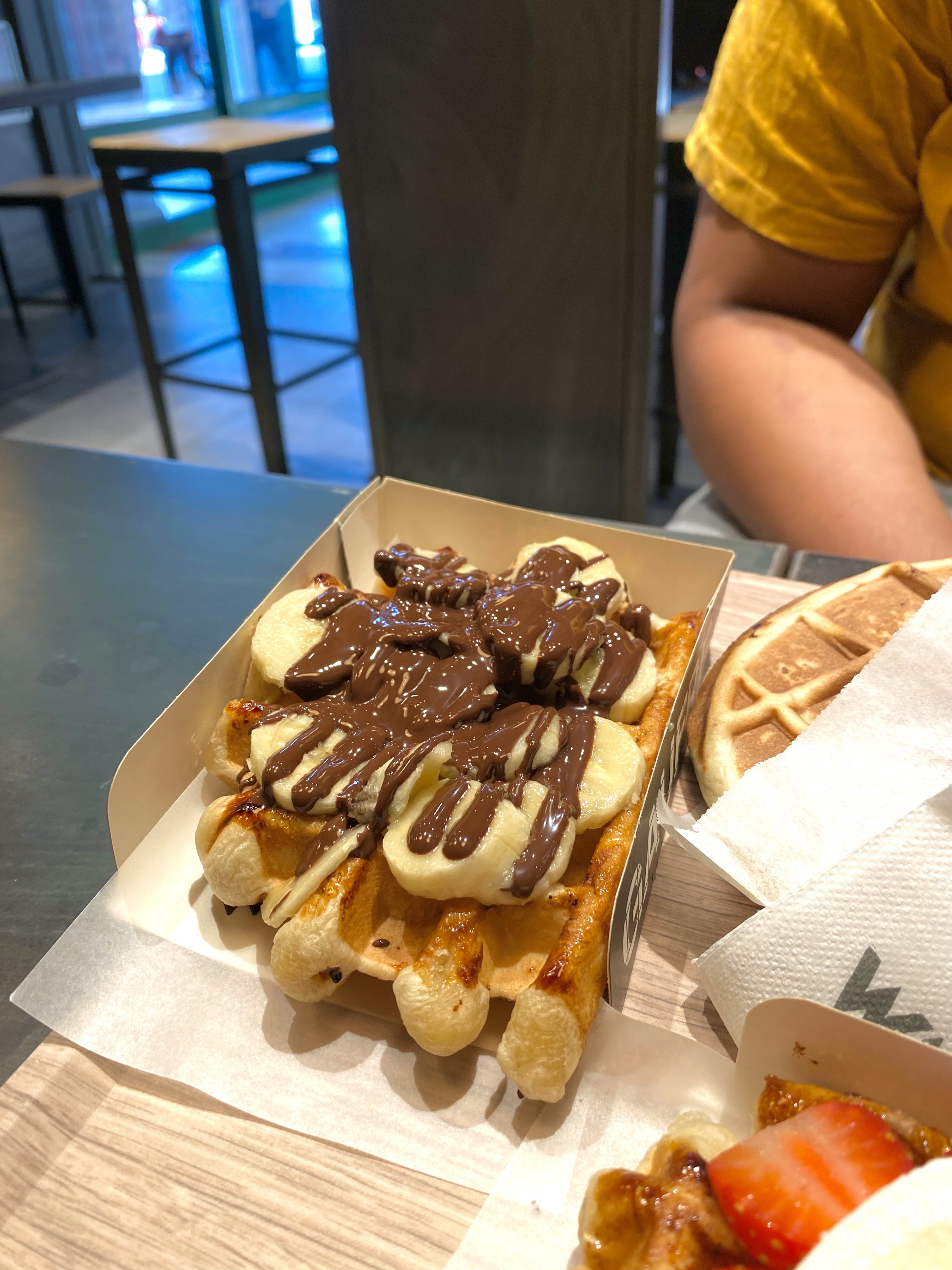 Découverte très agréable ! Un petit plaisir lorsqu'on vient de finir nos courses. Le concept de pouvoir choisir tout du long pour ses gaufres est top et les affiches sont très clairs et modernes. Les frappés sont vraiment bons et le rapport qualité/prix est très bien je trouve. On va renouveler !