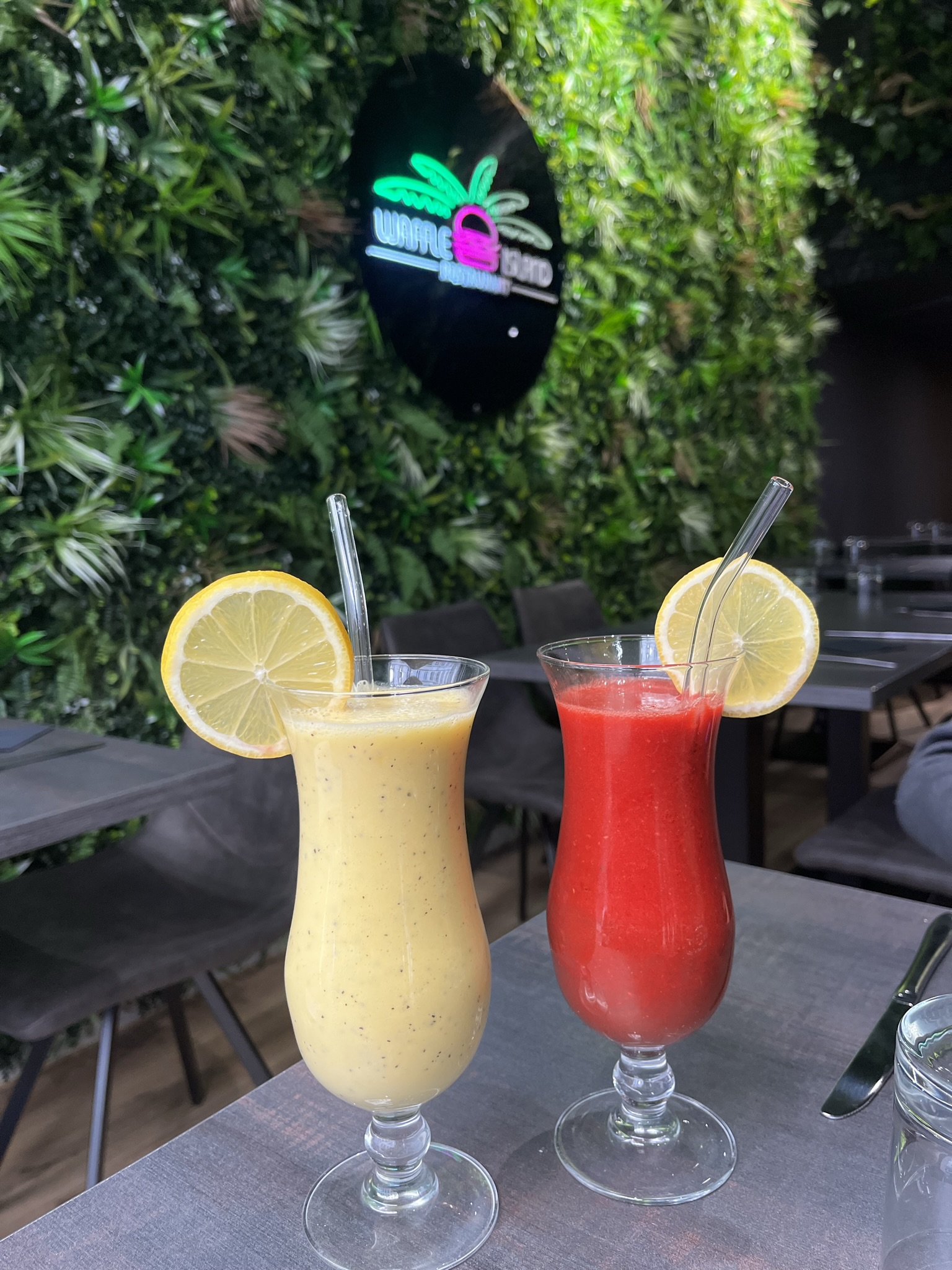 Une superbe expérience dans l'incroyable décor tropical de Waffle Island. Les gauffres sont belles, moelleuses et généreuses. Nous avons testé les Waffle burgers Méditerranéen avec saumon fumé, purée d'avocats et oeuf poché, et le Jamaïcain au poulet crispy, double cheddar, bananes plantain et sauce verte. Un délice, je recommande!