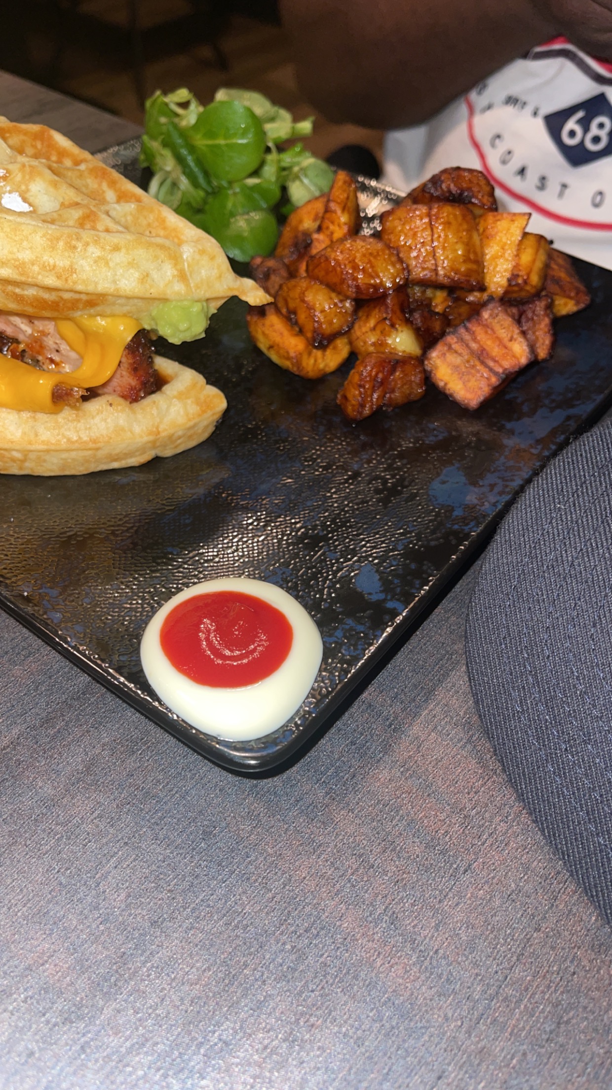 Concept original qui vaut le coup d’être testé. La gaufre au guacamole et poulet frit est très bonne, la texture du poulet se marie très bien avec la gaufre qui semble être de qualité. La portion de frite et la quantité de cocktail sont un peu légers mais bons. Un peu d’attente pour être placés car la salle n’est pas très grande.