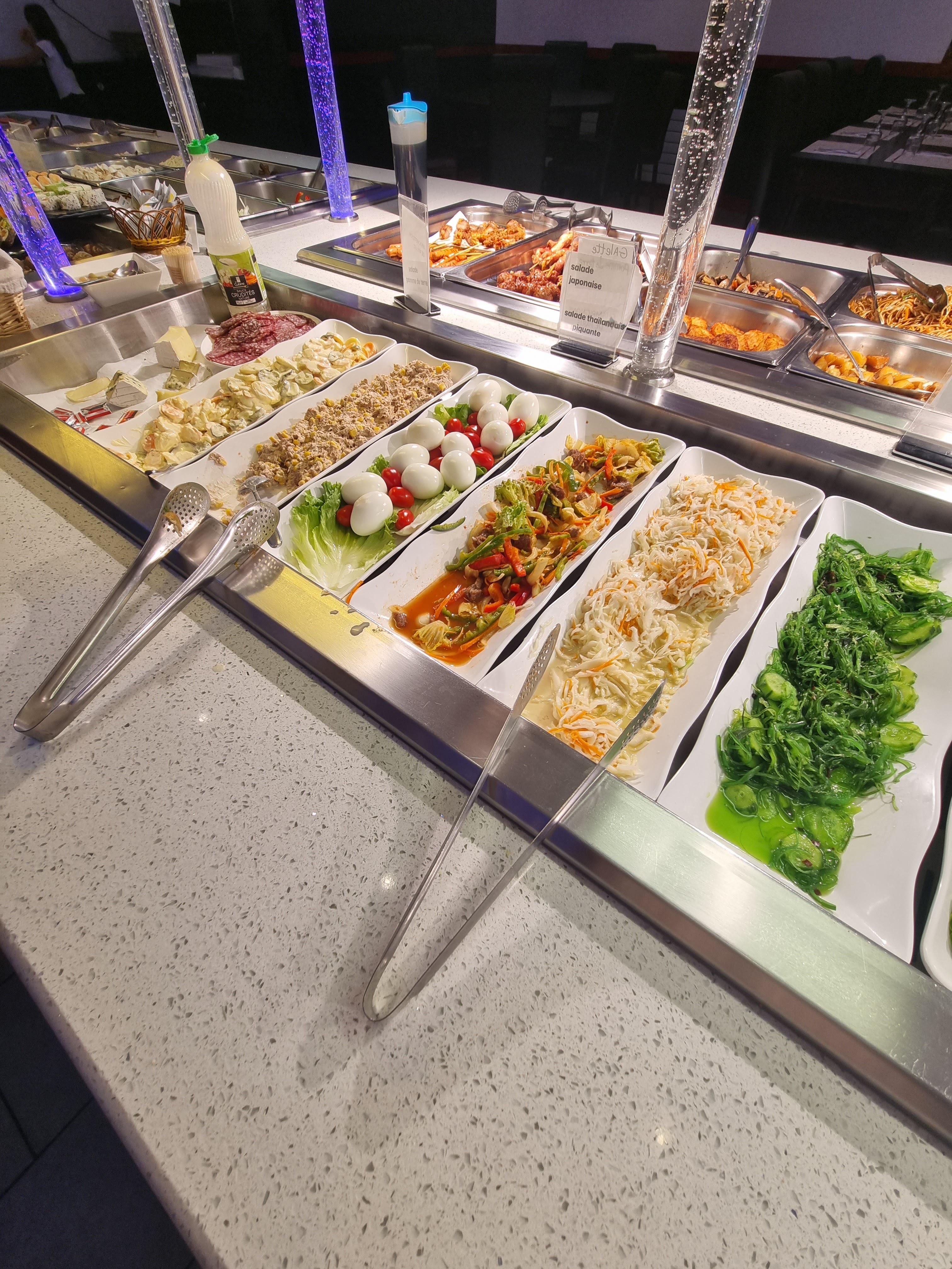 Bon accueil, bien qu'endroit un peu glauque, prix raisonables, quelques bons plats (nems, brochettes yakitori de poulet, crevettes au saté). Par contre le soir ou nous sommes venis les plats étaient un peu vides; lorsqu'on va dans un buffet libre on s'attends un peu a voir les plats bien remplis. Desserts tres moyens (mini portions de pasteque, chamallows, cookies tout juste sortis de leur boîte...