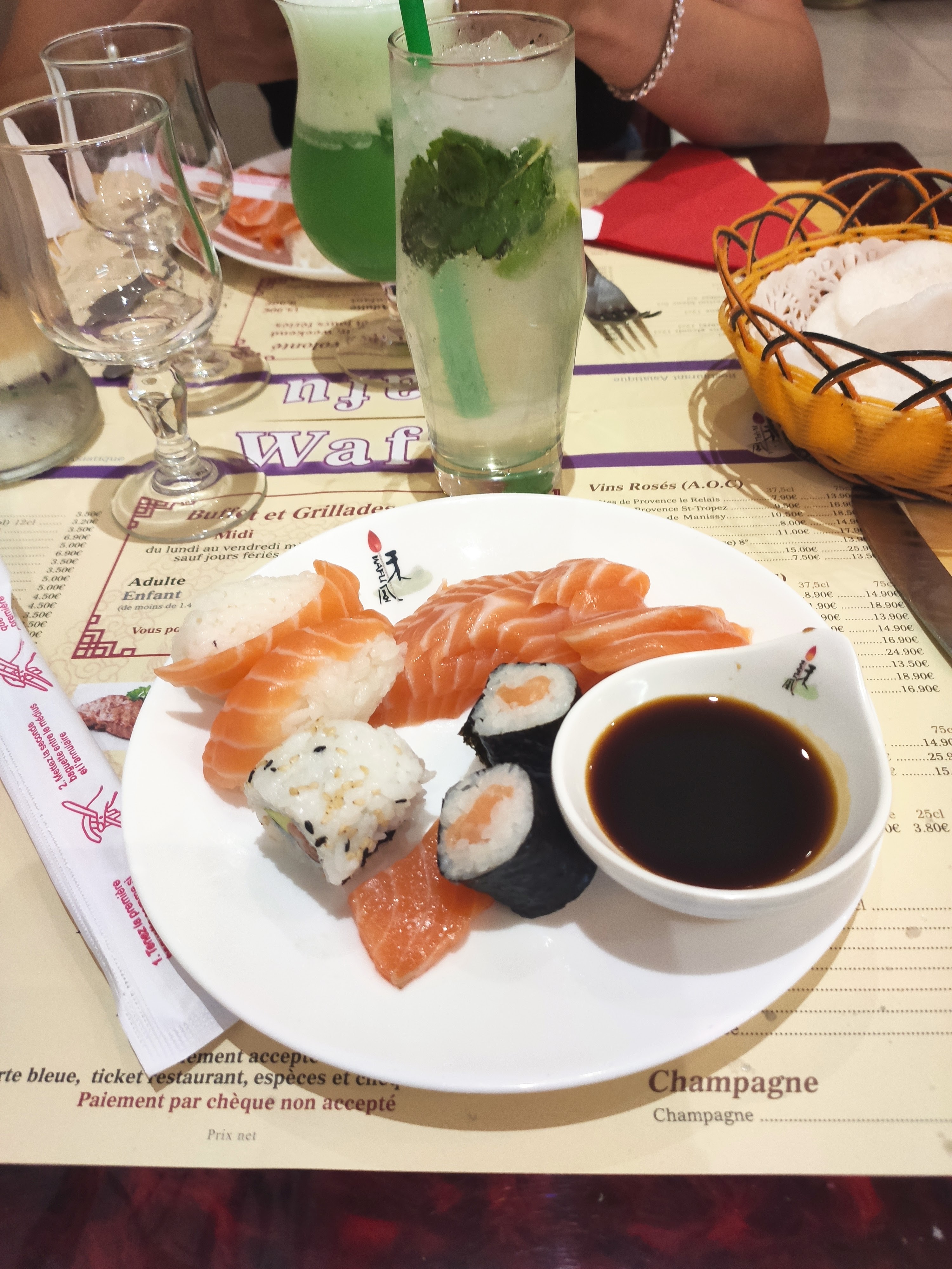 Correct dans l'ensemble. De bons sushis. Le personnel débarrasse les assiettes alors que vous n'avez pas terminé, et à peine eu le temps de faire manger les enfants, c'est un peu limite...