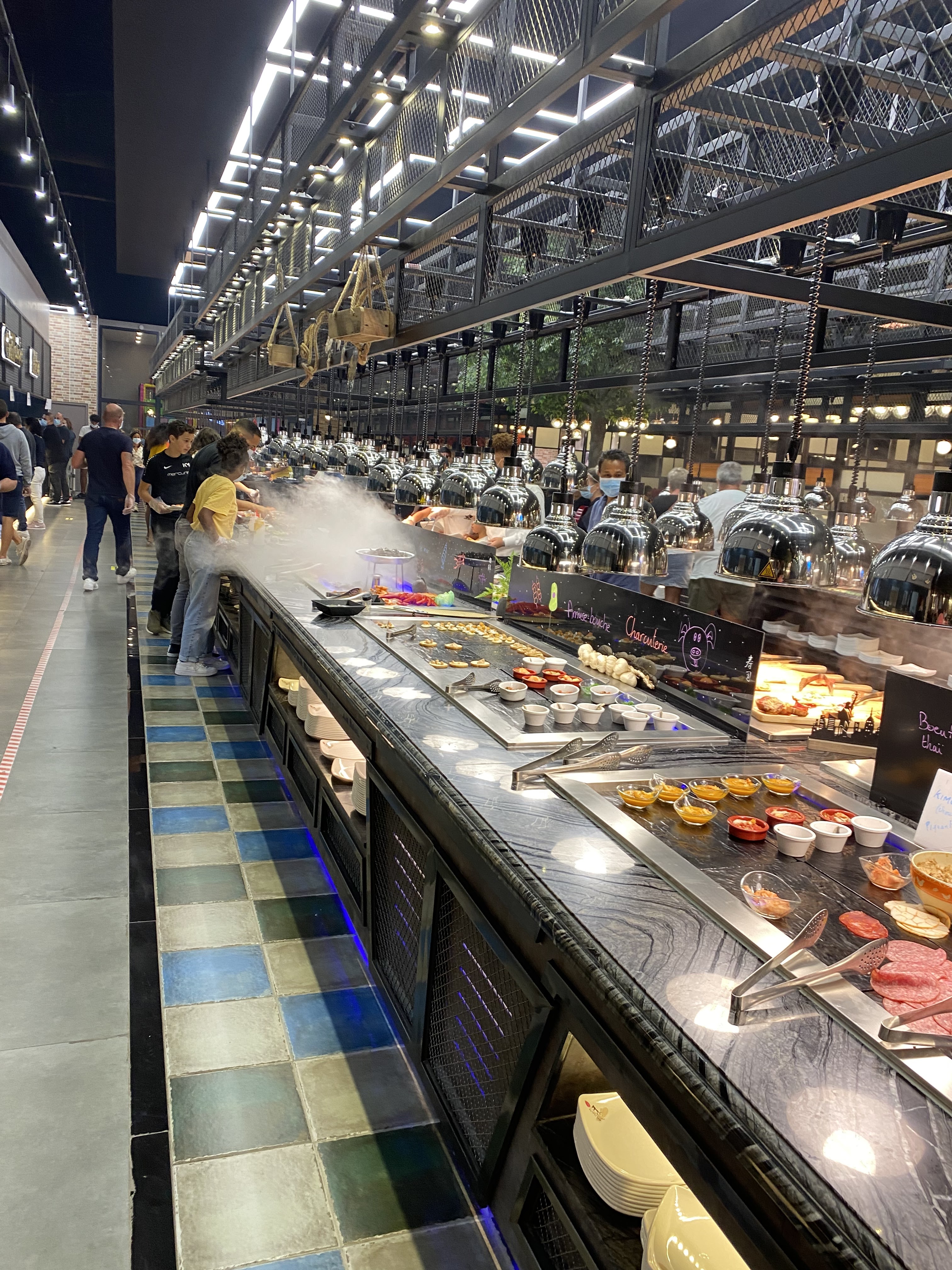 Concept commun chez les asiatiques... Maxi buffets où vous trouvez de tout. Jusqu'aux bombons en service libre...les enfants adorent, donc les parents reviennent..malin !