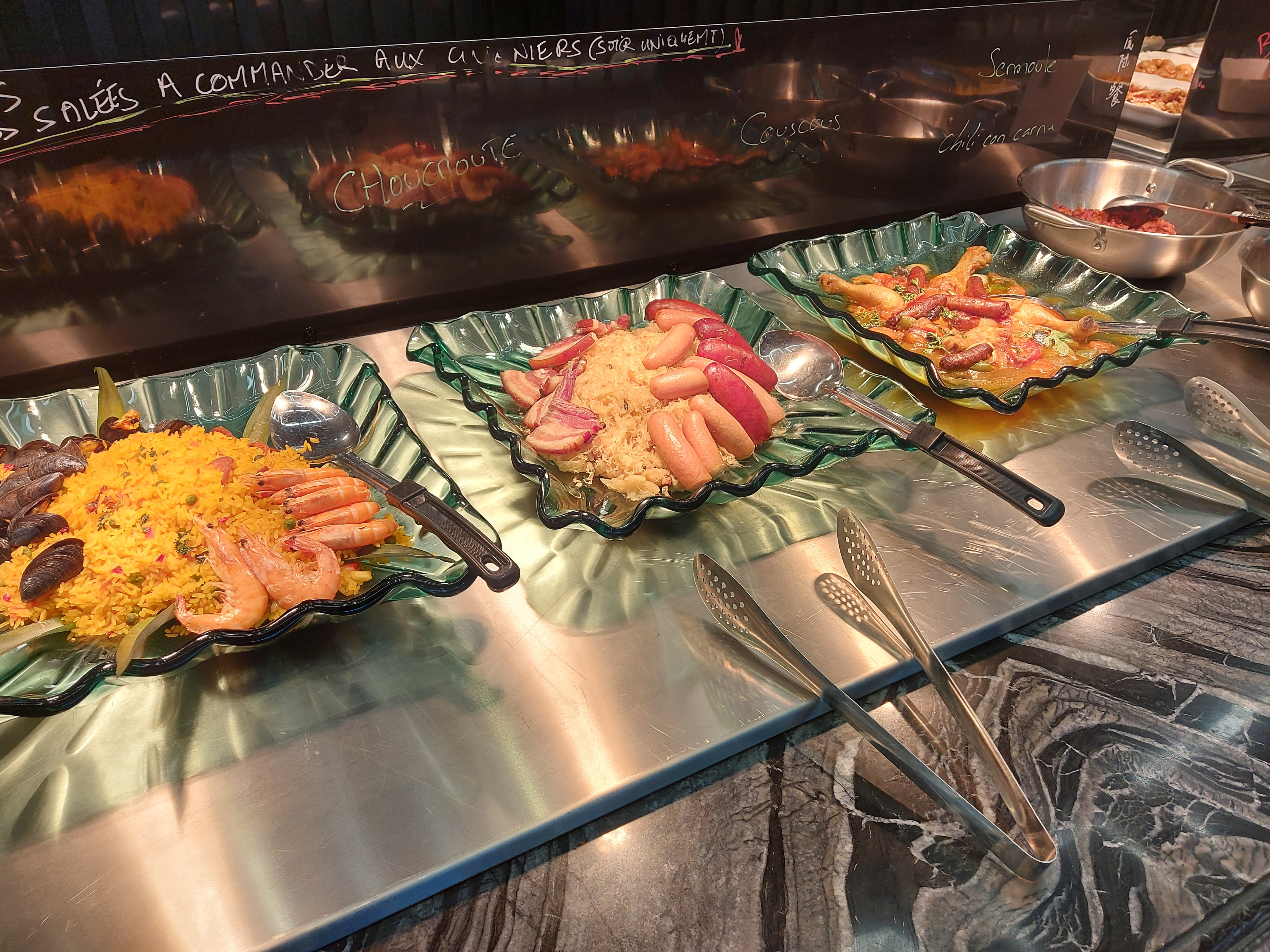 Pas assez de surveillance au niveau des plats. Les enfants se servent sans surveillance dans les bonbons et les glaces. A 21h il n'y avait déjà plus de poisson en sauce et cela n'a pas été changé. Fallait il manger les arrêtes. Les tables ne sont pas correctement nettoyées après chaque famille. Et c'est cher 23€ sans la boisson pour des plats même pas elaborés