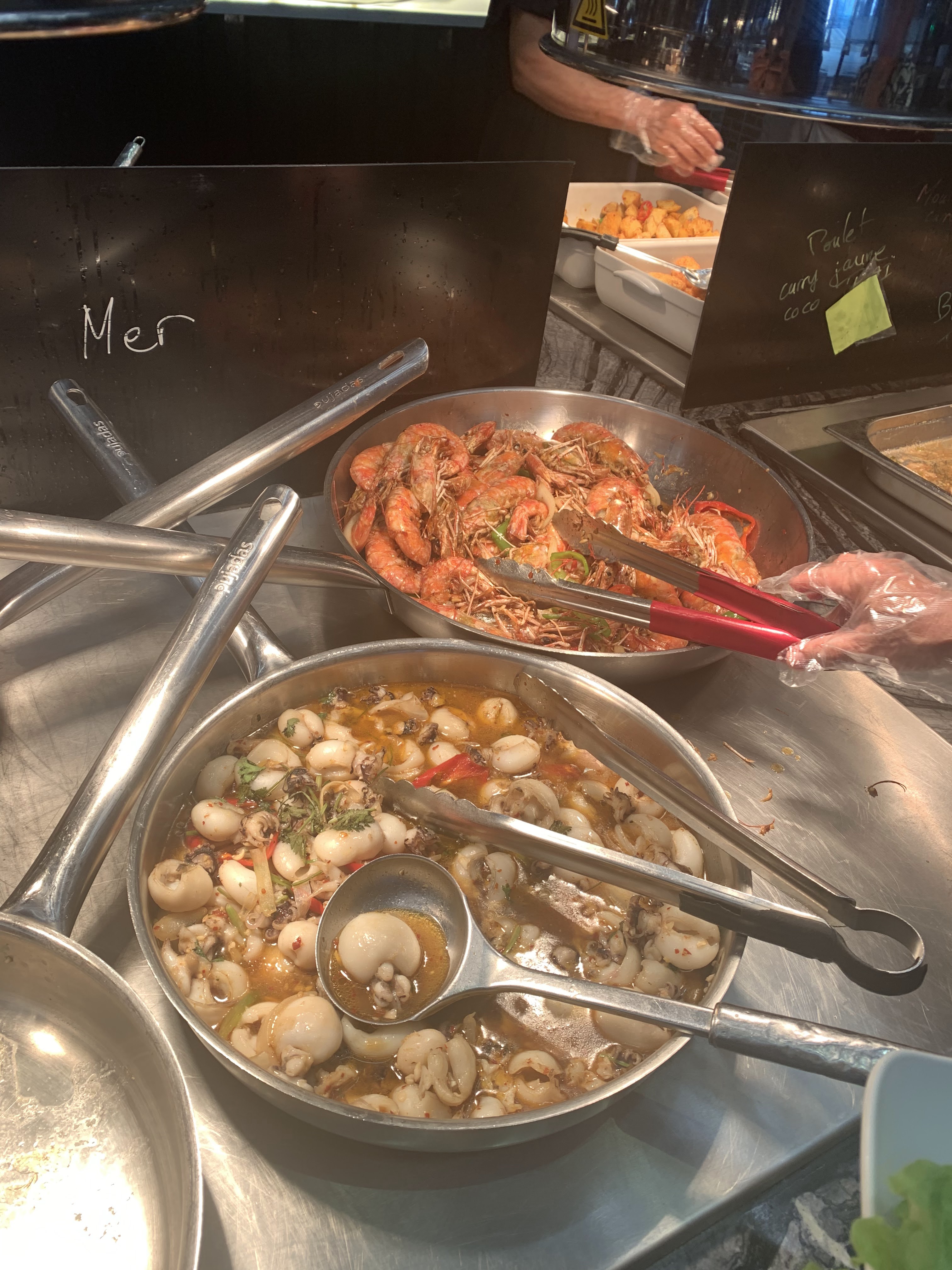 C'est impressionnant quand on y rentre, vu la taille du buffet. C'est varié, frais et on y mange bien. Beaucoup de monde!