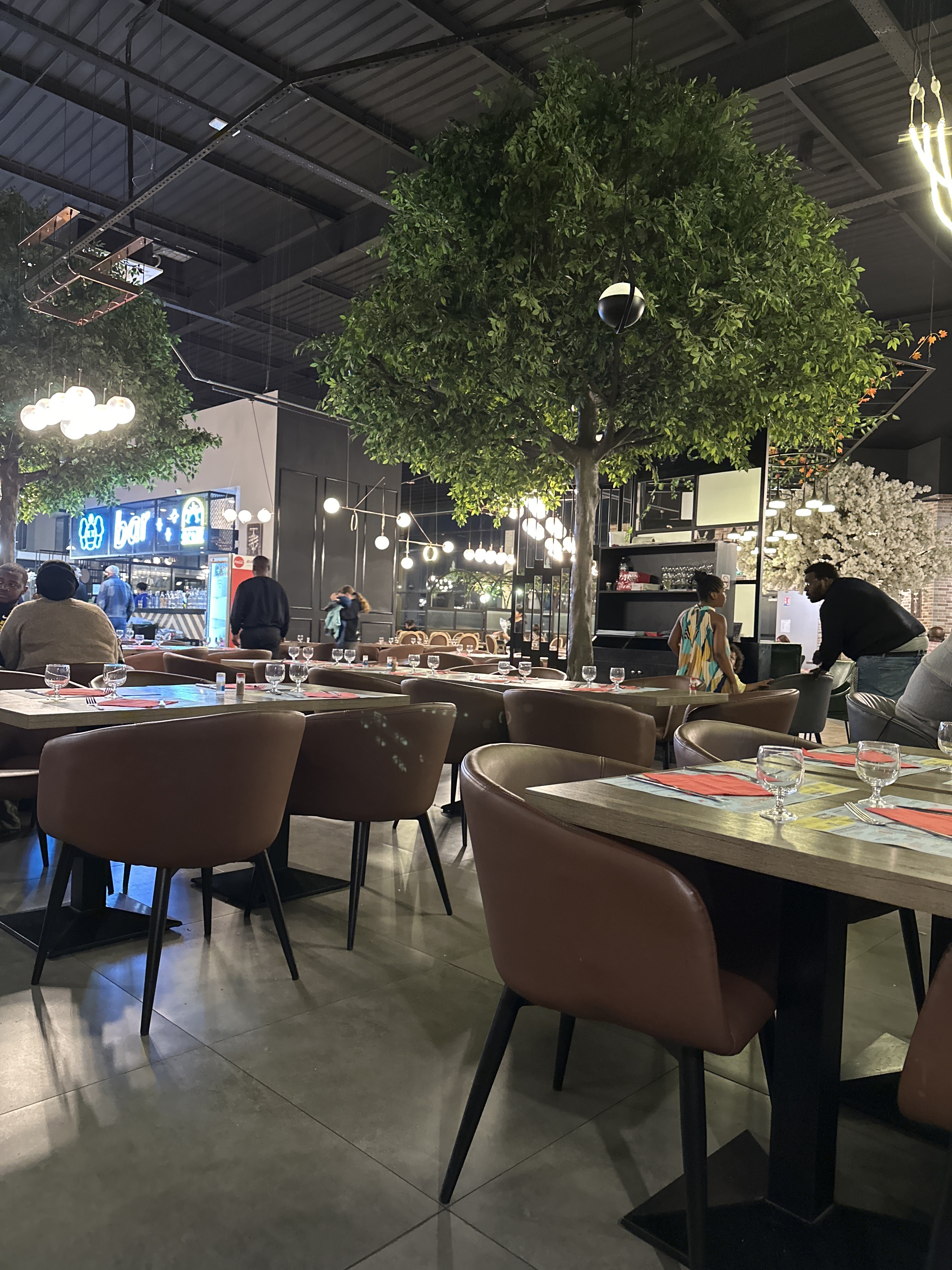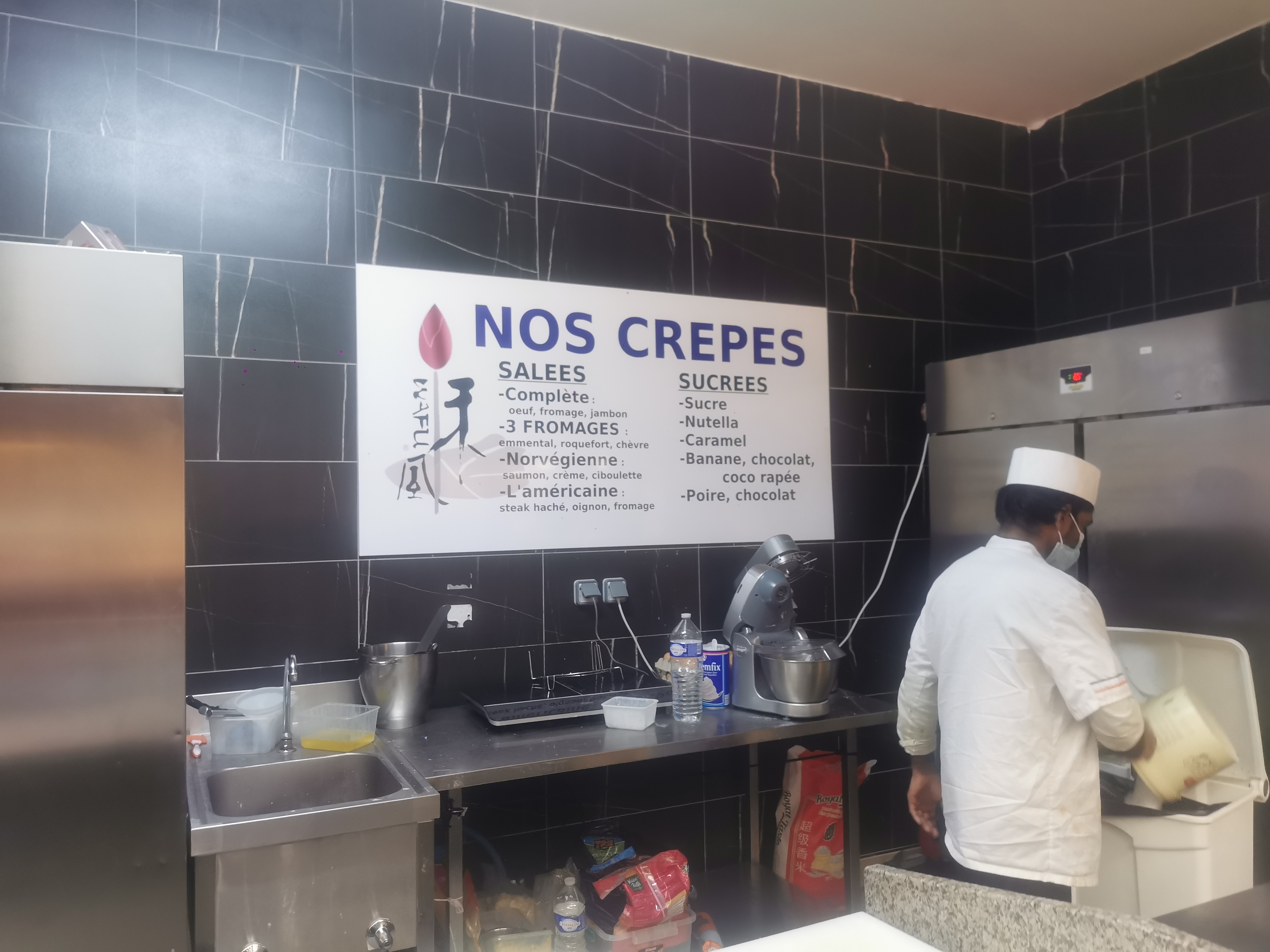 Endroit chaleureux, personnels très sympathiques et même l'agent de sécurité est super sympa. Une large gamme de plats de plusieurs horizons, pour terminer le repas des crêpes possible faite maison. Vraiment très agréablement surprise de ce restaurant avc autant de saveur. En ce qui concerne l'indien je trouve cela manque d'épice, connaissant bien cette nourriture sinon vraiment au top et très grand espace pour venir entre collègues. Ma décoration est top, la propreté idem. Il y a une zone de jeux pour les enfants.