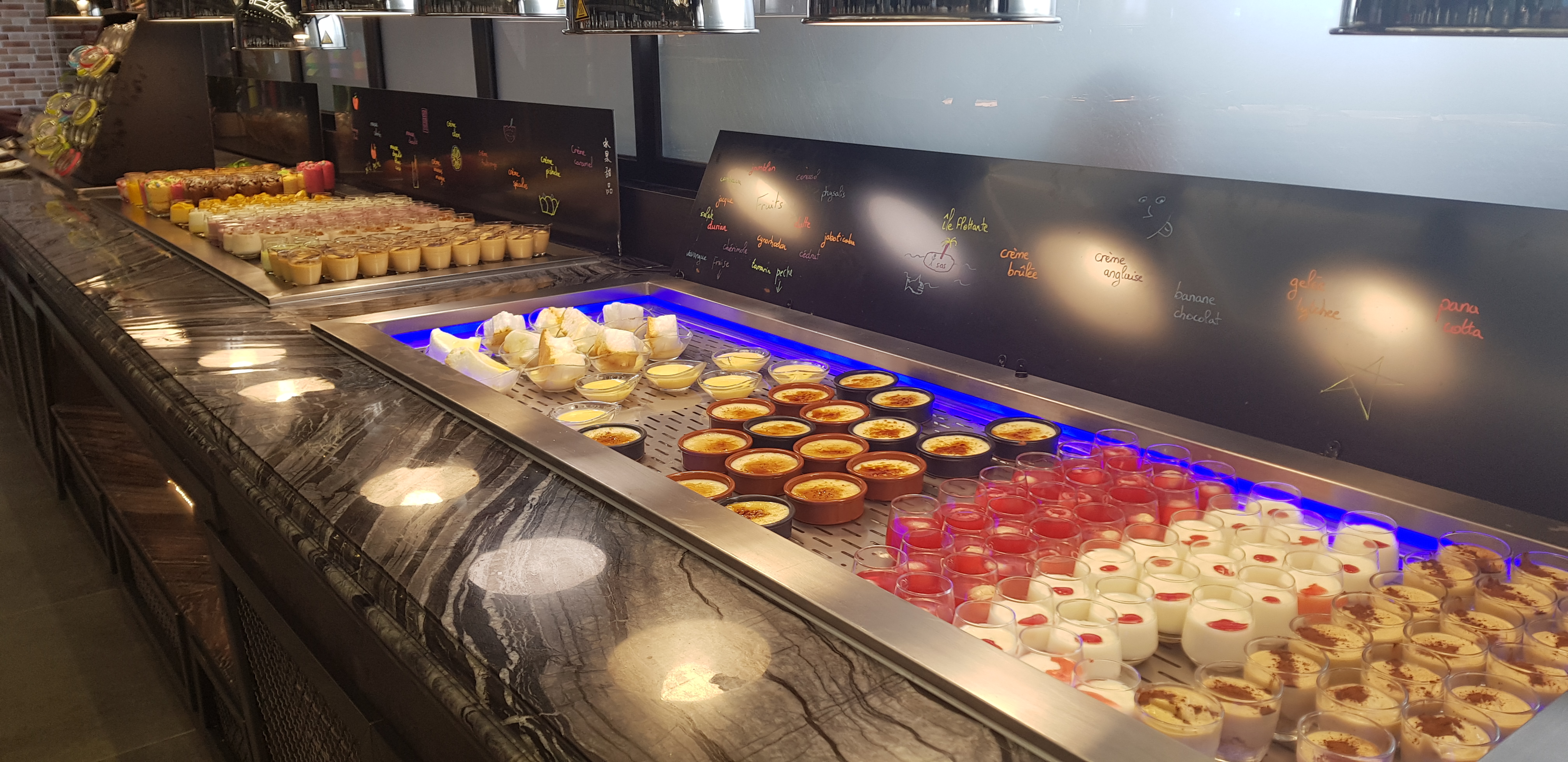 Découverte INCROYABLE. La propreté du restaurent est remarquable (on nous donne des gants en plastique pour nous servir). Décoration recherchée. Une quantité astronomique de plats de tout type (asiatique, italien, indien, bar à burger, bar à crêpes, fruits de mer, oriental, Charcuterie, makis de toutes sortes et bien encore ! ). Avec tout cela, on se dit que ça risque de ne pas être de bonne qualité, et pourtant !! Tout etait tellement bon, beaucoup moins gras qu'ailleurs et produits frais. A recommander vivement aux amateurs de buffets à volonté.